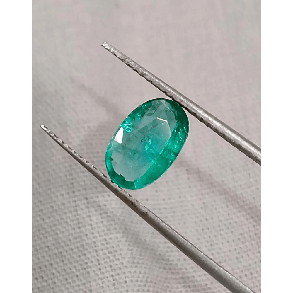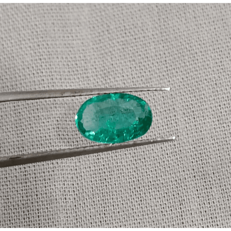 Emerald clarity, like its color, is evaluated face up without magnification. The key is to see the clarity as a whole rather than concentrating on an individual inclusion. The most common inclusions are fissures or tiny fractures that look like wavy or random whitish lines inside the emerald.