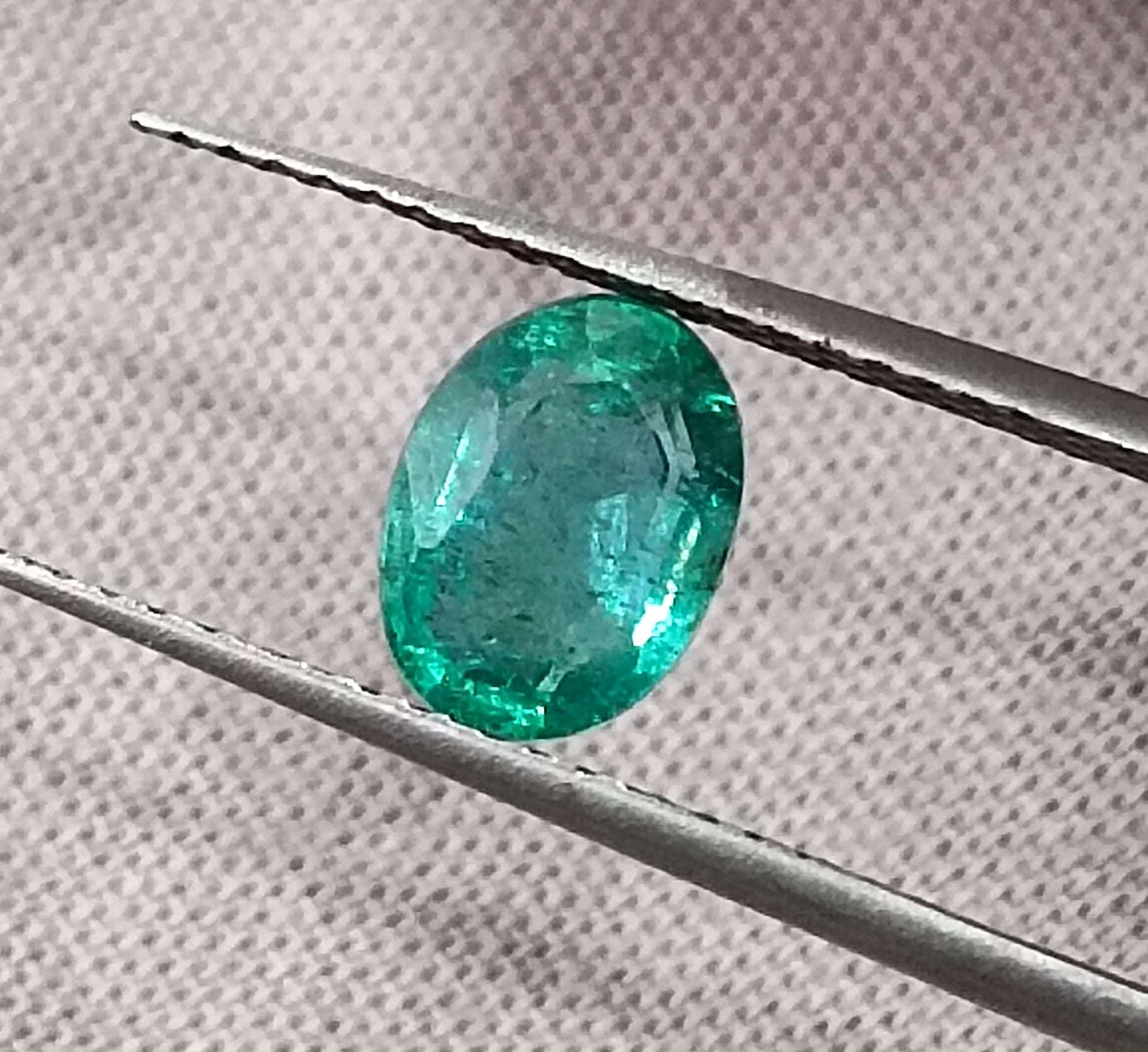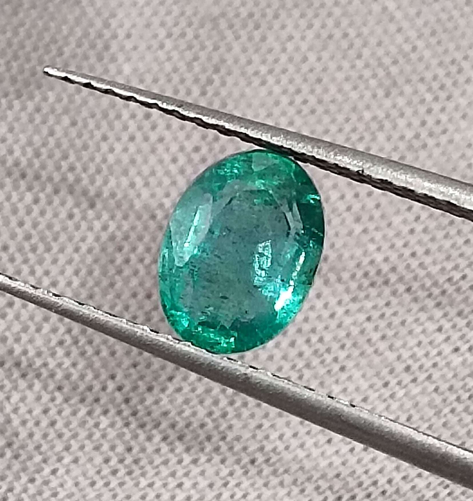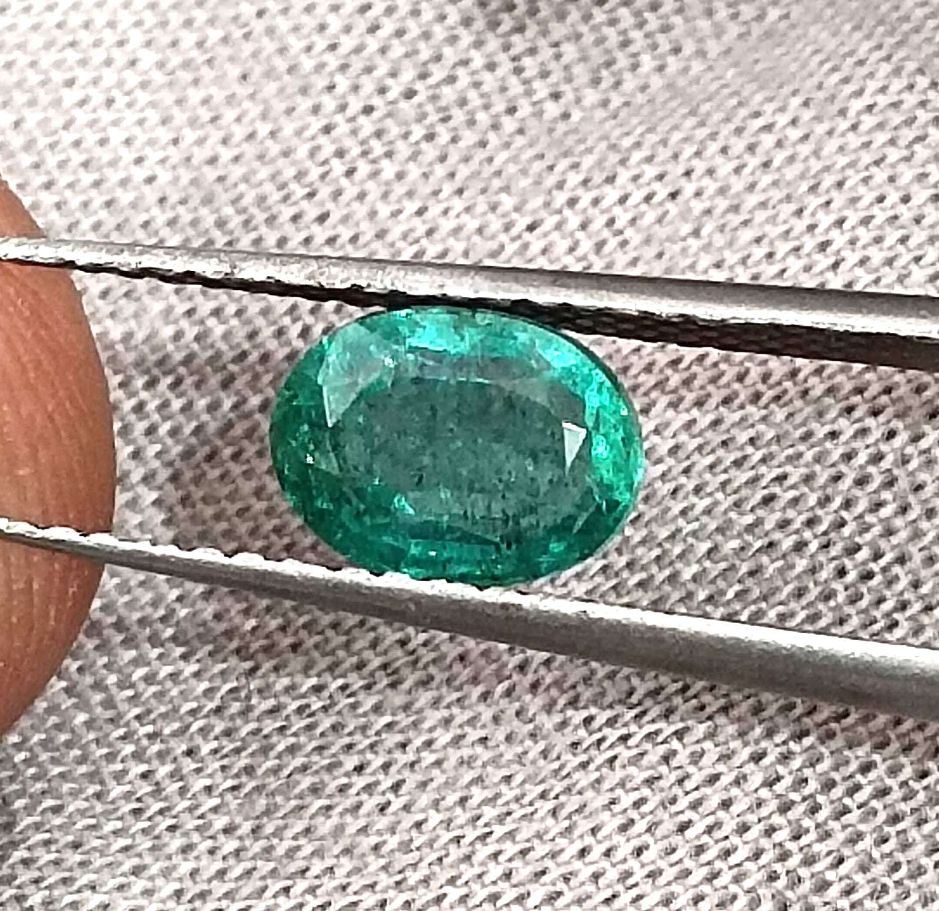 1.26ct Intense green Zambian emerald oval cut minor oiled loose gemstone.