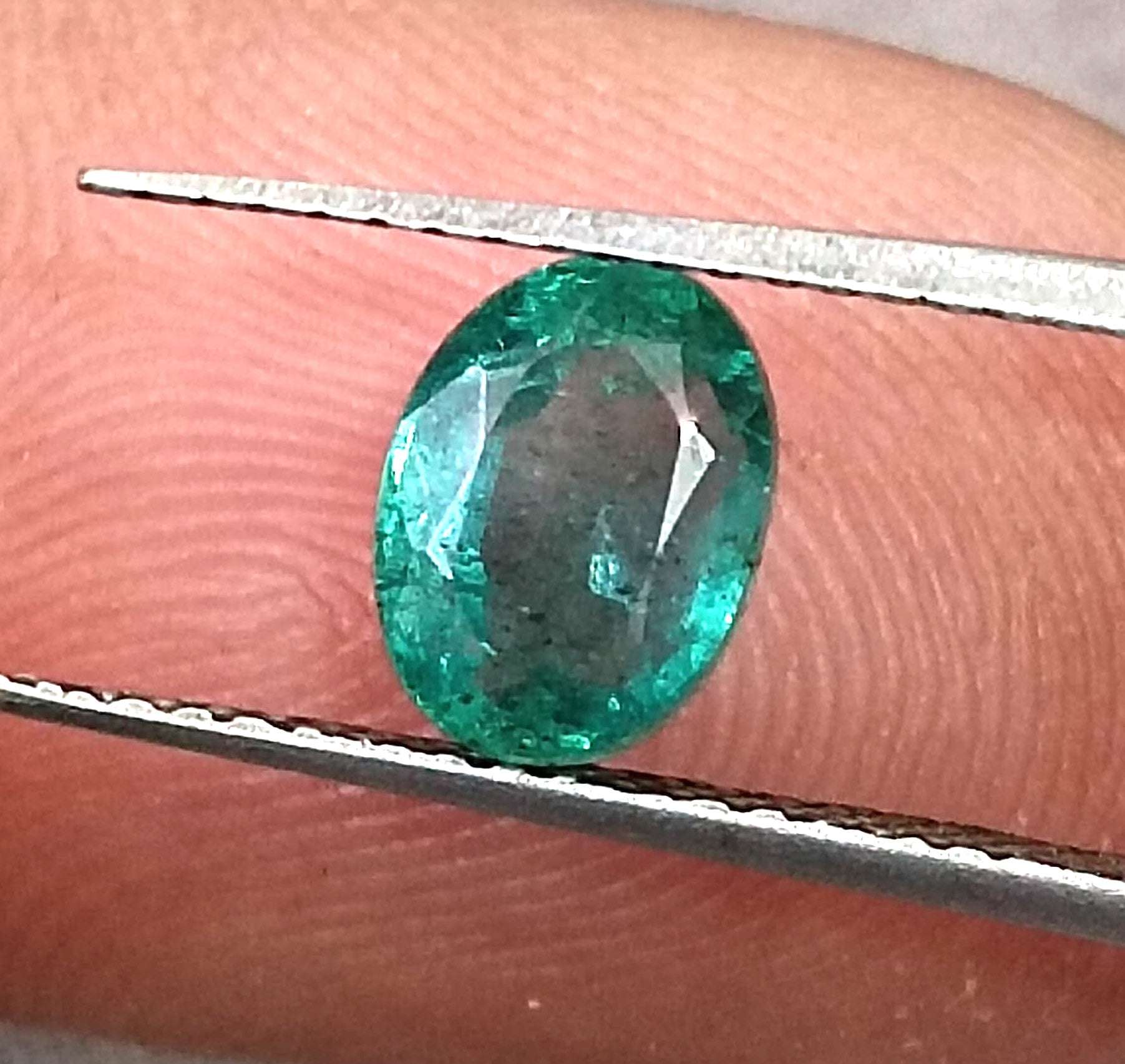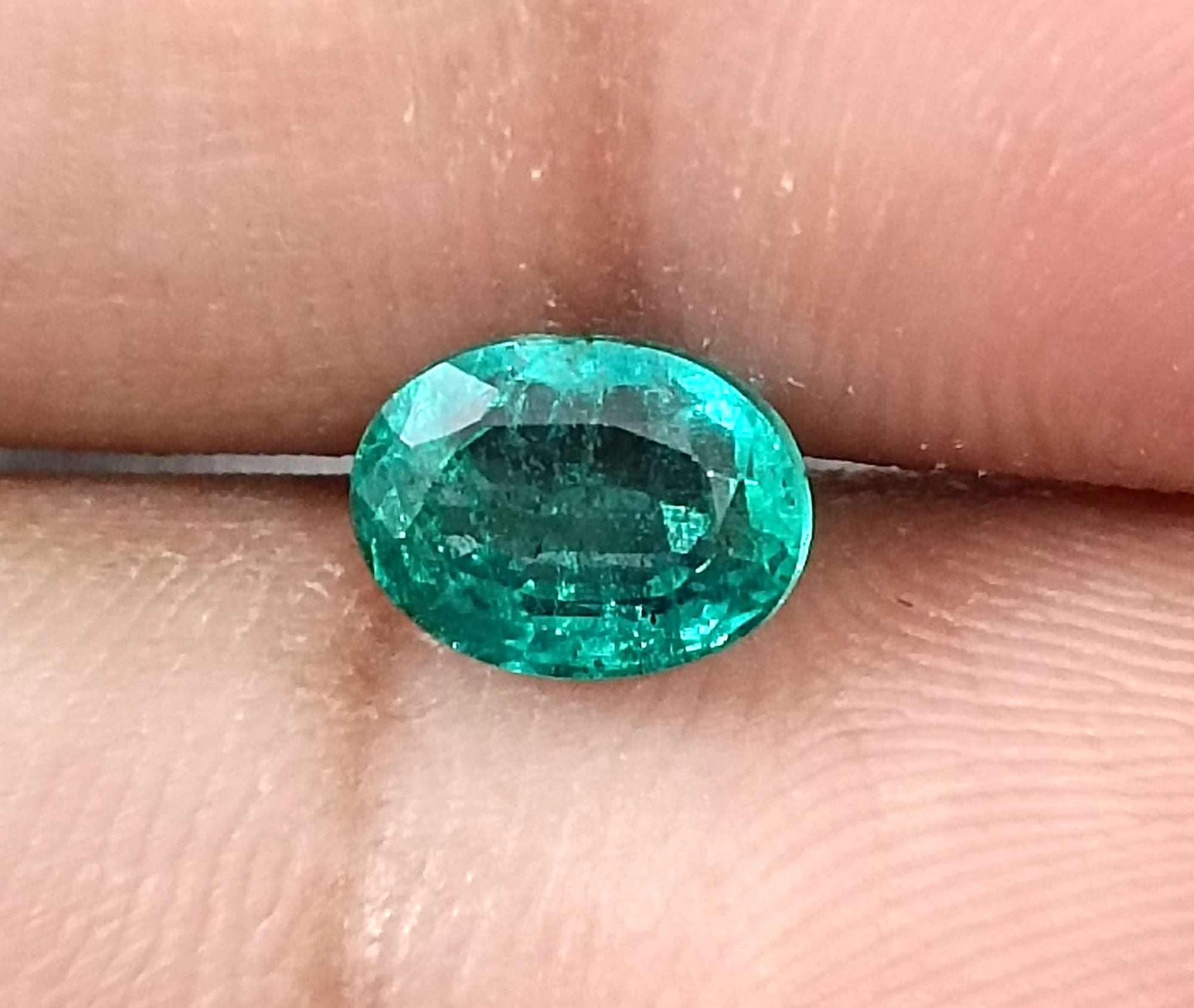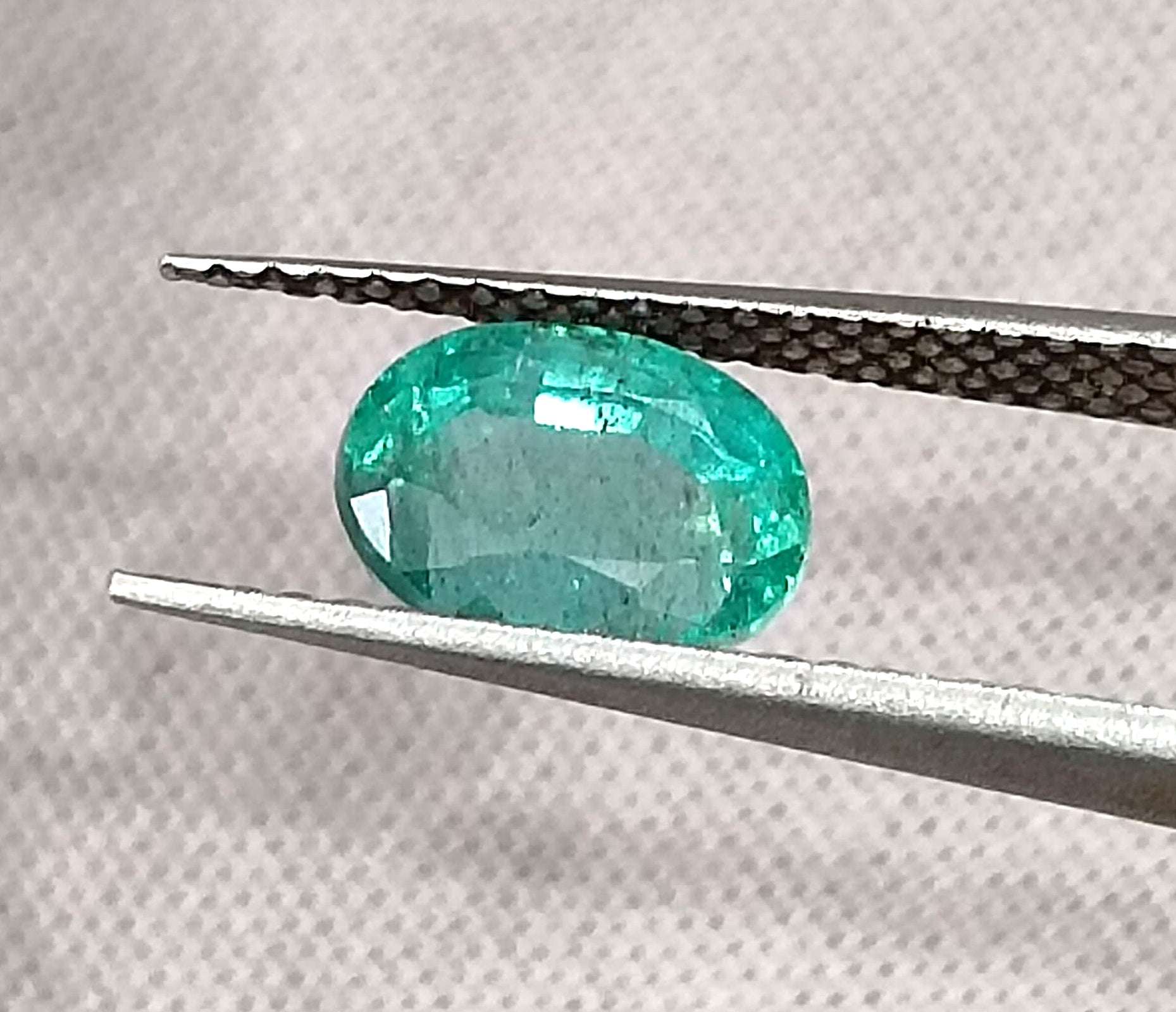 1.26ct Intense green Zambian emerald oval cut minor oiled loose gemstone.