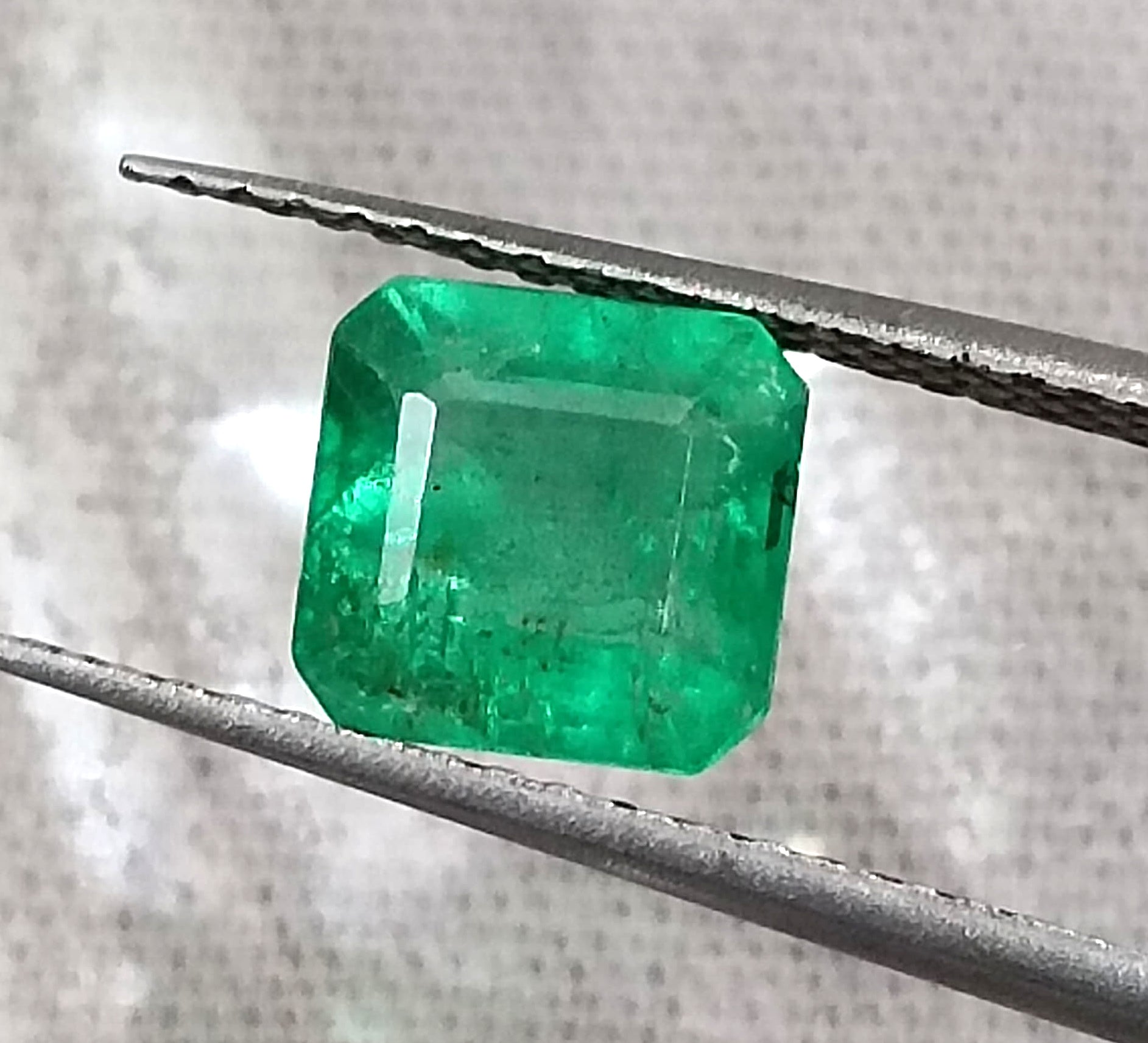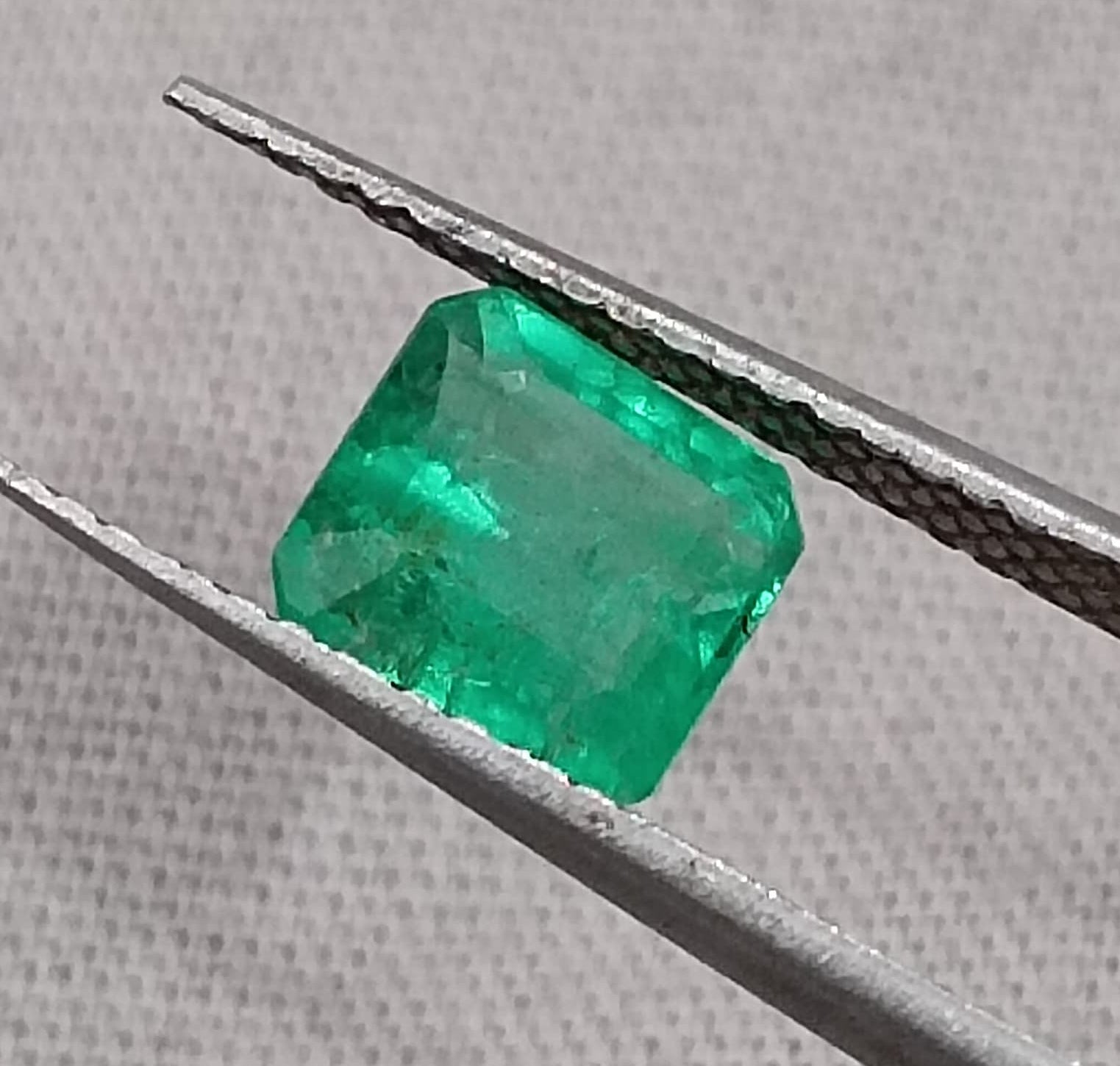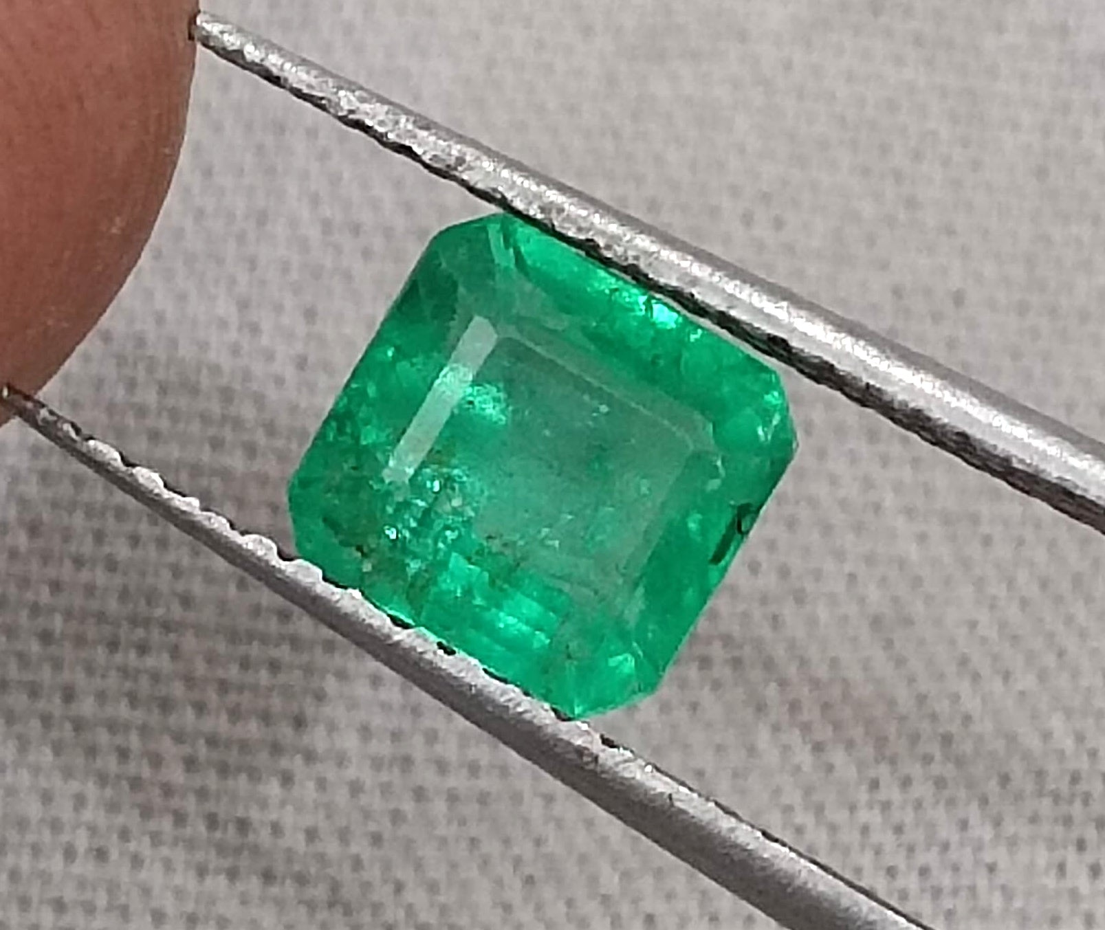 1.34 carats vivid green Colombian emerald. Minor oiled loose gemstone. Color: Vivid green Cut - Emerald cut Lustre -...
