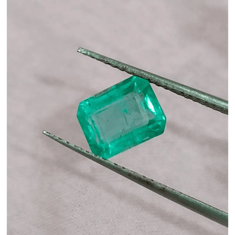 Emerald clarity, like its color, is evaluated face up without magnification. The key is to see the clarity as a whole rather than concentrating on an individual inclusion. The most common inclusions are fissures or tiny fractures that look like wavy or random whitish lines inside the emerald.