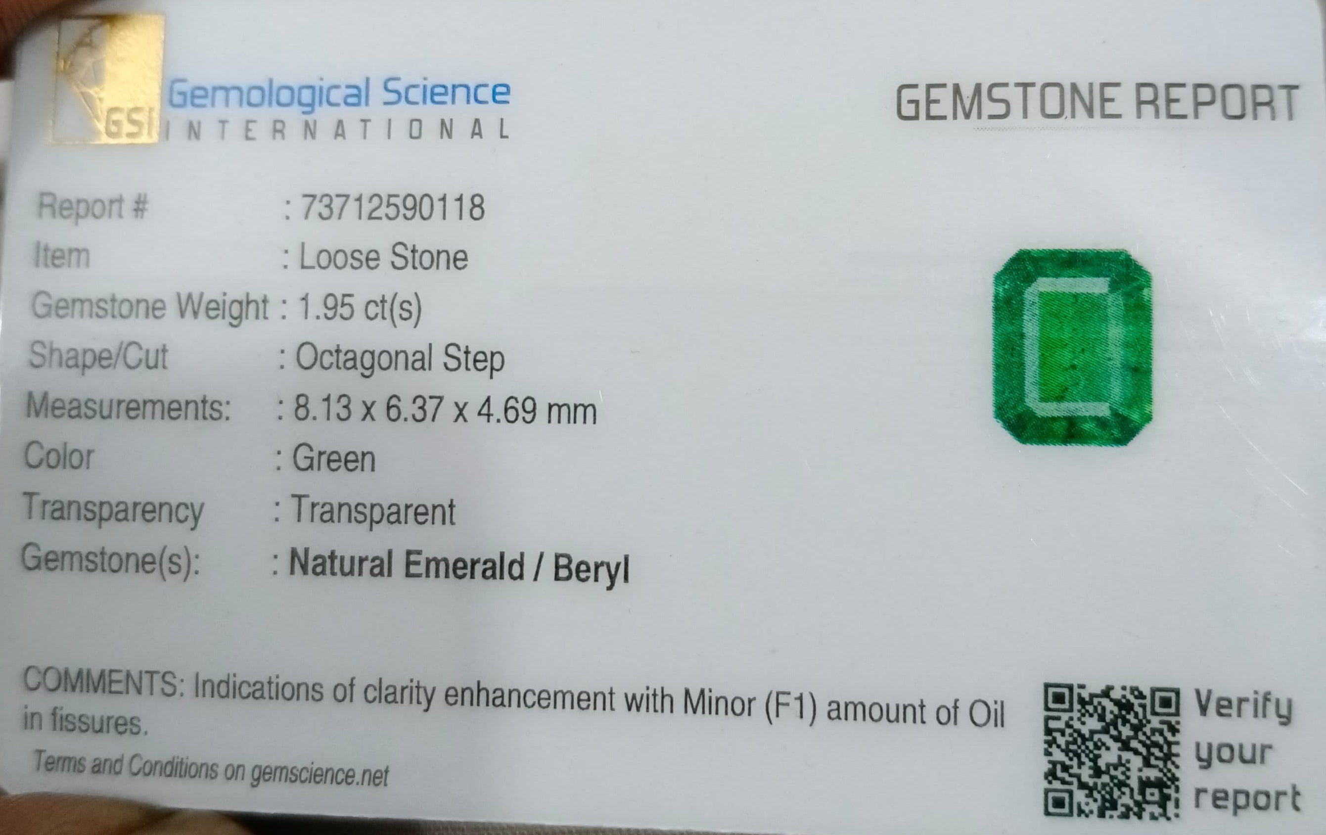 1.95 carats GSI certified medium bright glass green Zambian emerald. Color: Medium bright glass green Cut - Emerald cut...