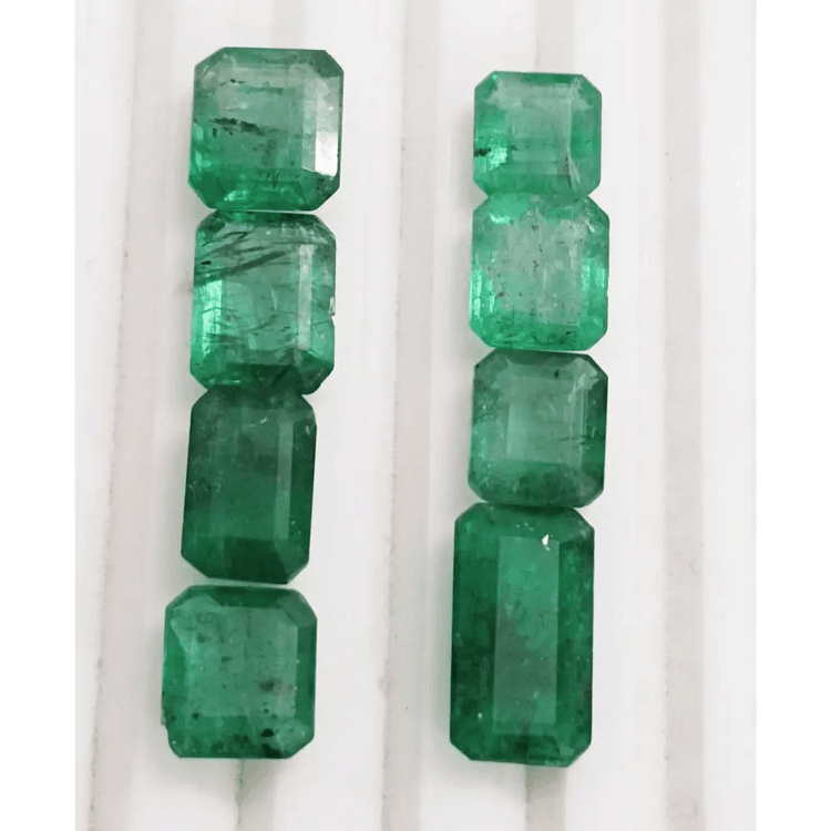100% earth mined Natural Emeralds. Color: medium to Deep Green Cut - Emerald cut Lustre - Excellent to very good...