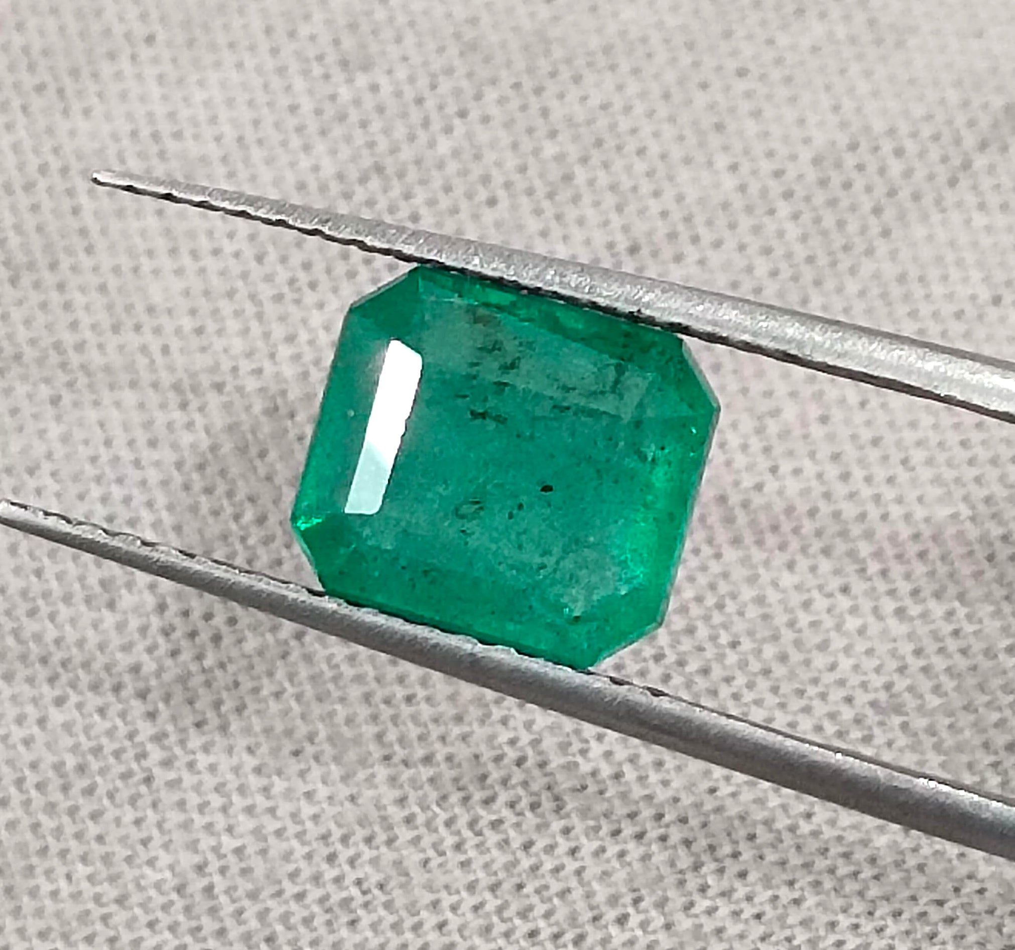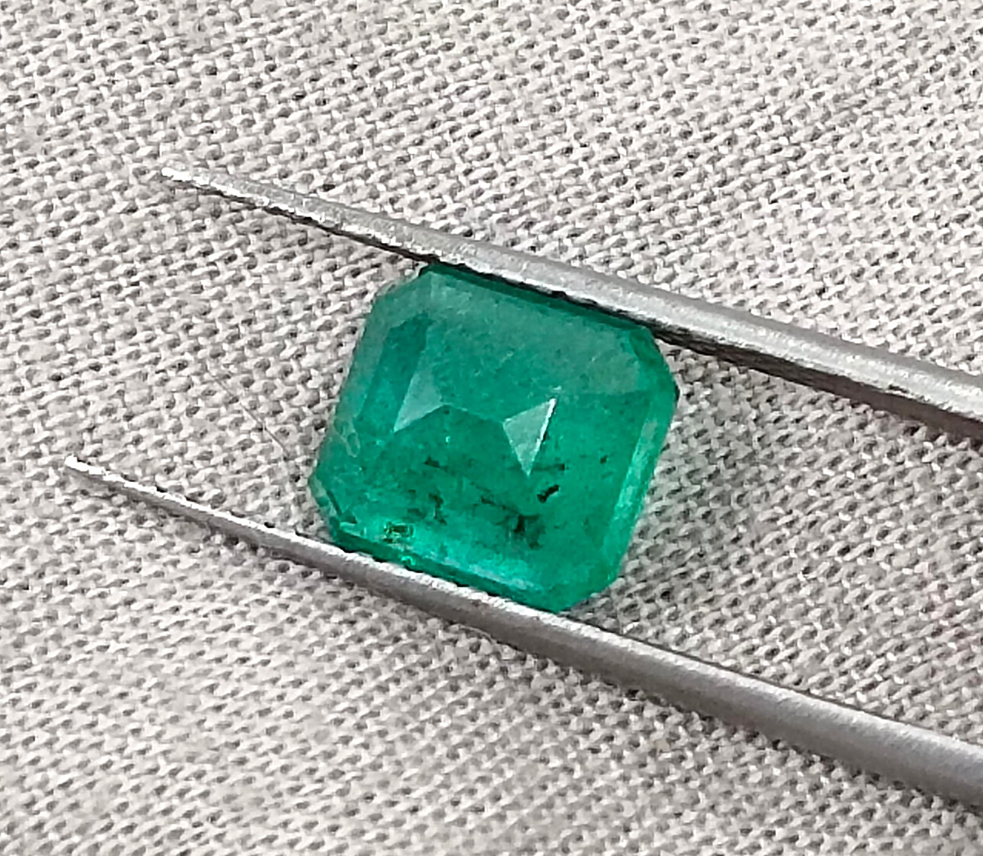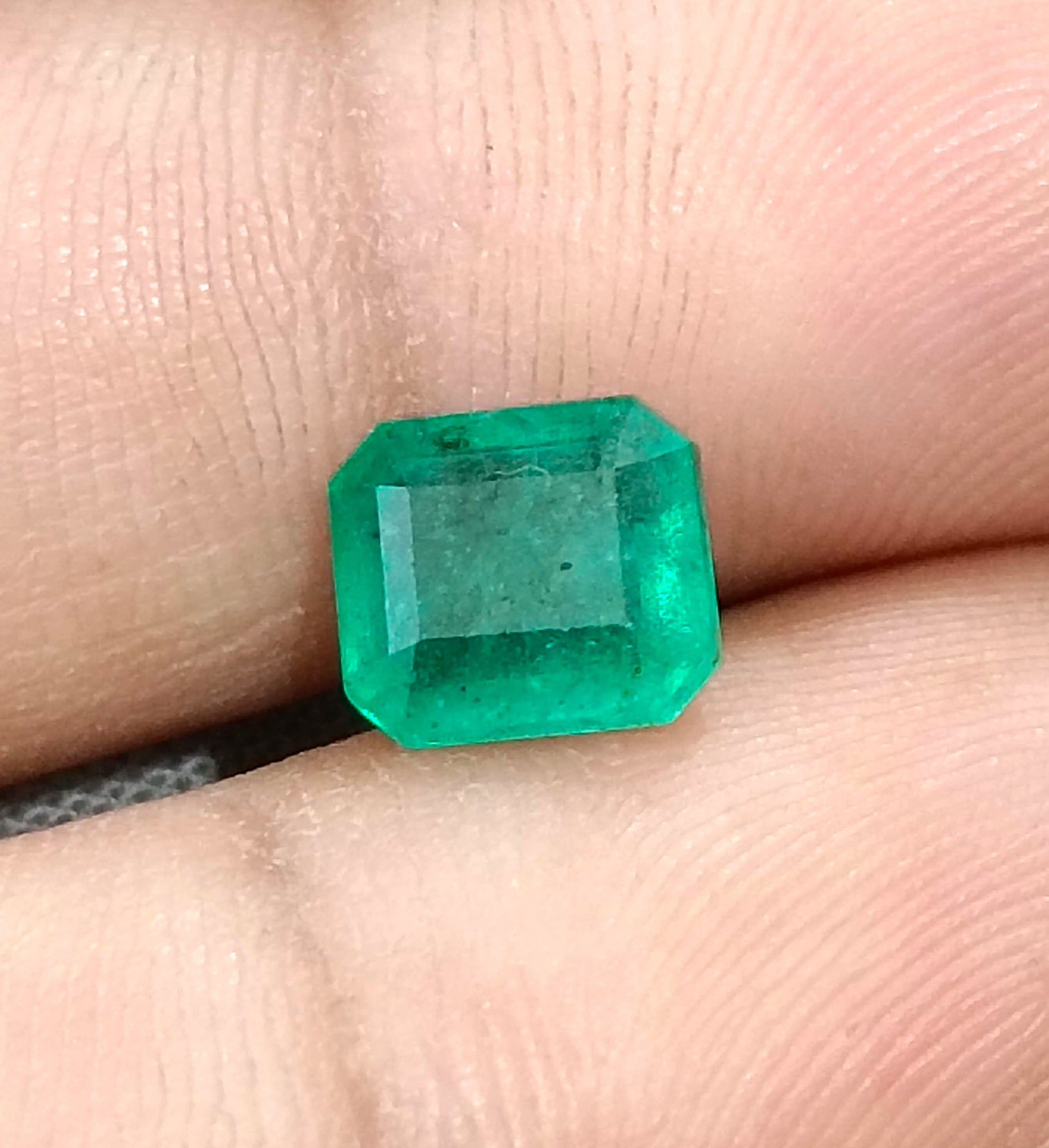 2.11 carats medium light slightly bluish green Zambian emerald. Color: medium light slightly bluish green Cut - Emerald cut...