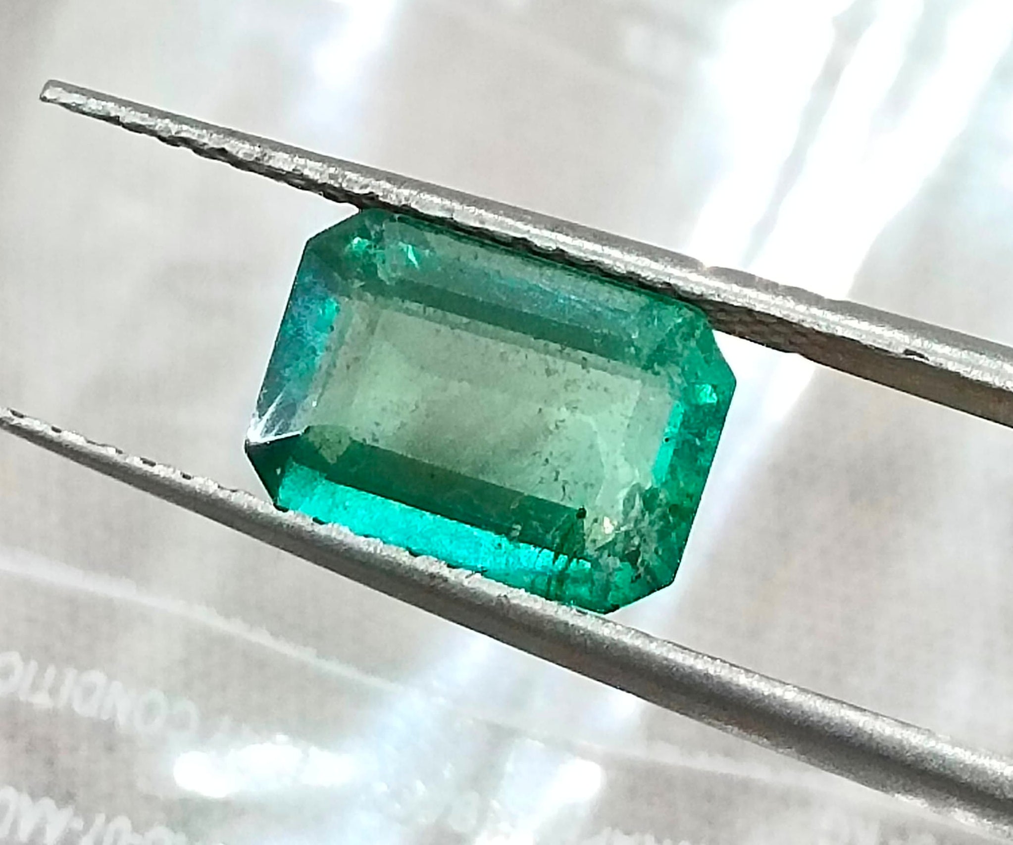 2.32ct Medium light metallic green Natural Zambian emerald. Color: Medium light metallic Green Cut - Emerald cut Lustre -...