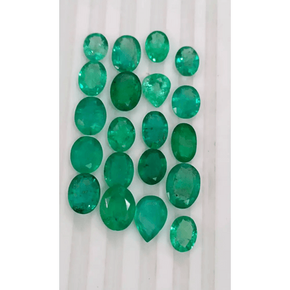 21.66ct guaranteed natural Emerald parcel. Earth mined loose gemstones.Color: Medium light to mediumCut - oval and 2 pear cut Lustre...