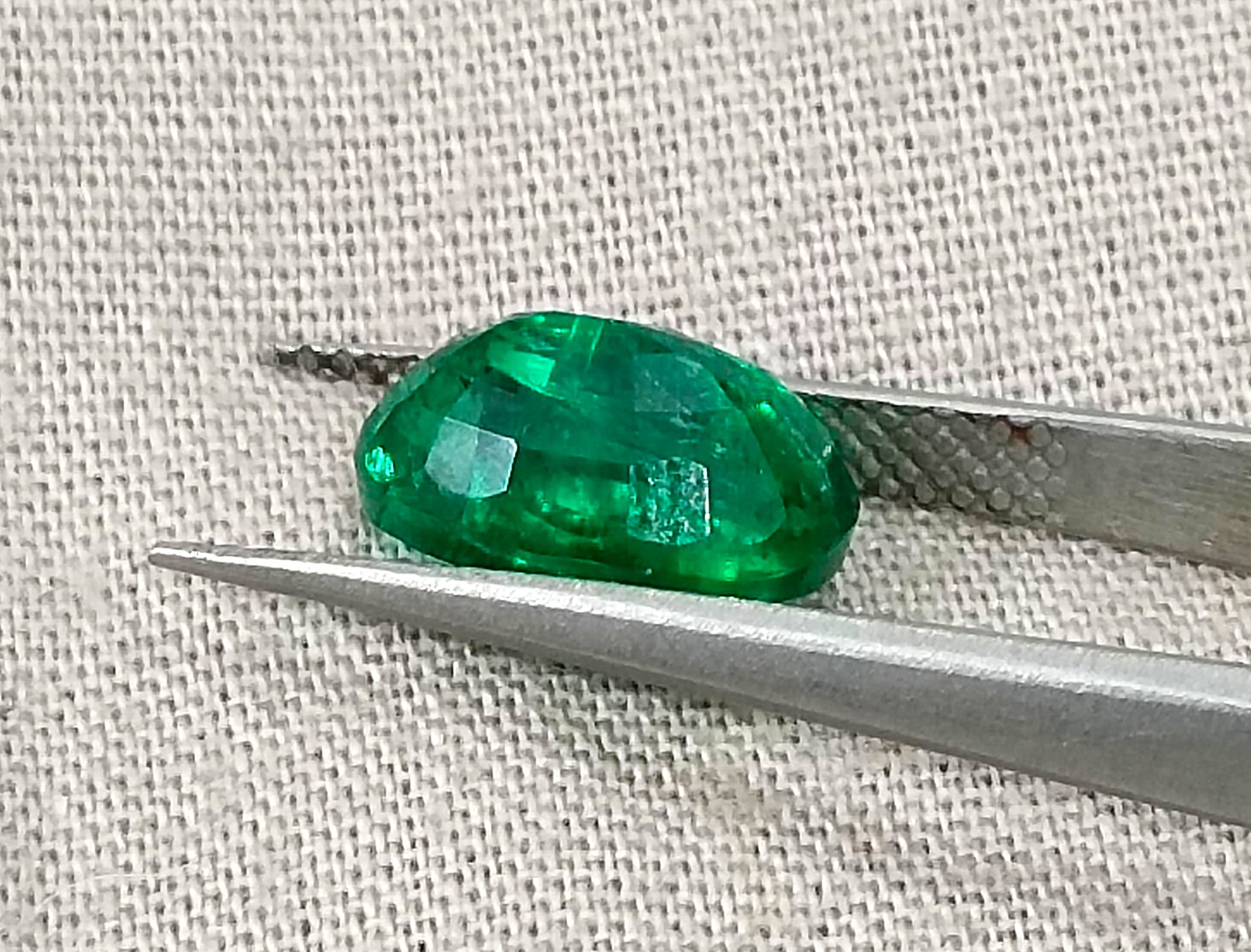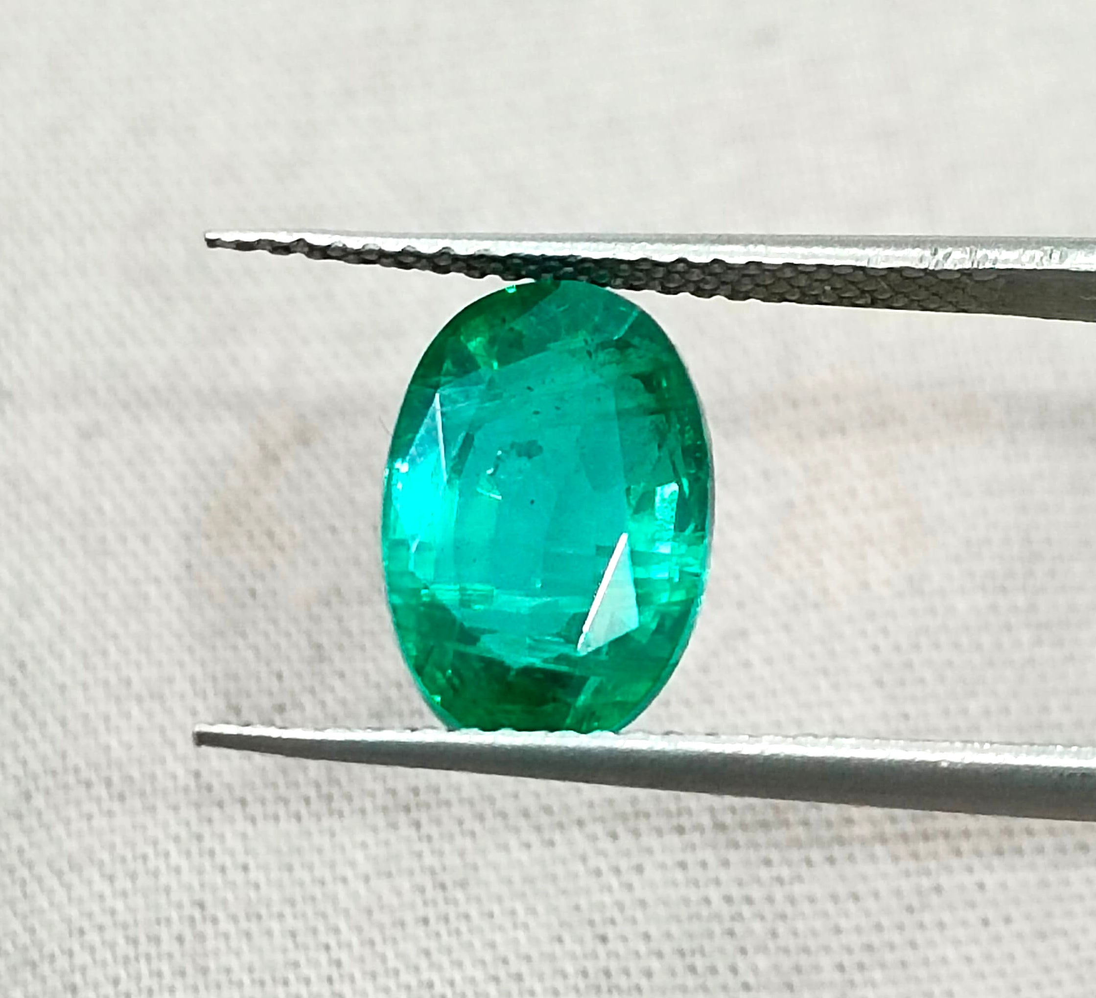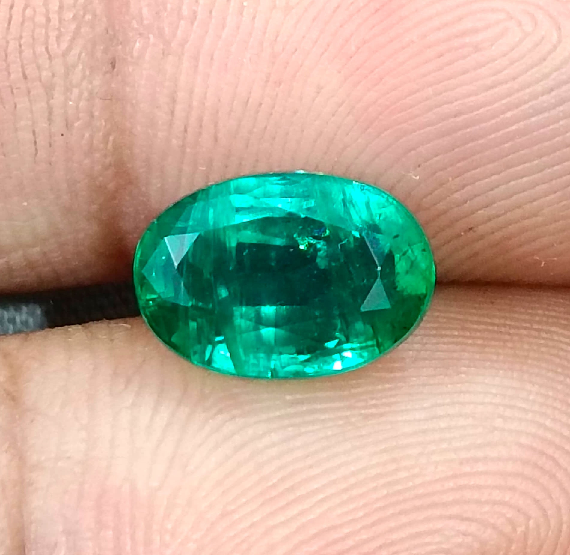 3.02 carats GSI certified vivid green Zambian emerald. Minor oiled loose gemstone. Color: Deep Vivid green Cut - Oval cut...