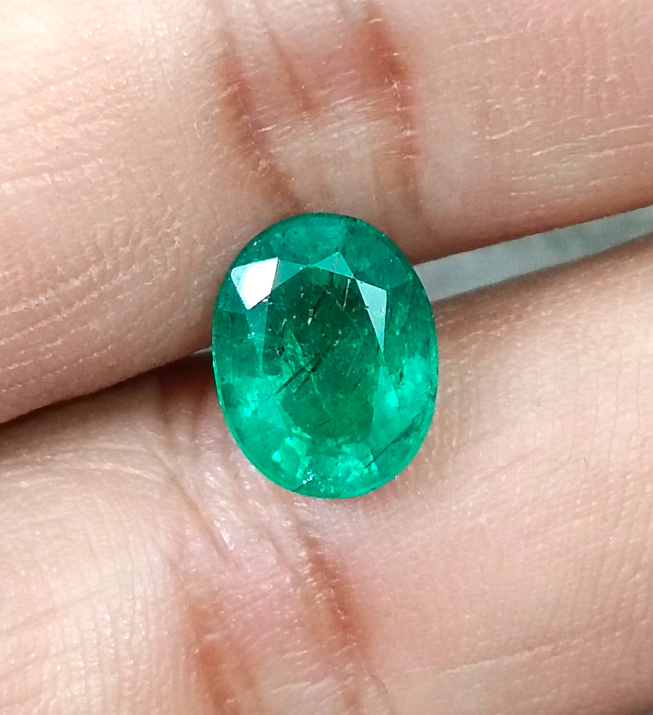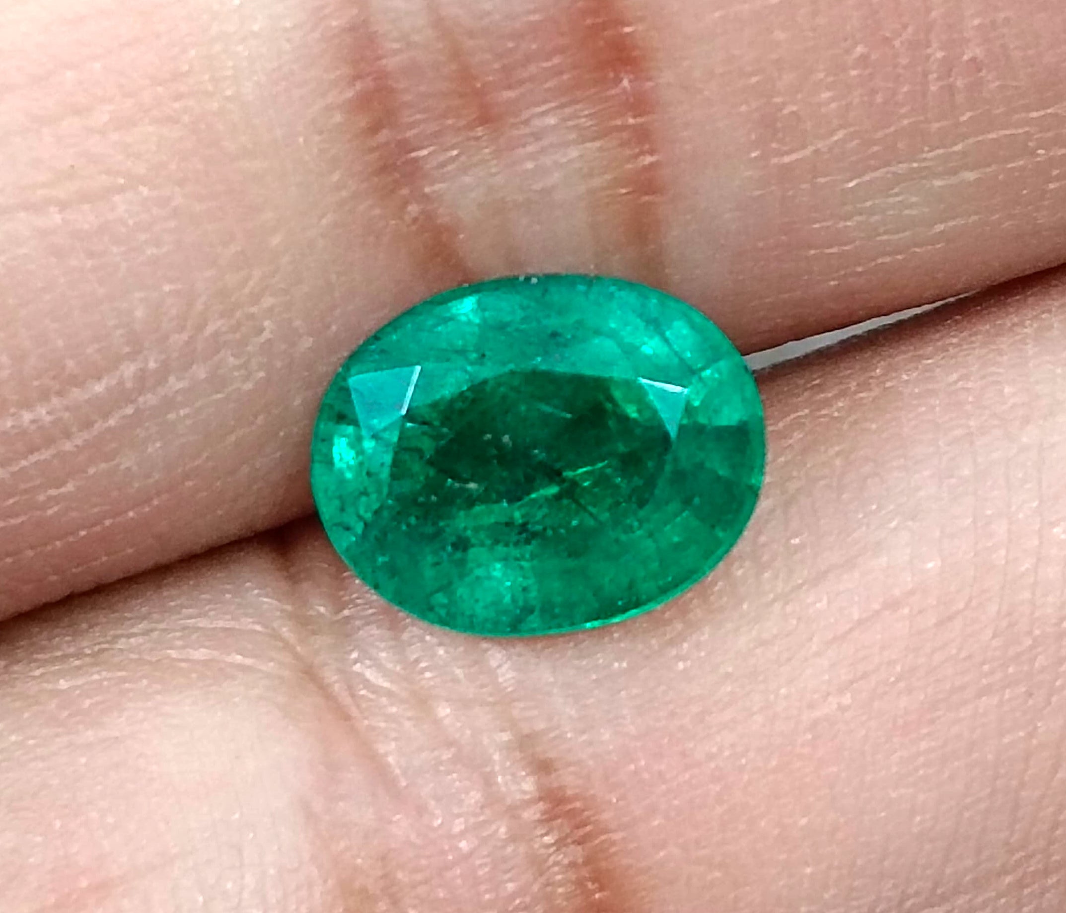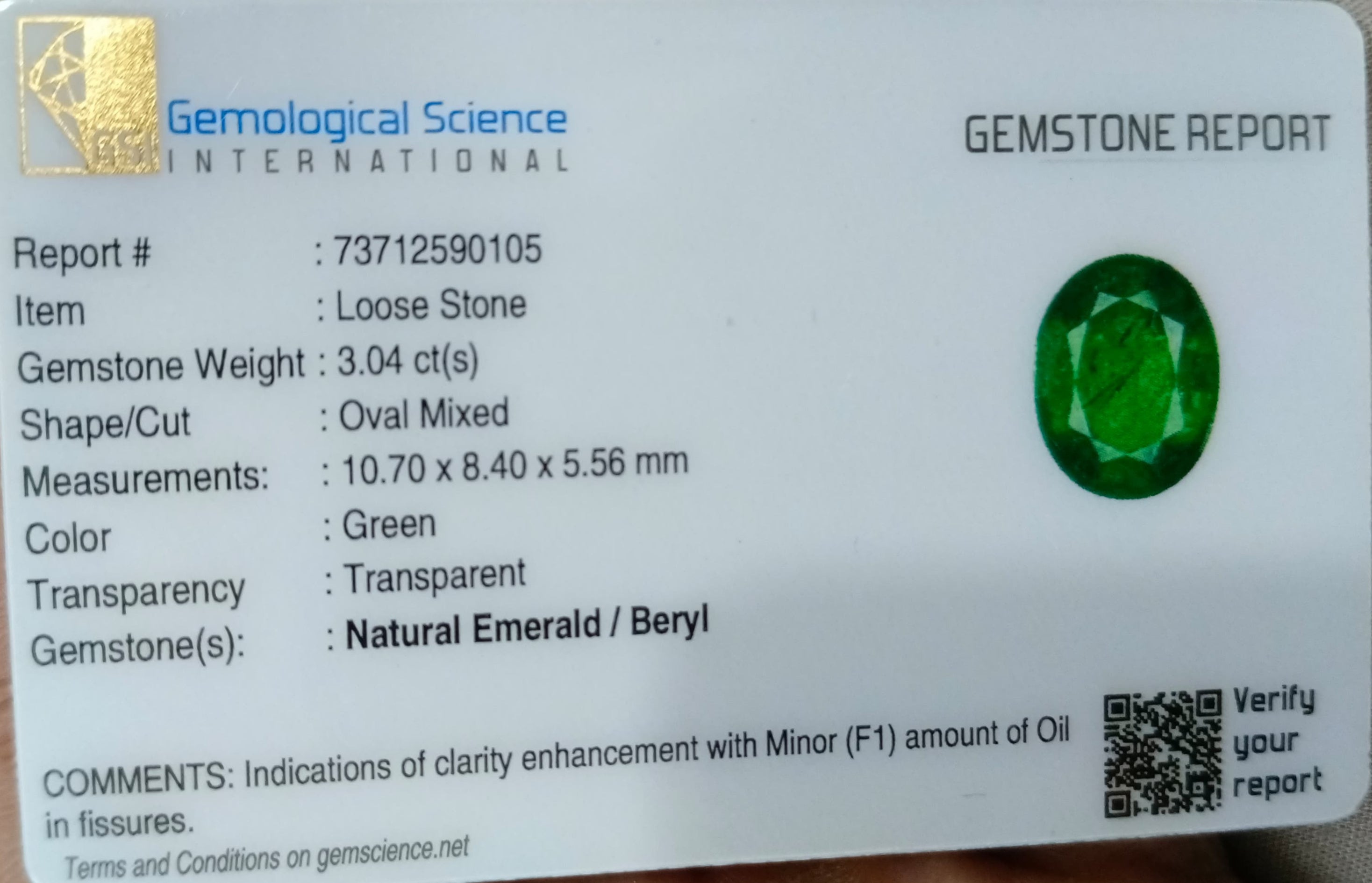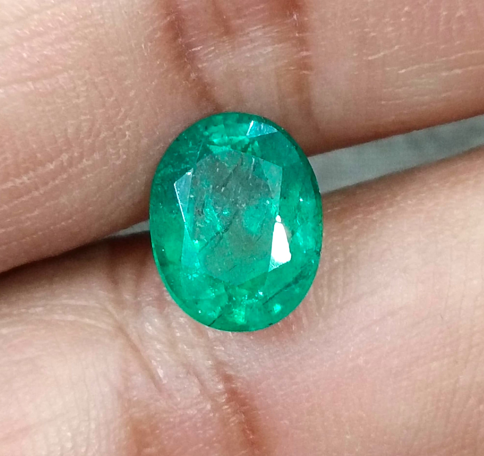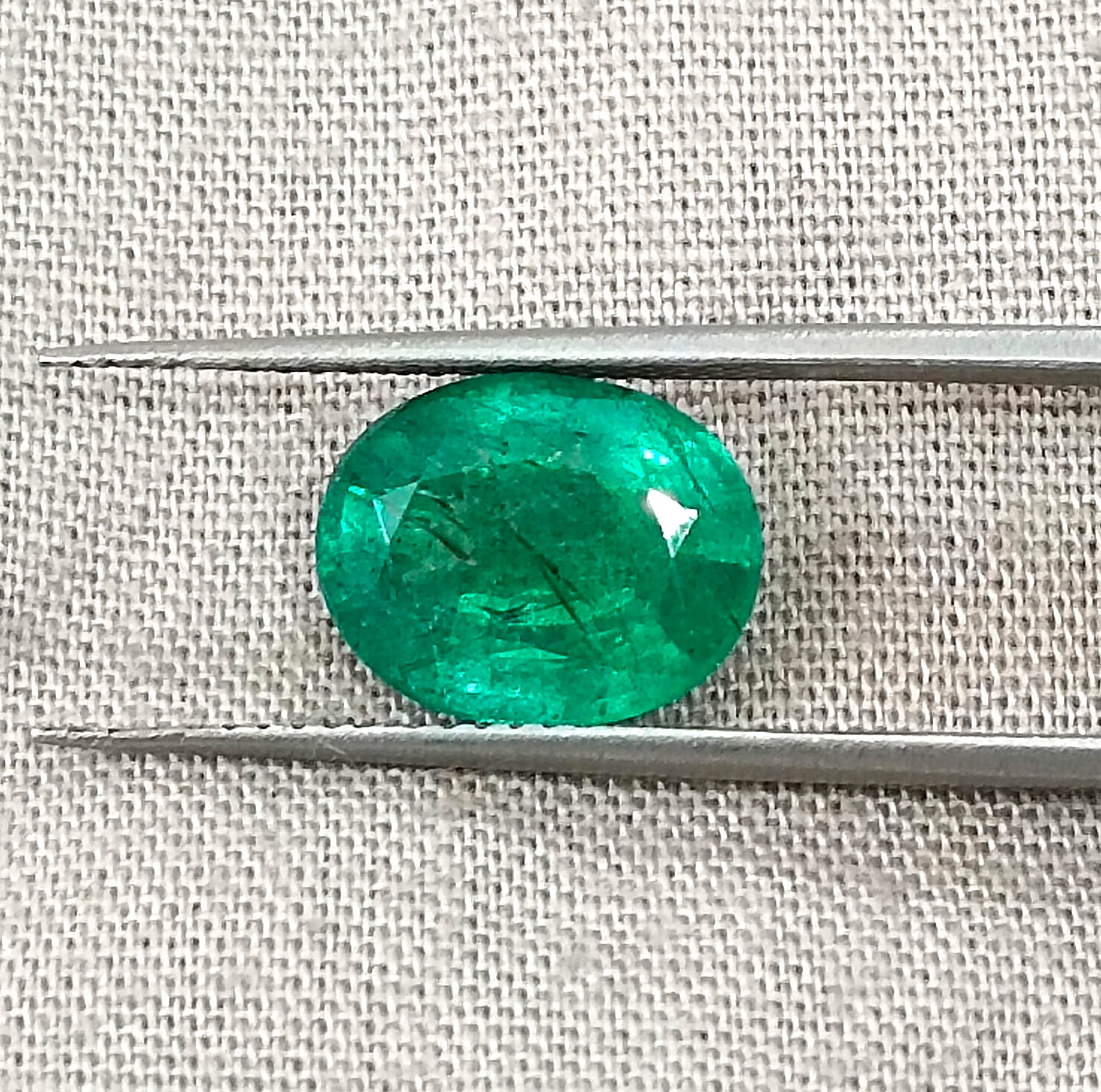 3.04 carats GSI certified forest green Zambian emerald. Minor oiled loose gemstone. Color: Forest green Cut - Oval cut Lustre...