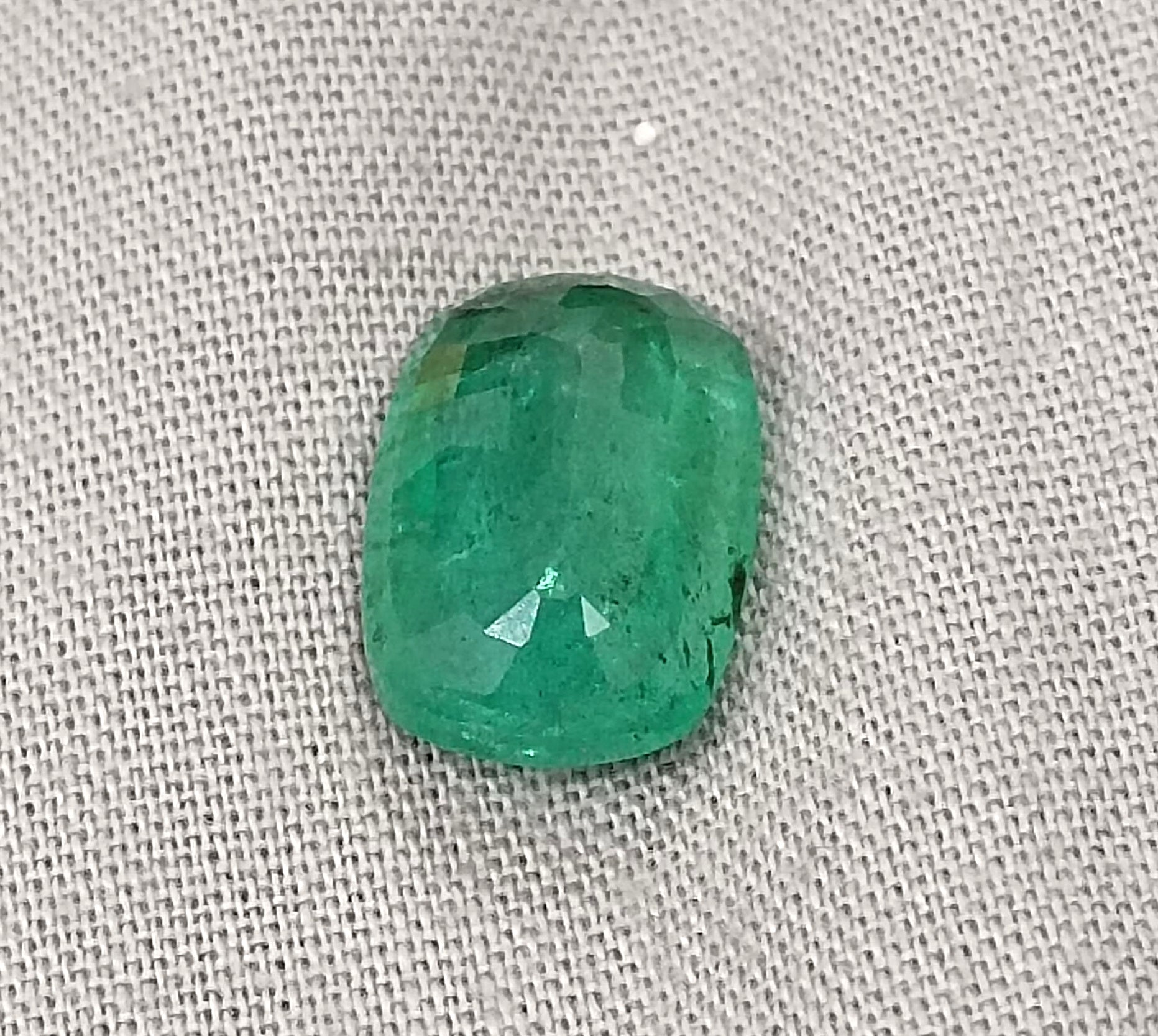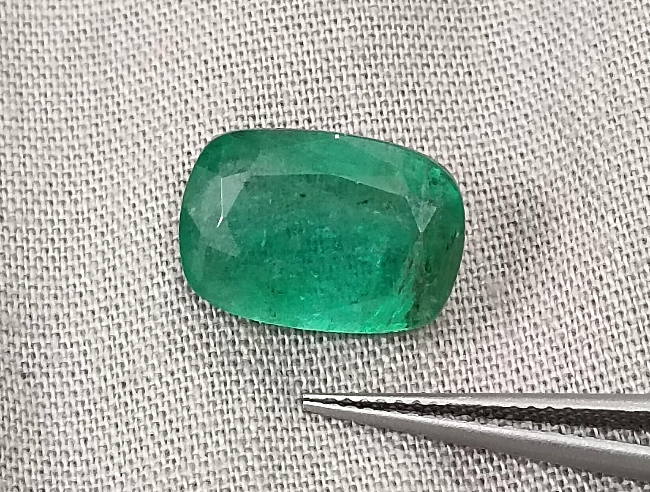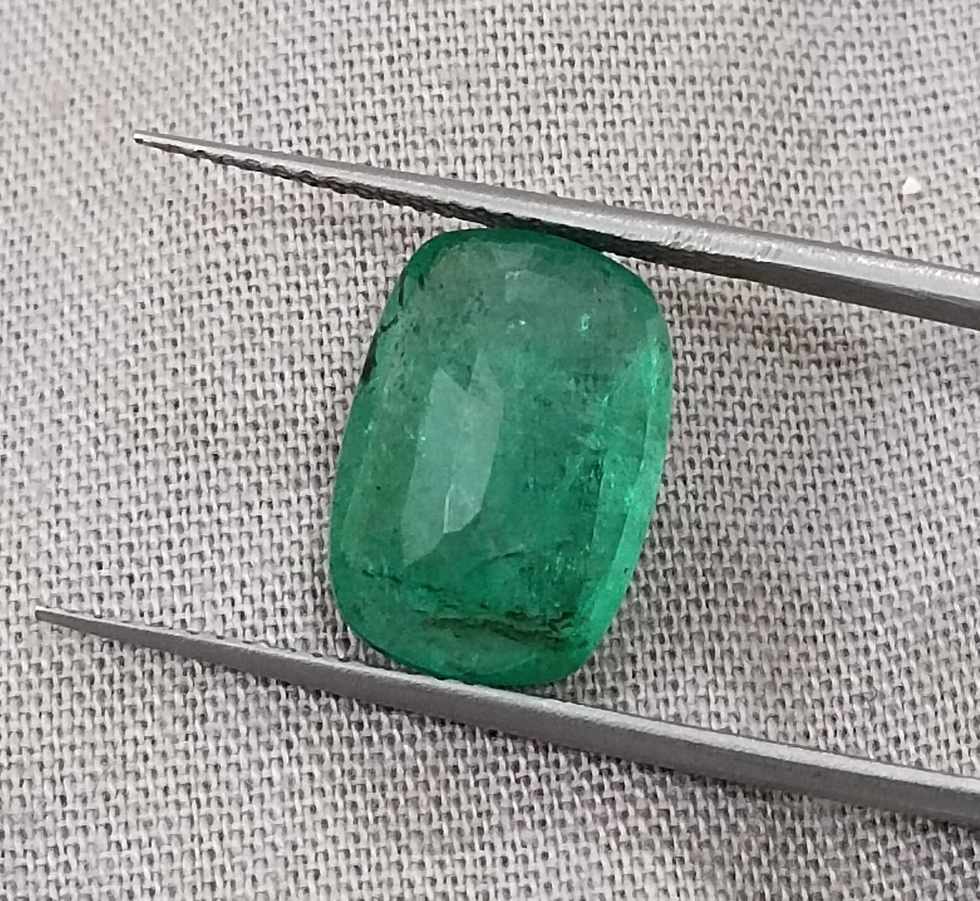 4.87ct Natural Zambian Emerald, Cushion Cut Minor Oiled Natural Gemstone.