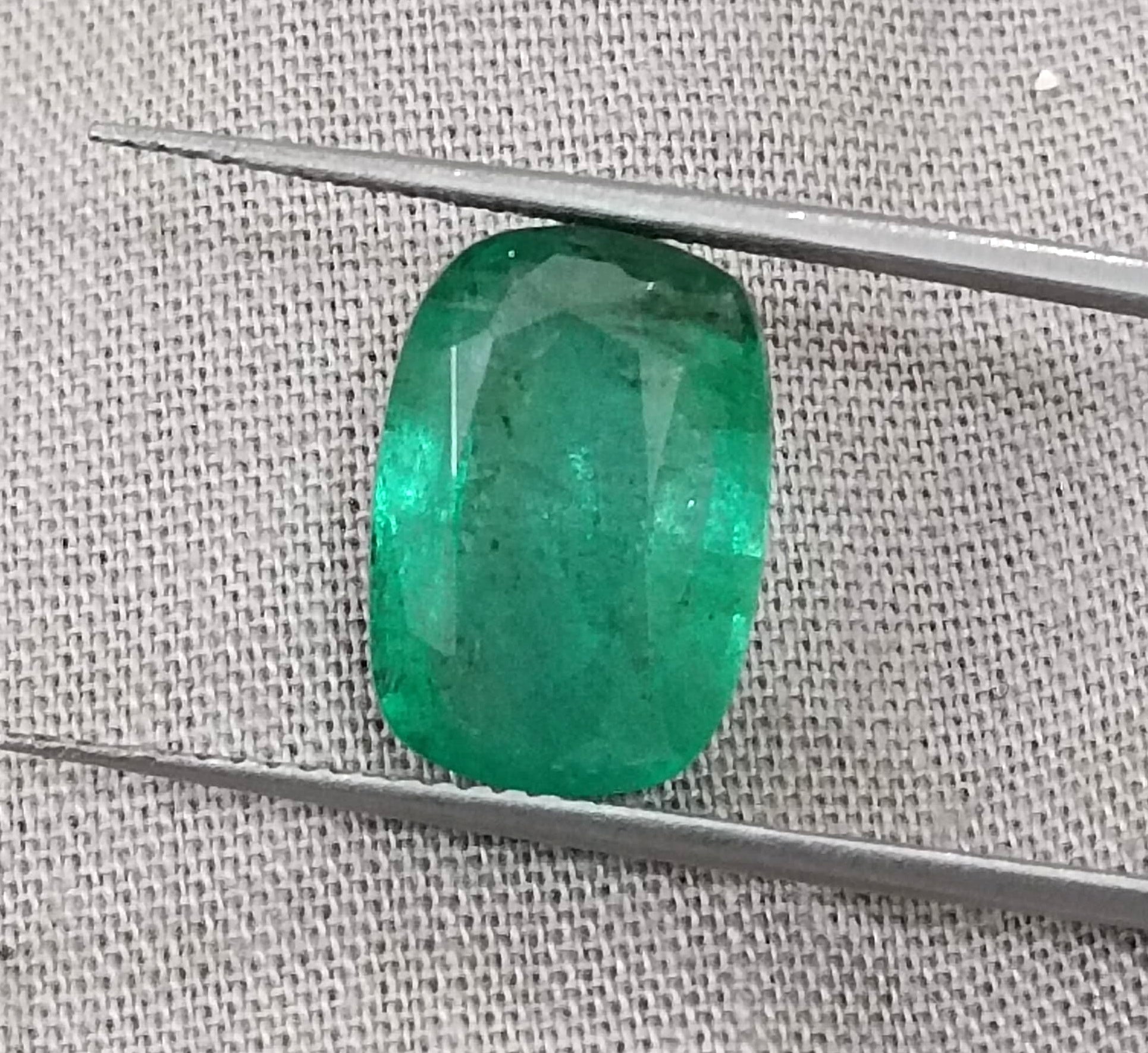 4.87 carats Medium deep green Zambian emerald. Minor oiled natural loose gemstone. Color: Medium green Cut - Cushion cut Lustre...