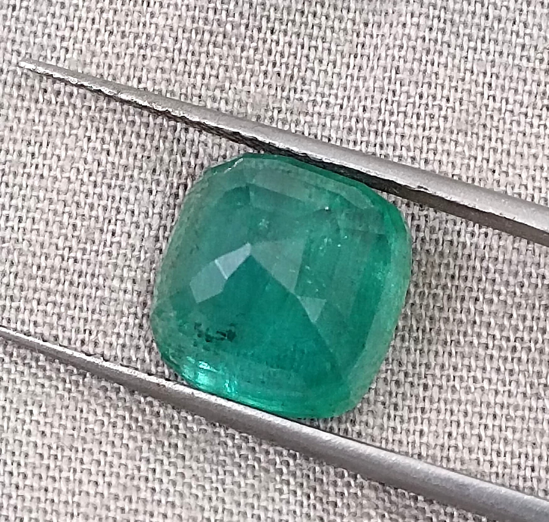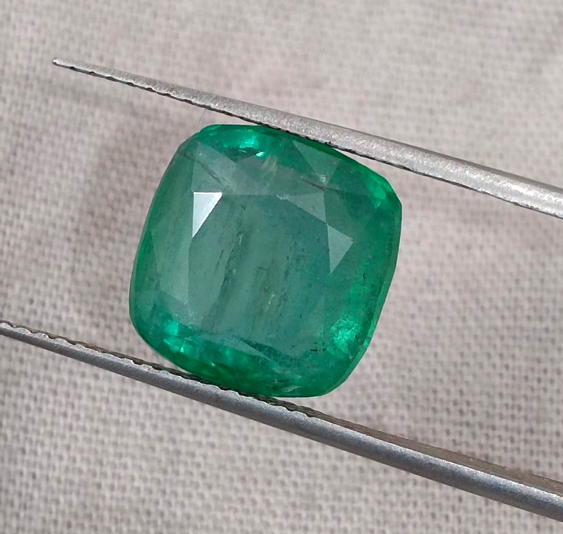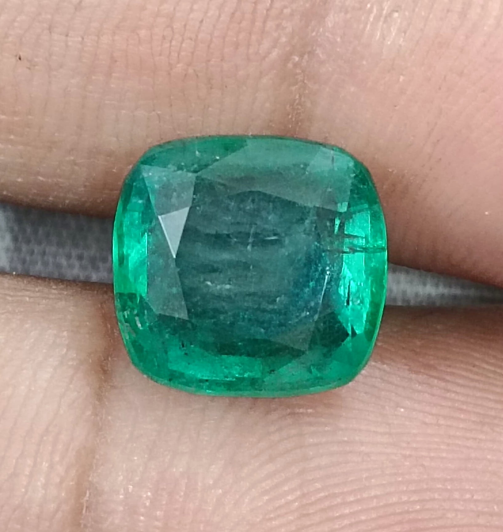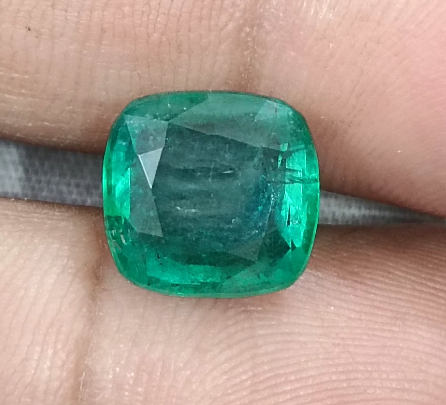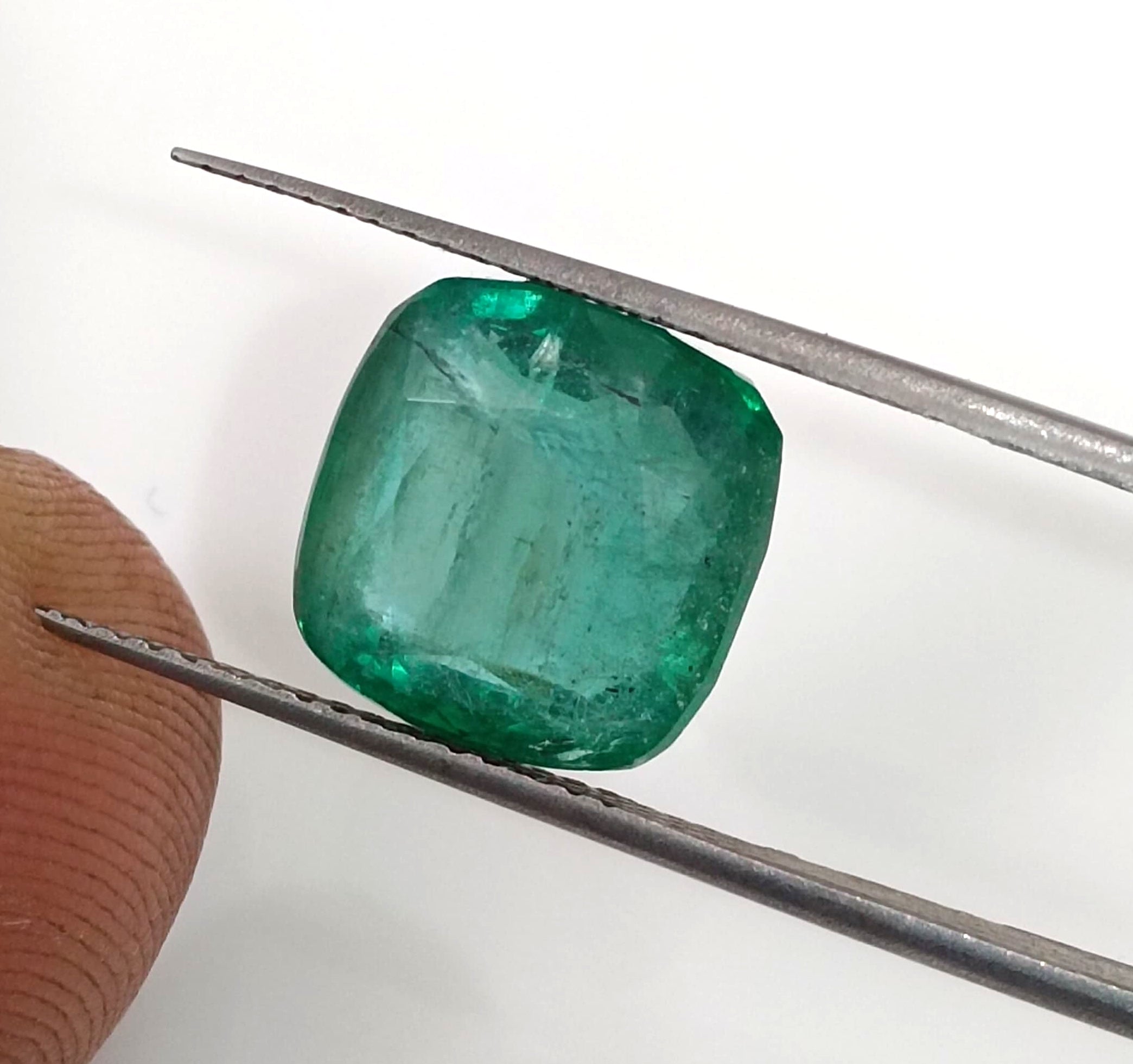 5.87 carats Deep green Zambian emerald. Cushion cut. Color: Deep green Cut - Cushion cut Lustre - Excellent lustre...