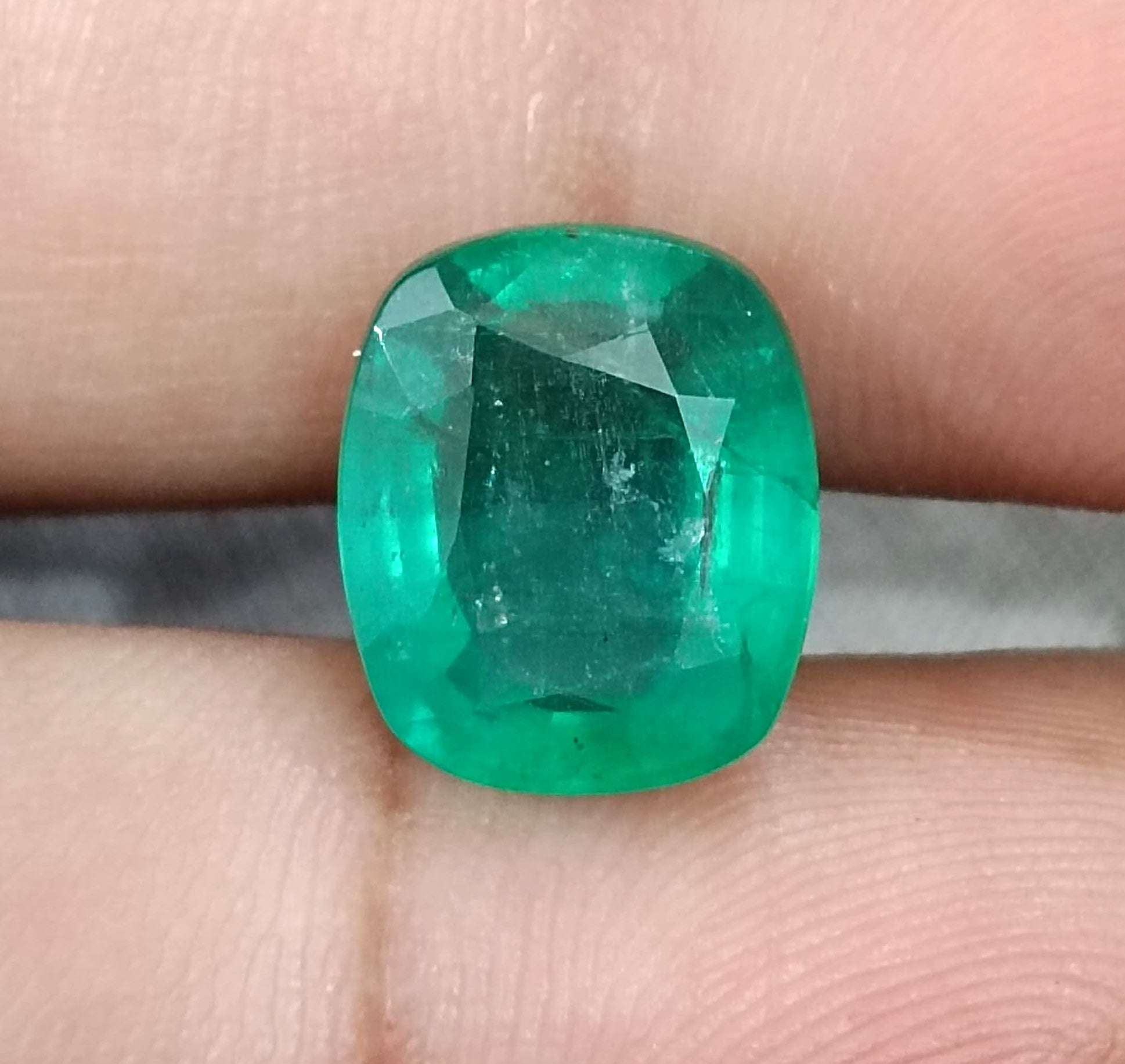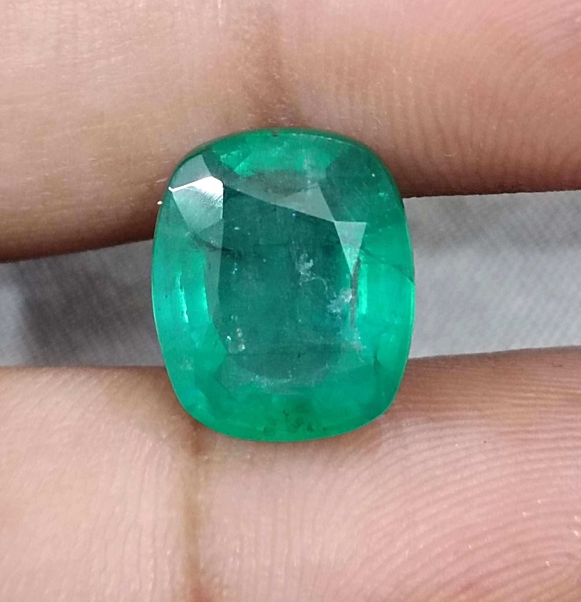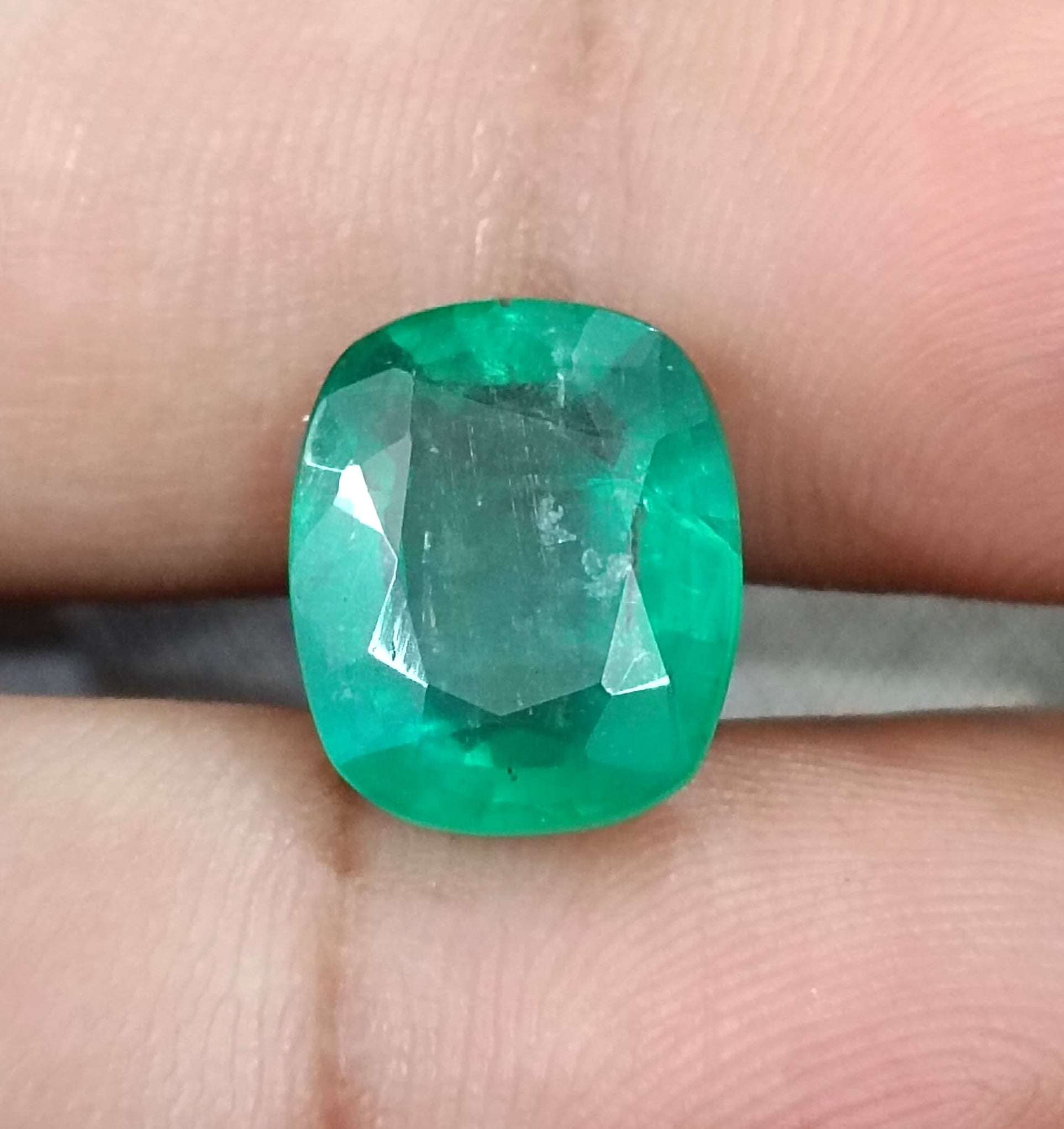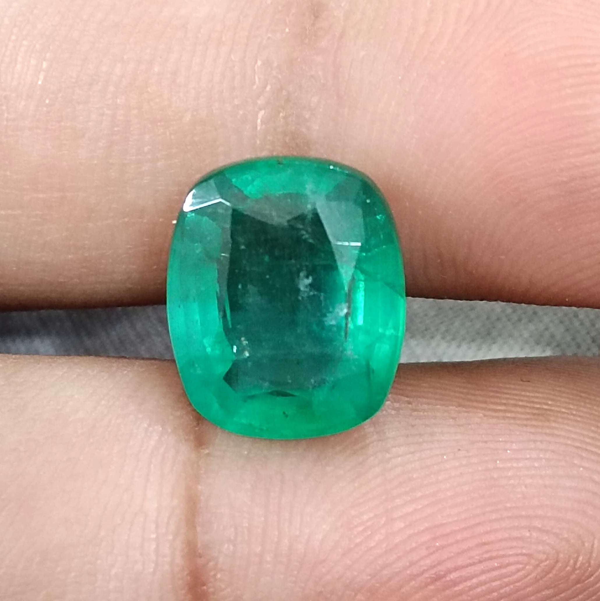 6.28 carats medium deep green Zambian emerald. Minor oiled natural loose gemstone. Color: medium deep green Cut - Cushion cut...