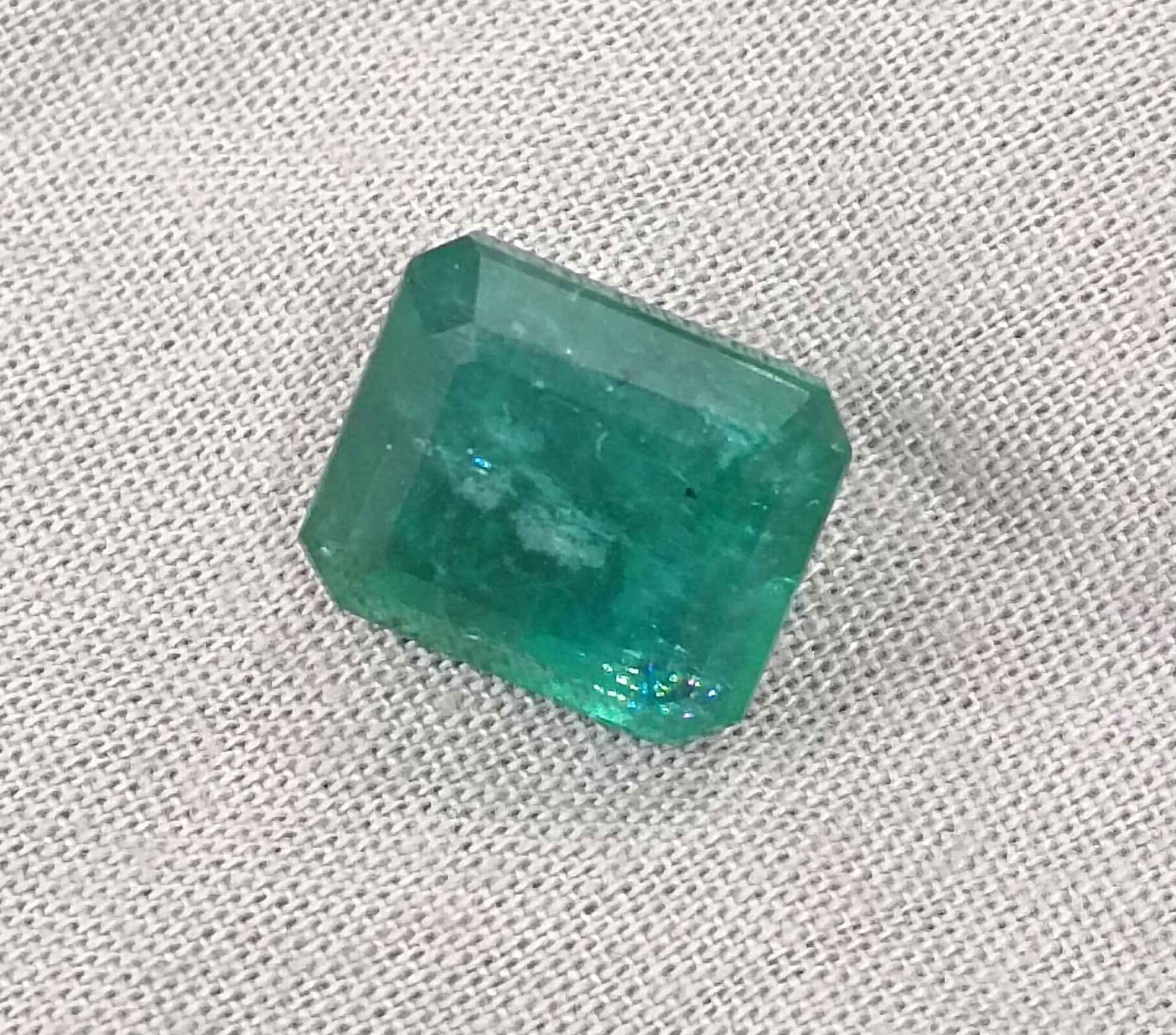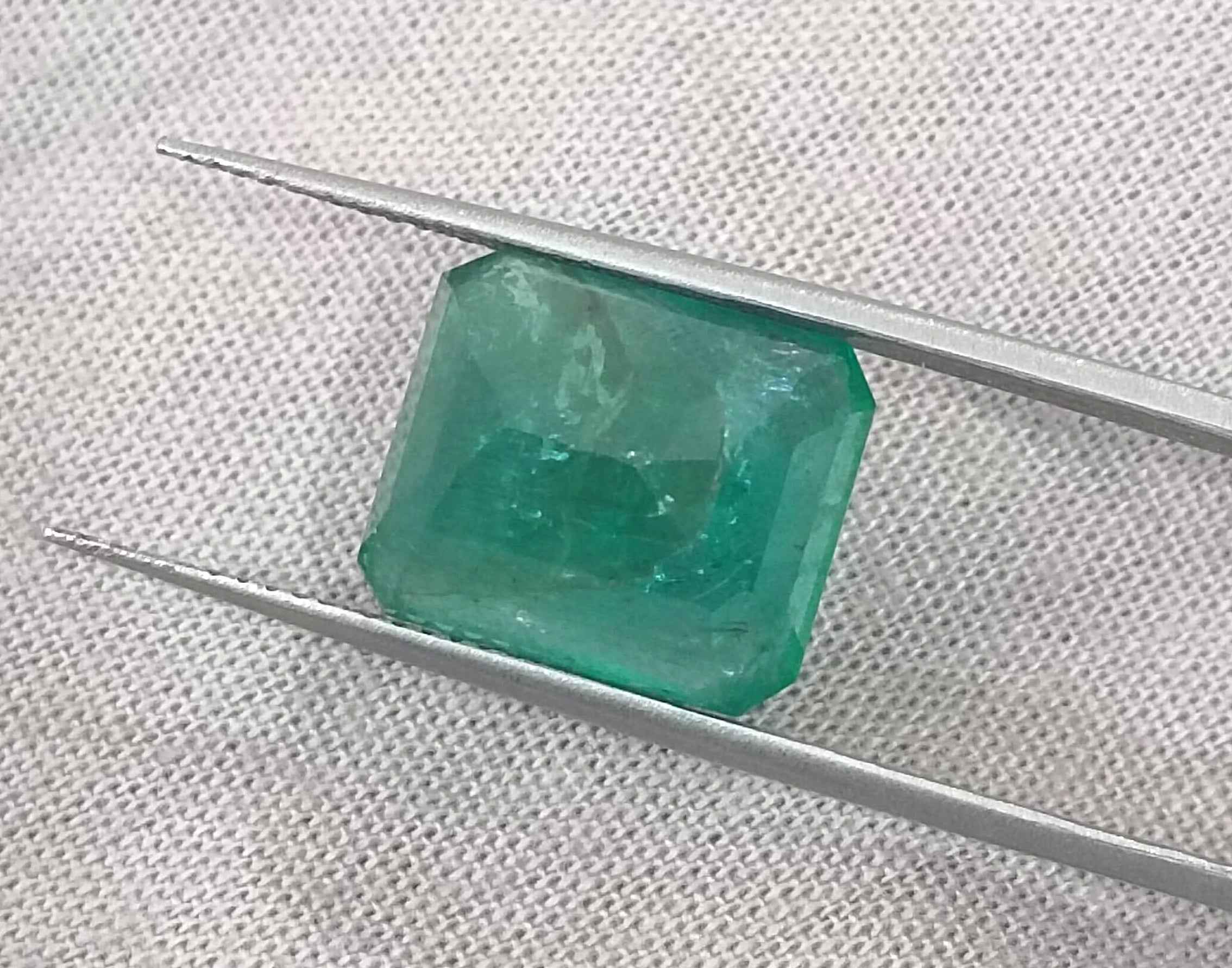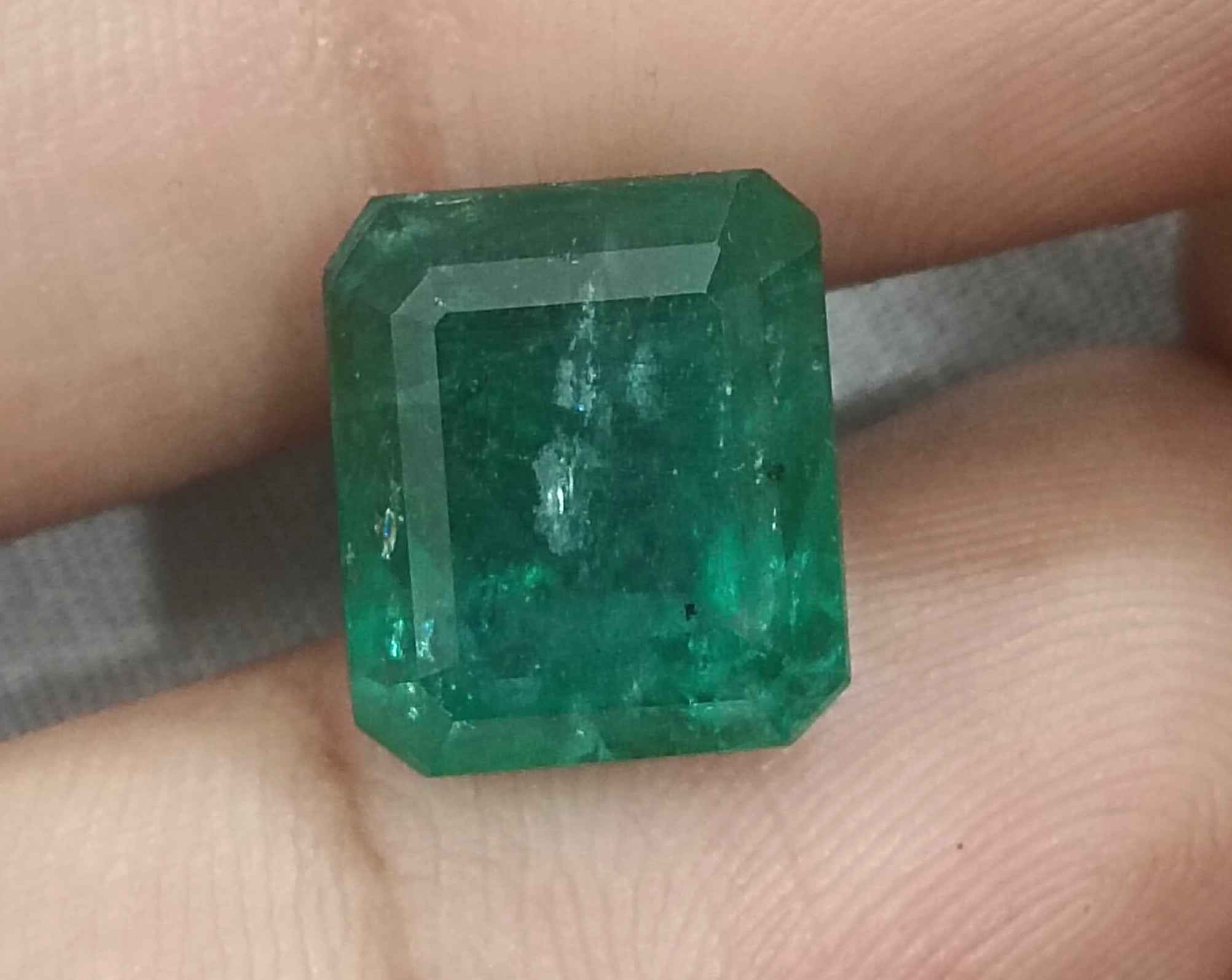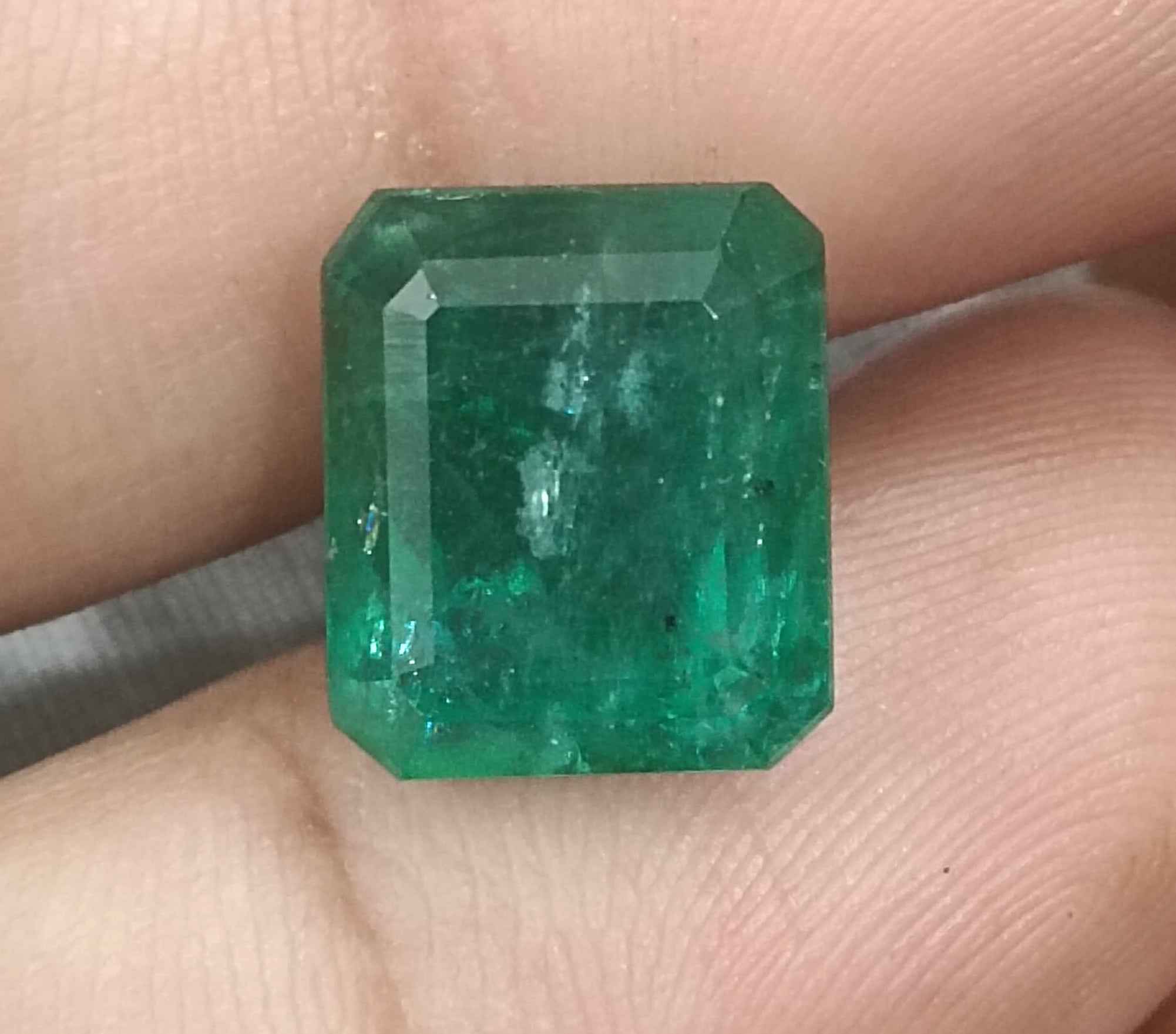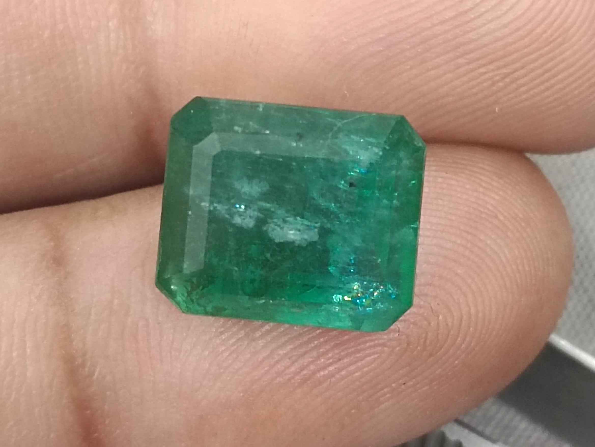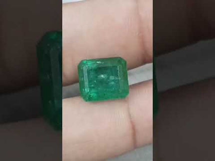 8.36 carats deep forest green Zambian emerald. Moderatelu oiled natural loose gemstone. Color: deep forest green Cut - Emerald cut...