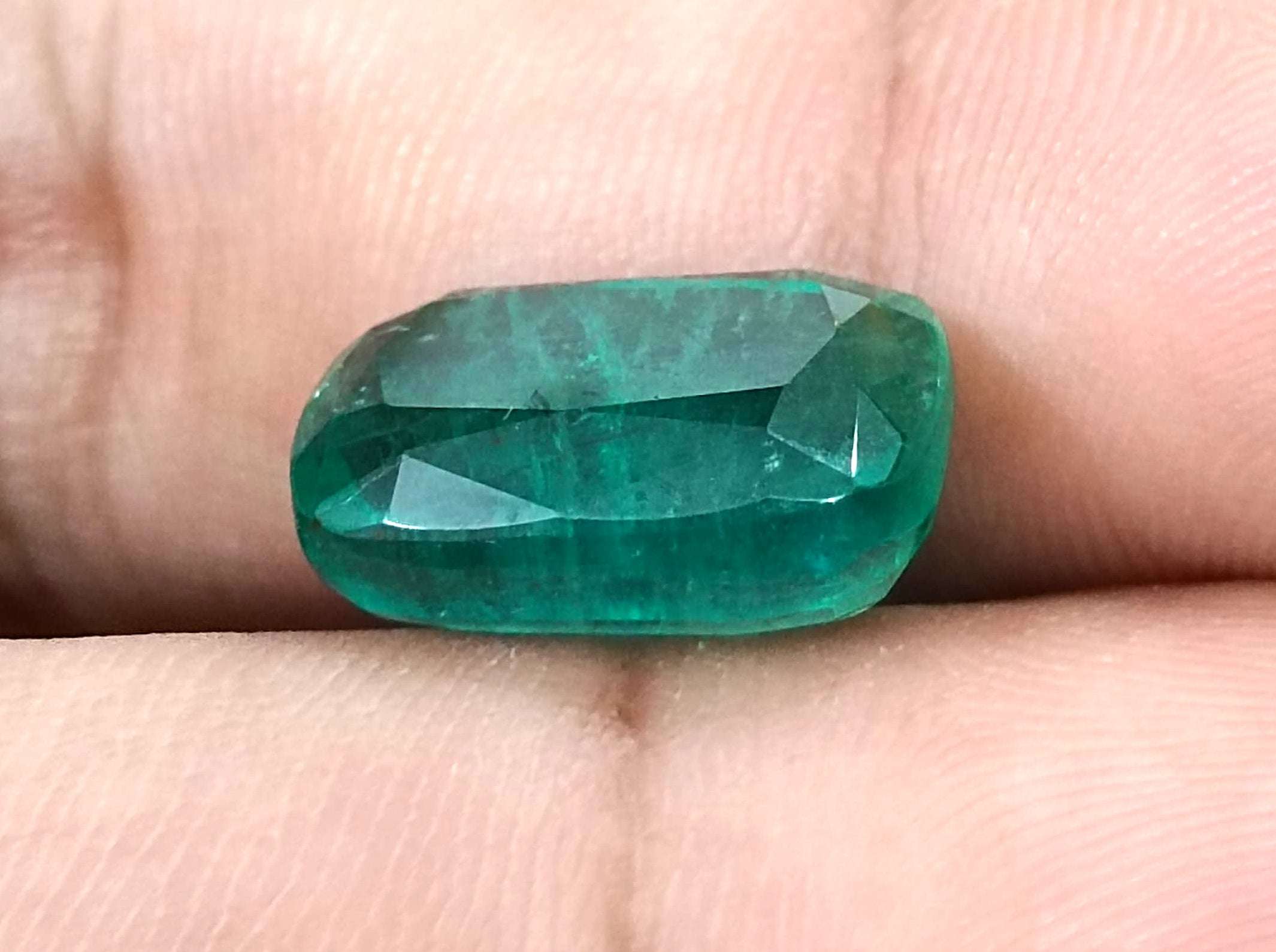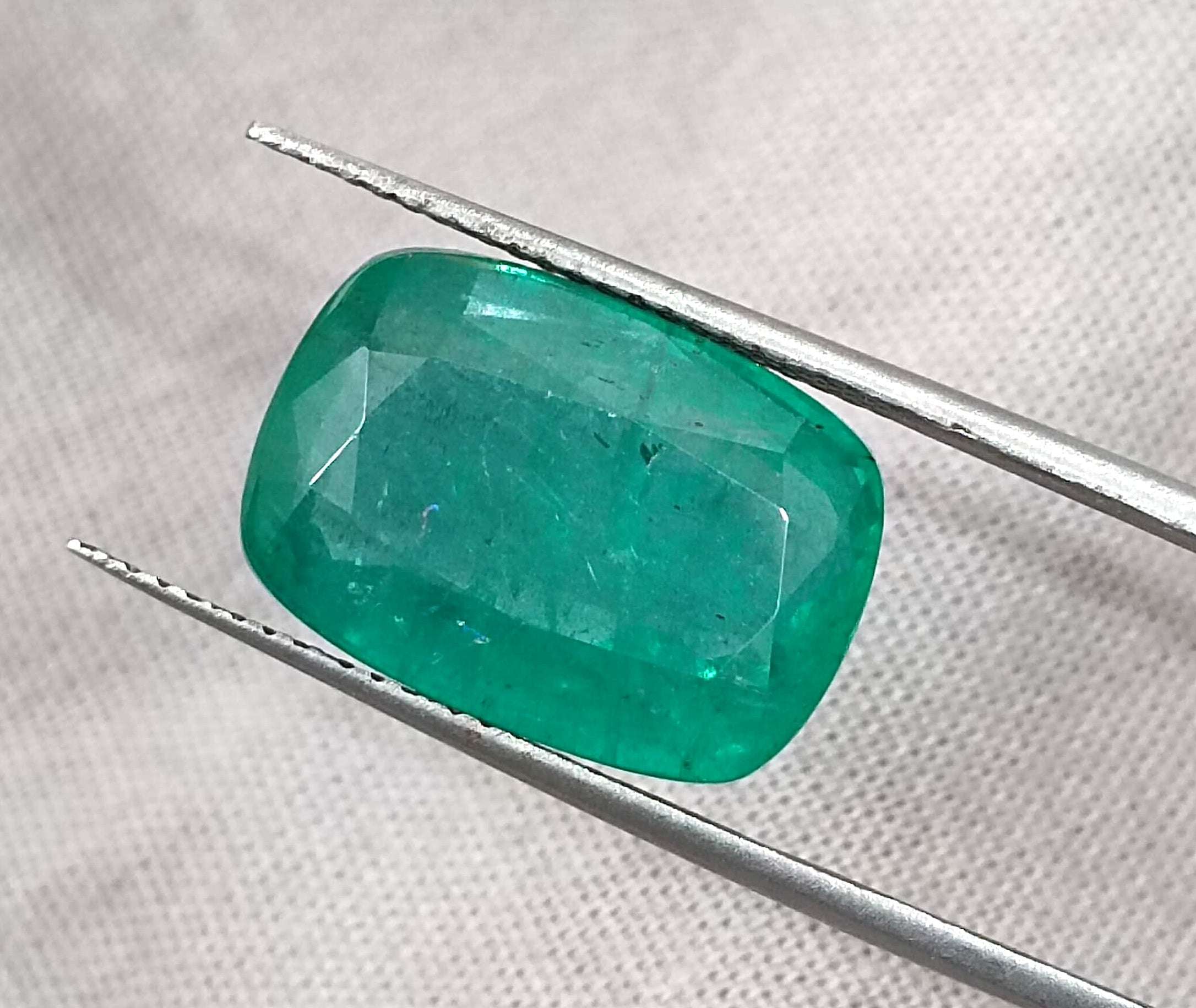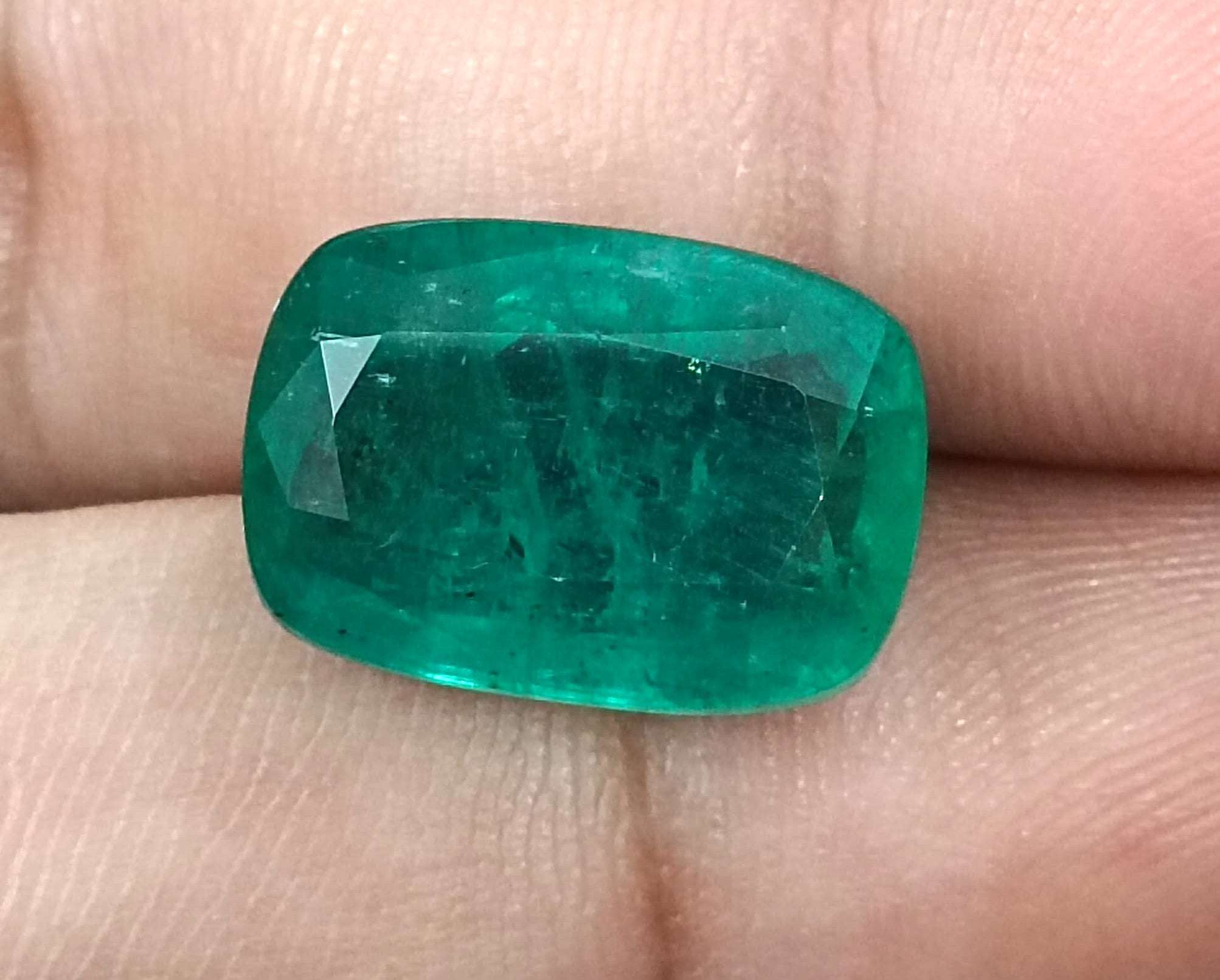 9.75carats medium deep bluish green Zambian emerald. Minor oiled loose gemstone. Color: medium deep bluish green Cut - Cushion cut...
