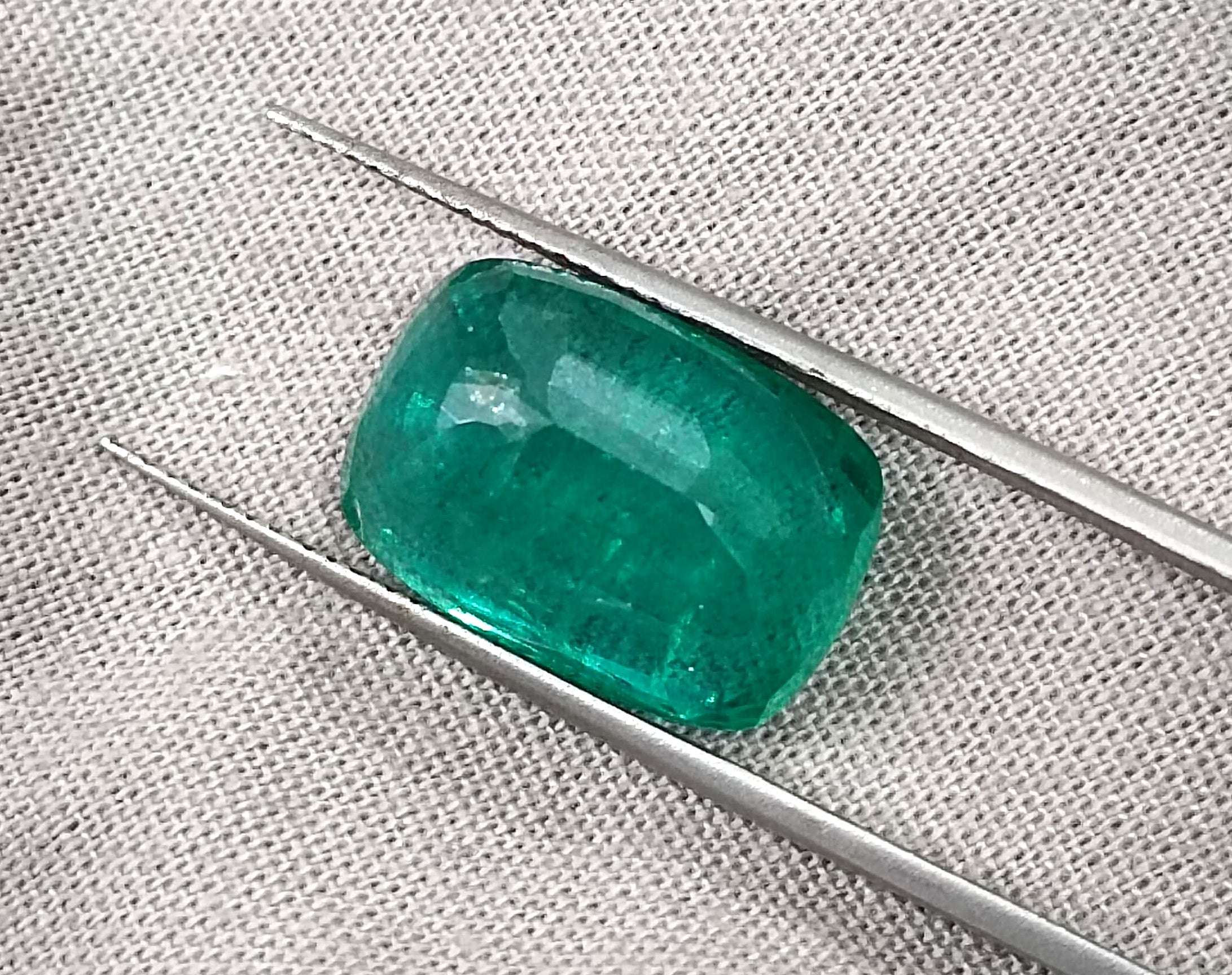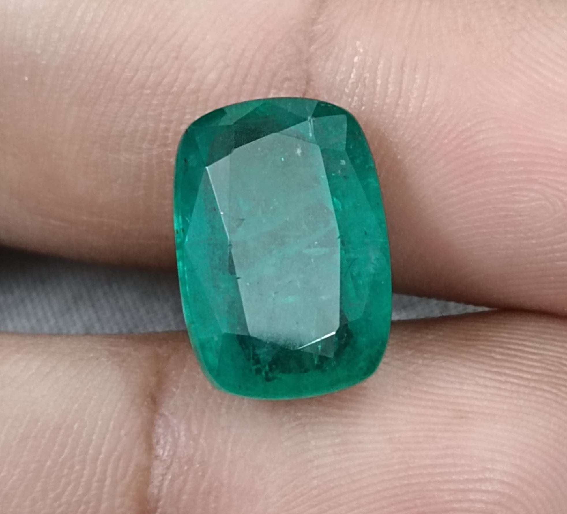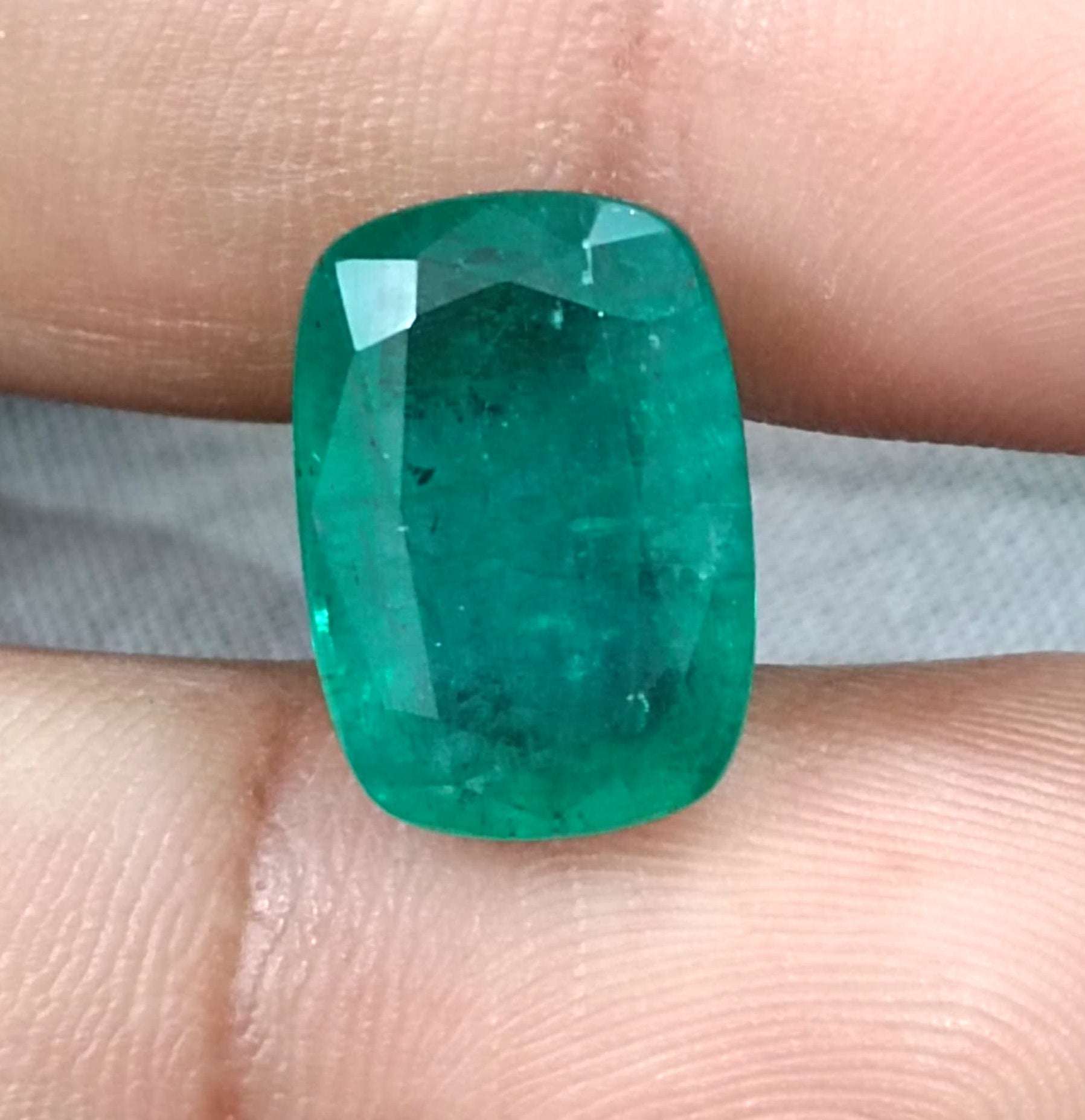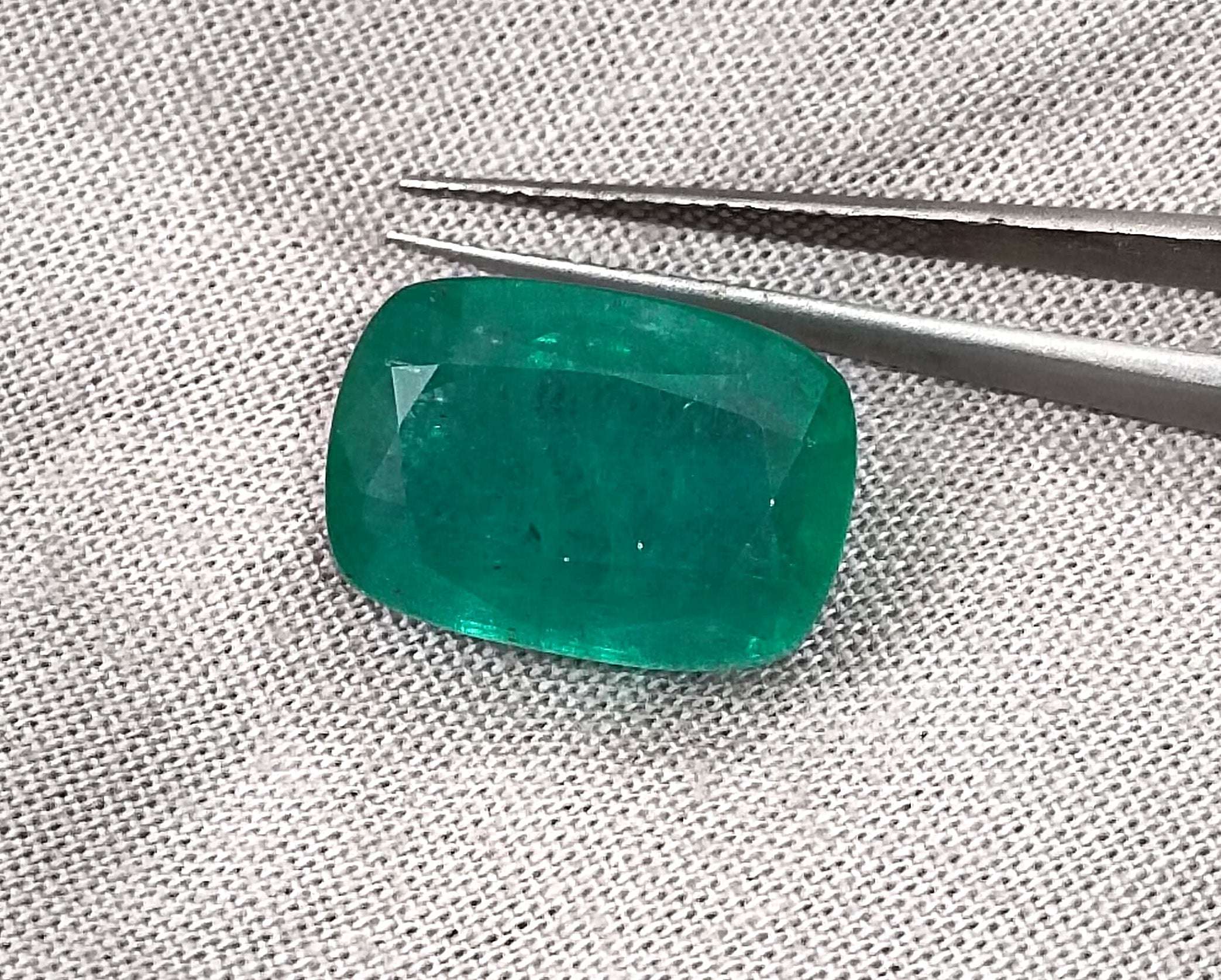 Big 9.75ct Zambian Emerald, Cushion cut Medium Deep Green Loose Gemstone.