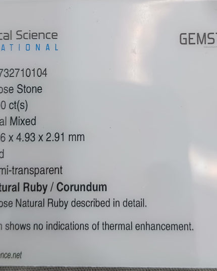 Natural Ruby 1.00ct Certified Untreated Loose Gemstone.