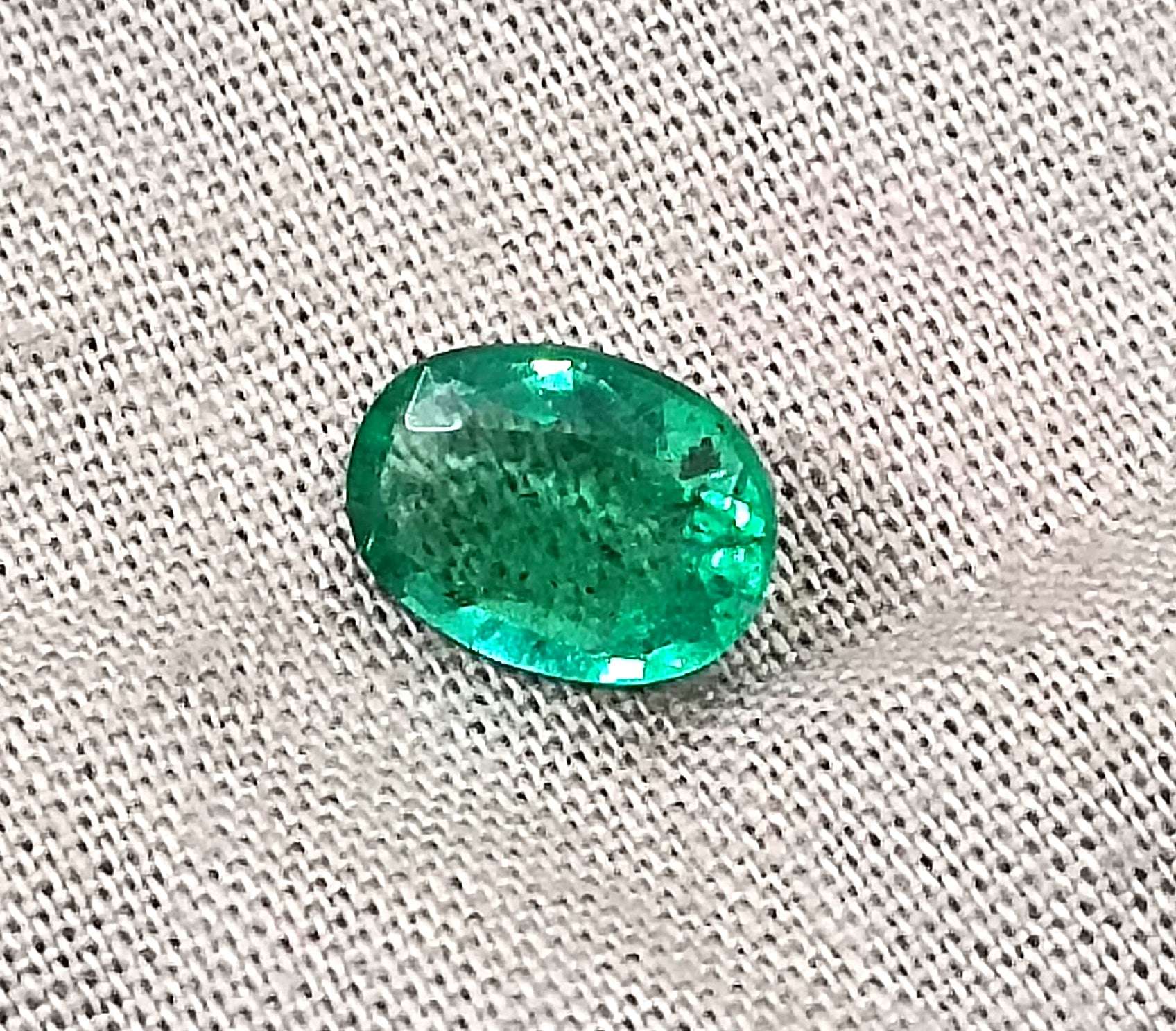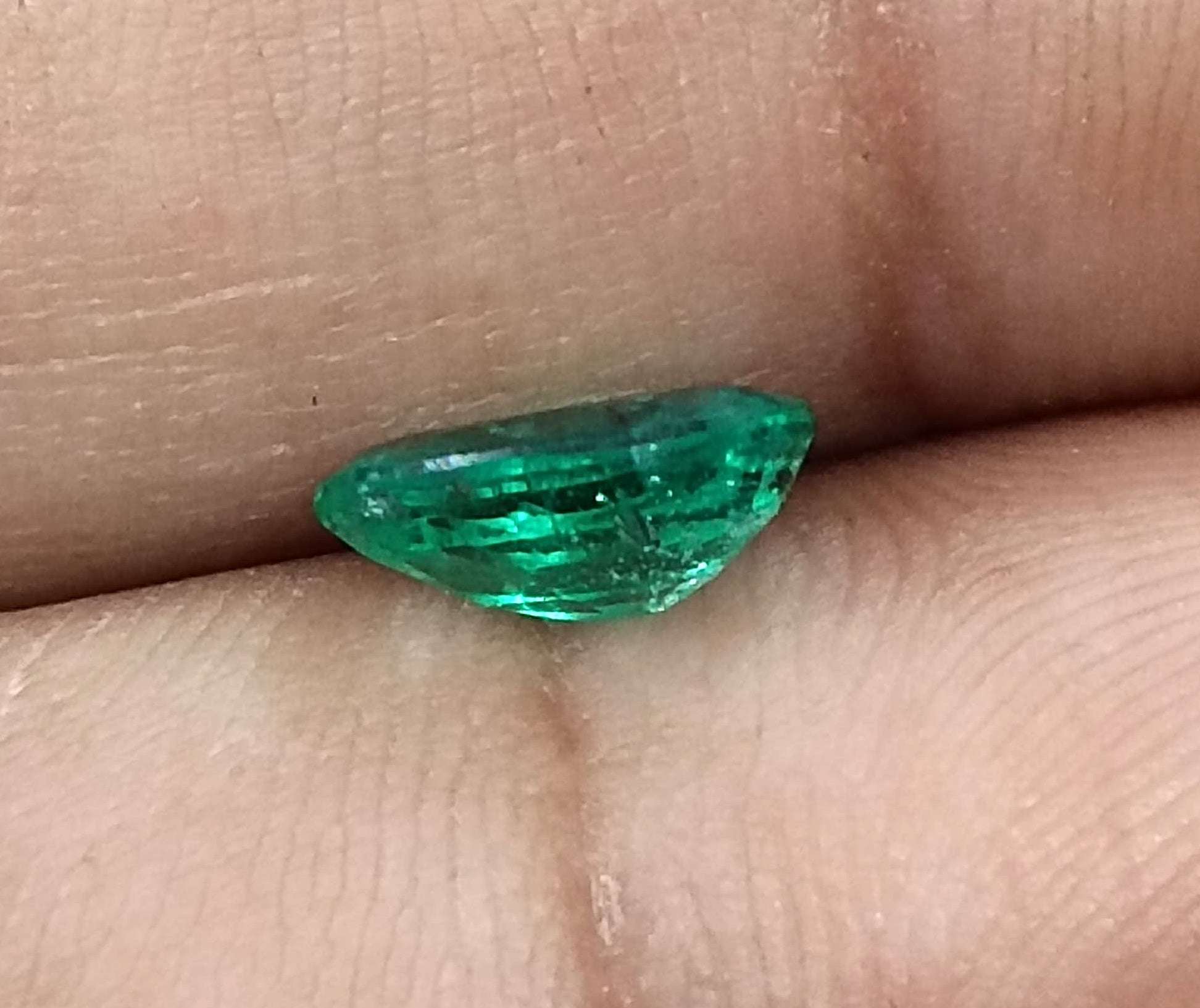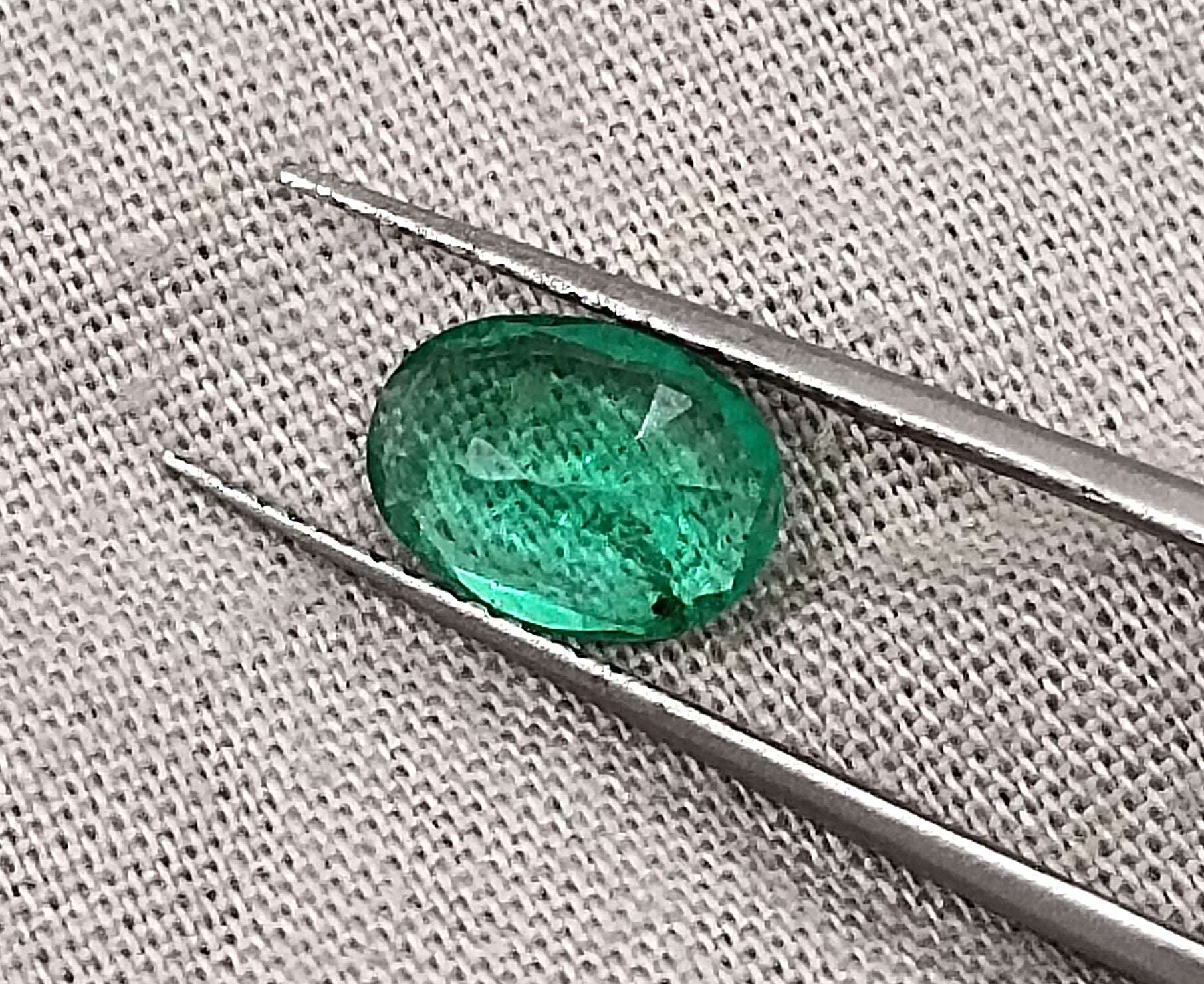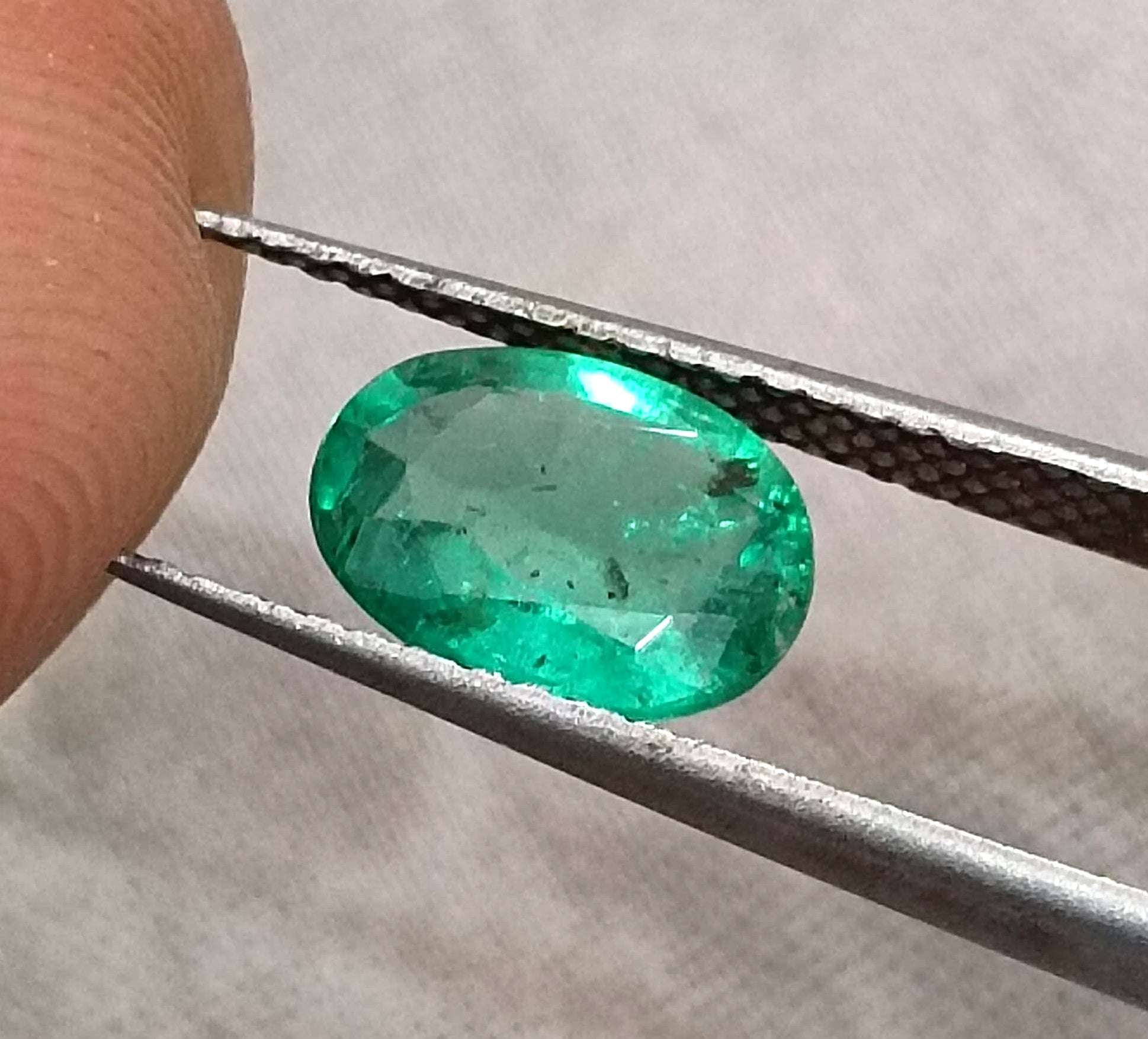 1.24 carats GSI certified Vivid medium green Zambian emerald. Oval cut minor oiled loose gemstone. Color: Vivid medium green...