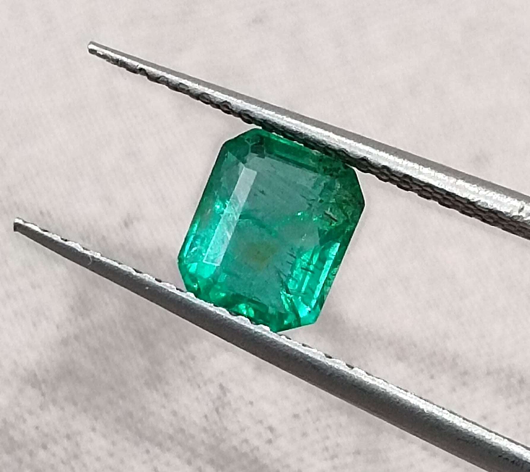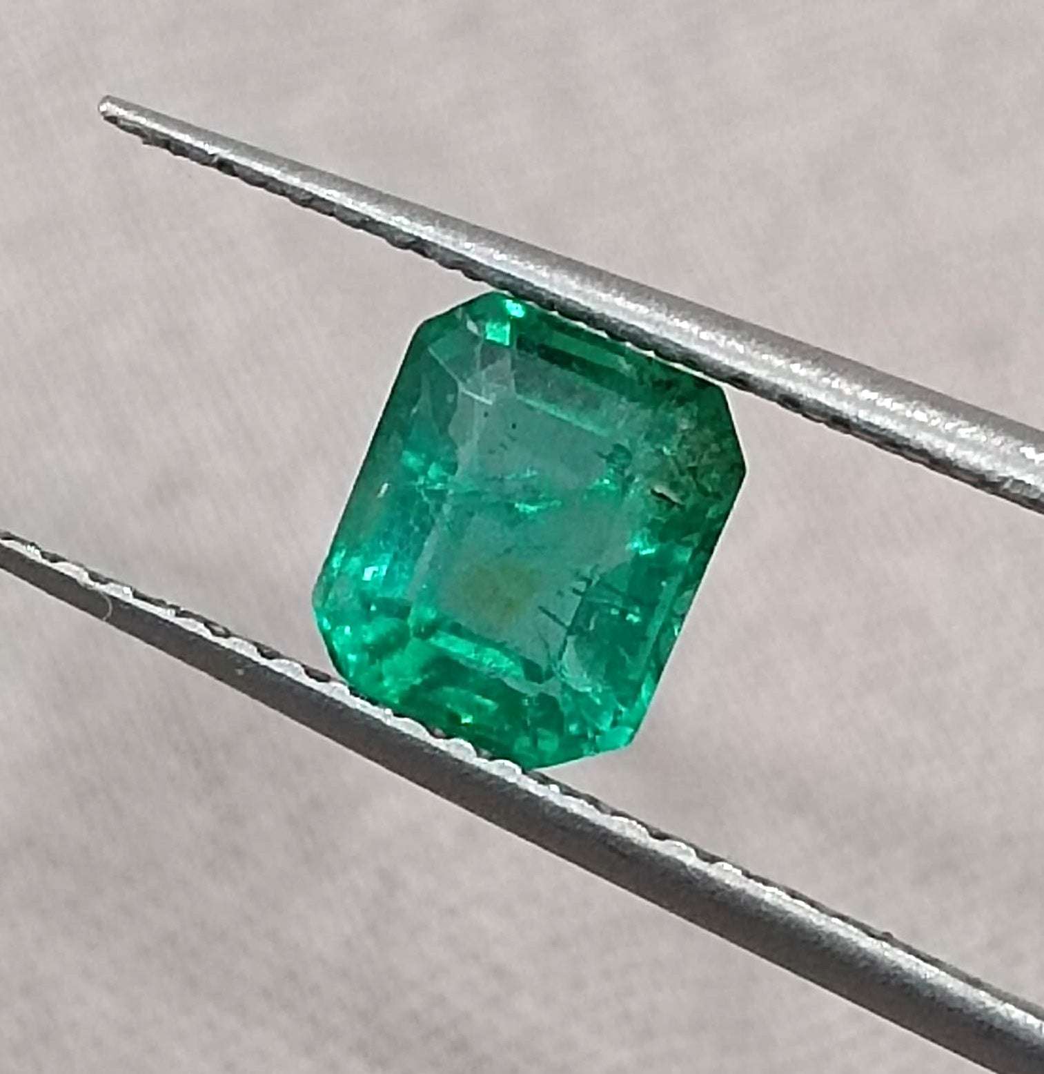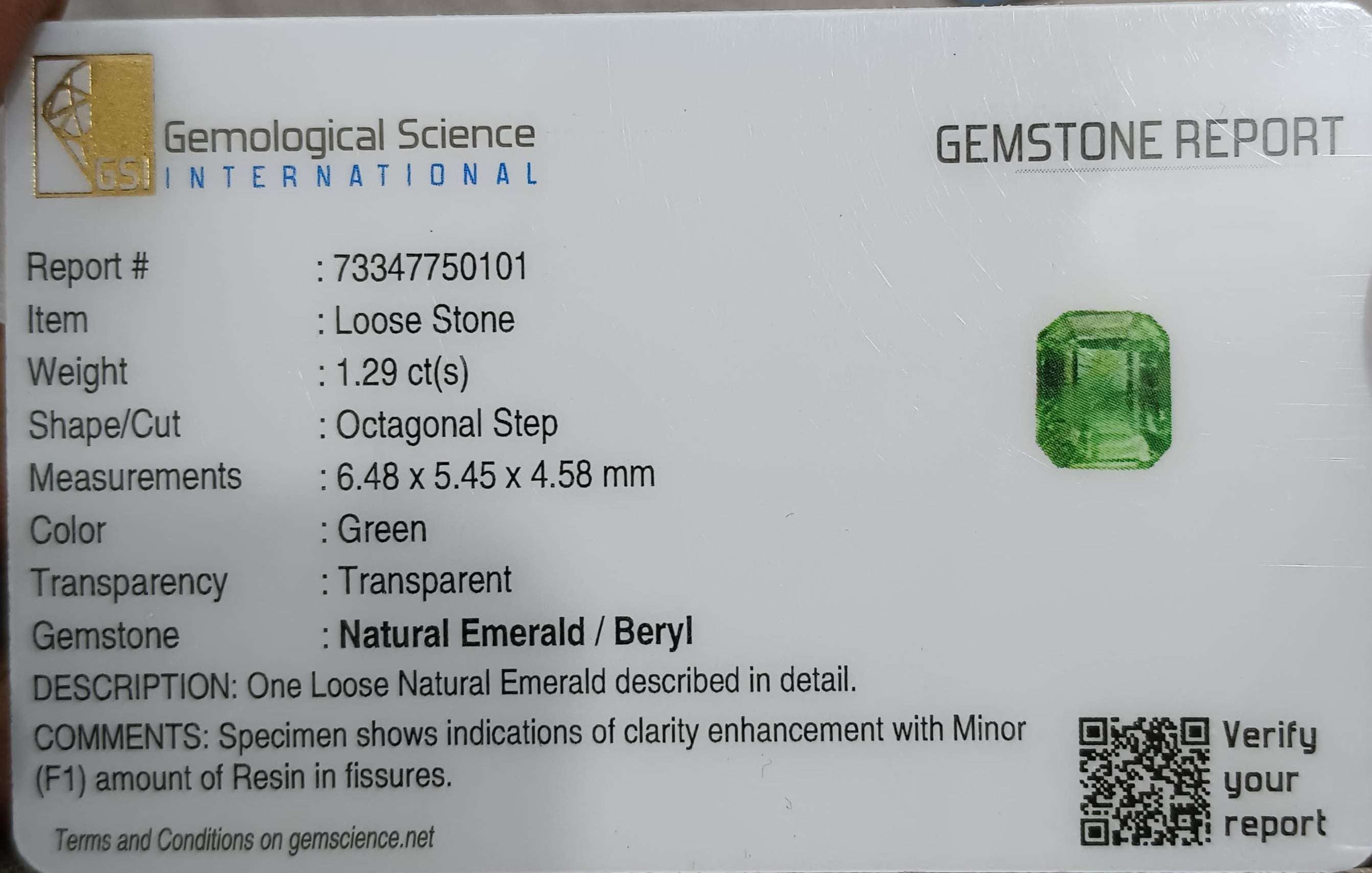 1.29 carats GSI certified medium deep green Zambian emerald. Minor clarity enchanced loose gemstone. Color: Medium deep green Cut...