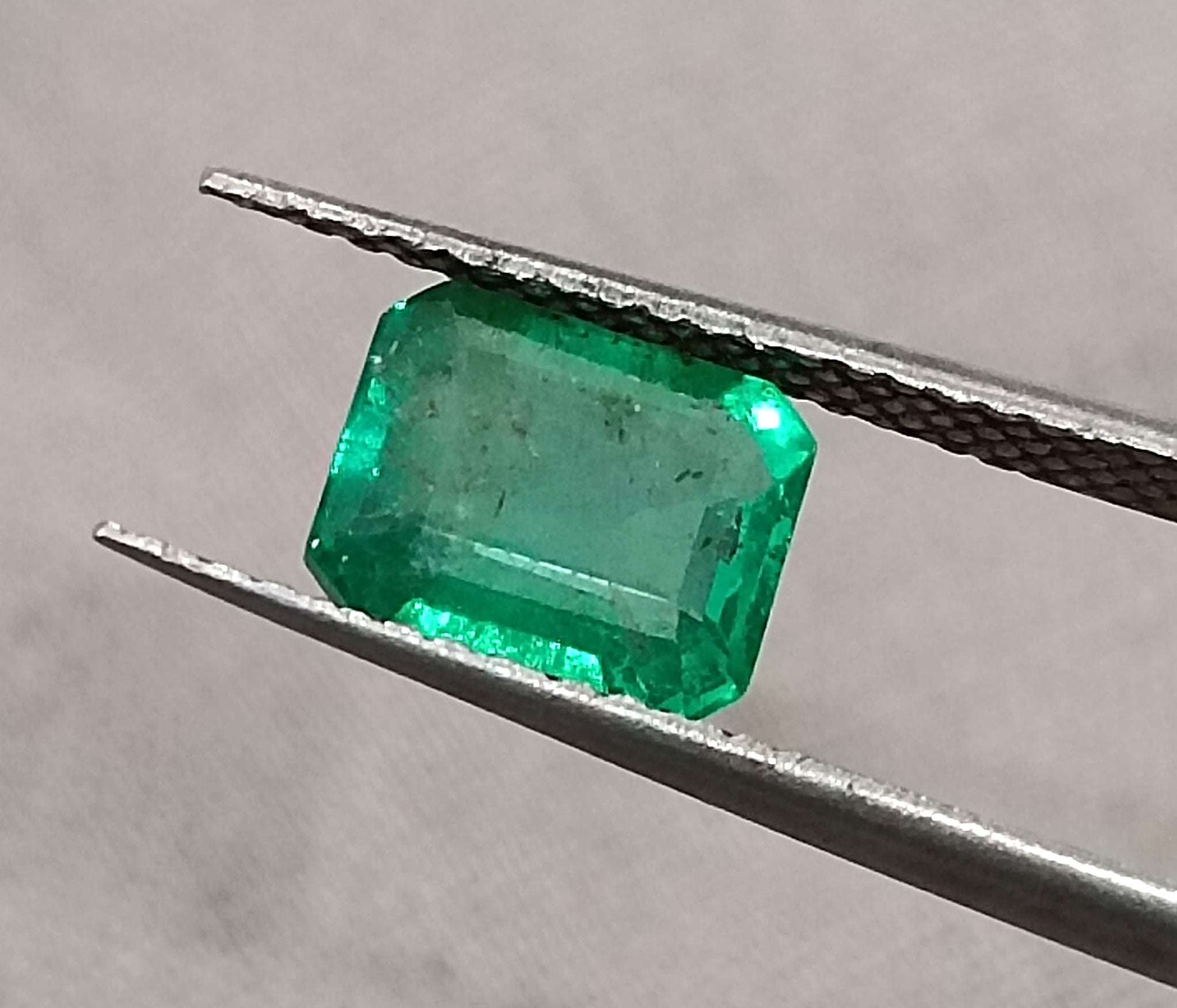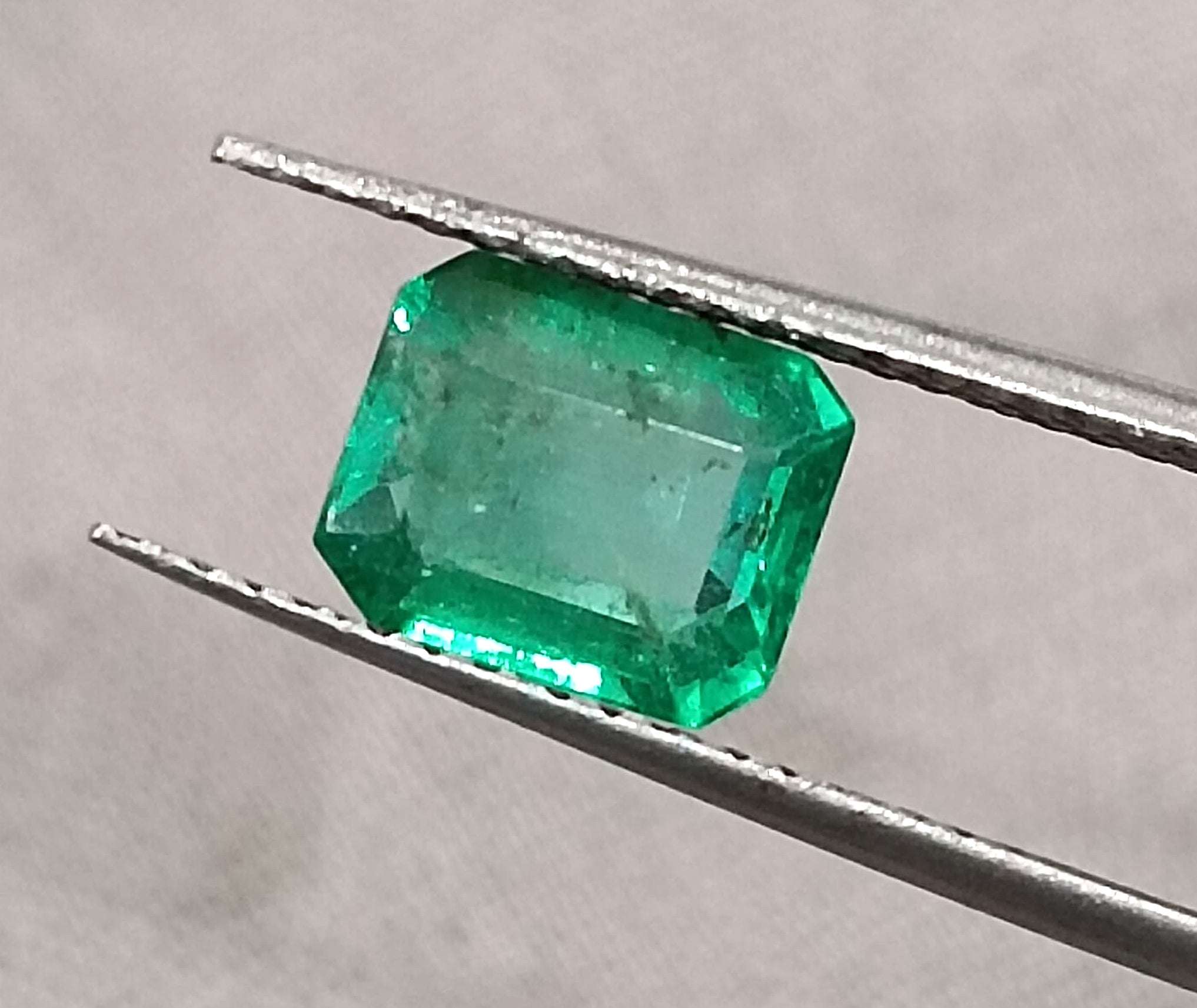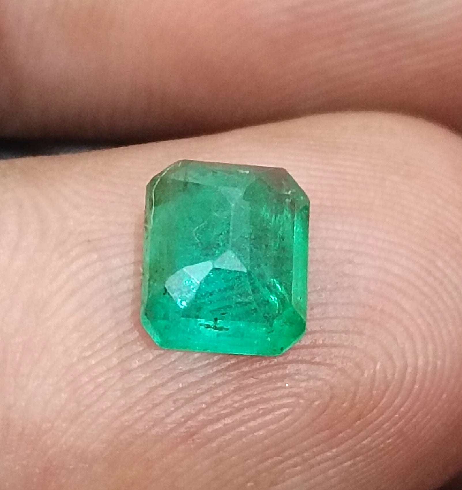 Quality 1.31 carats GSI certified parrot green Zambian emerald. Emerald cut Minor oiled loose gemstone. Color: Parrot green Cut...