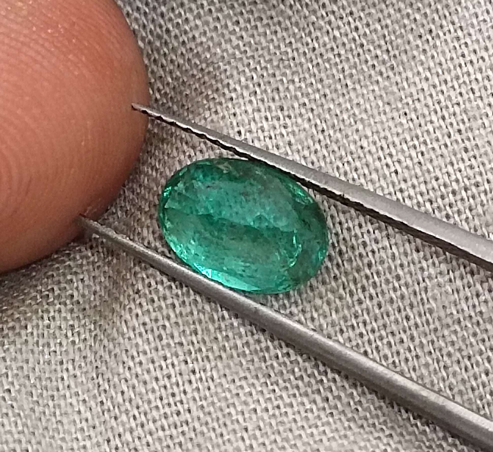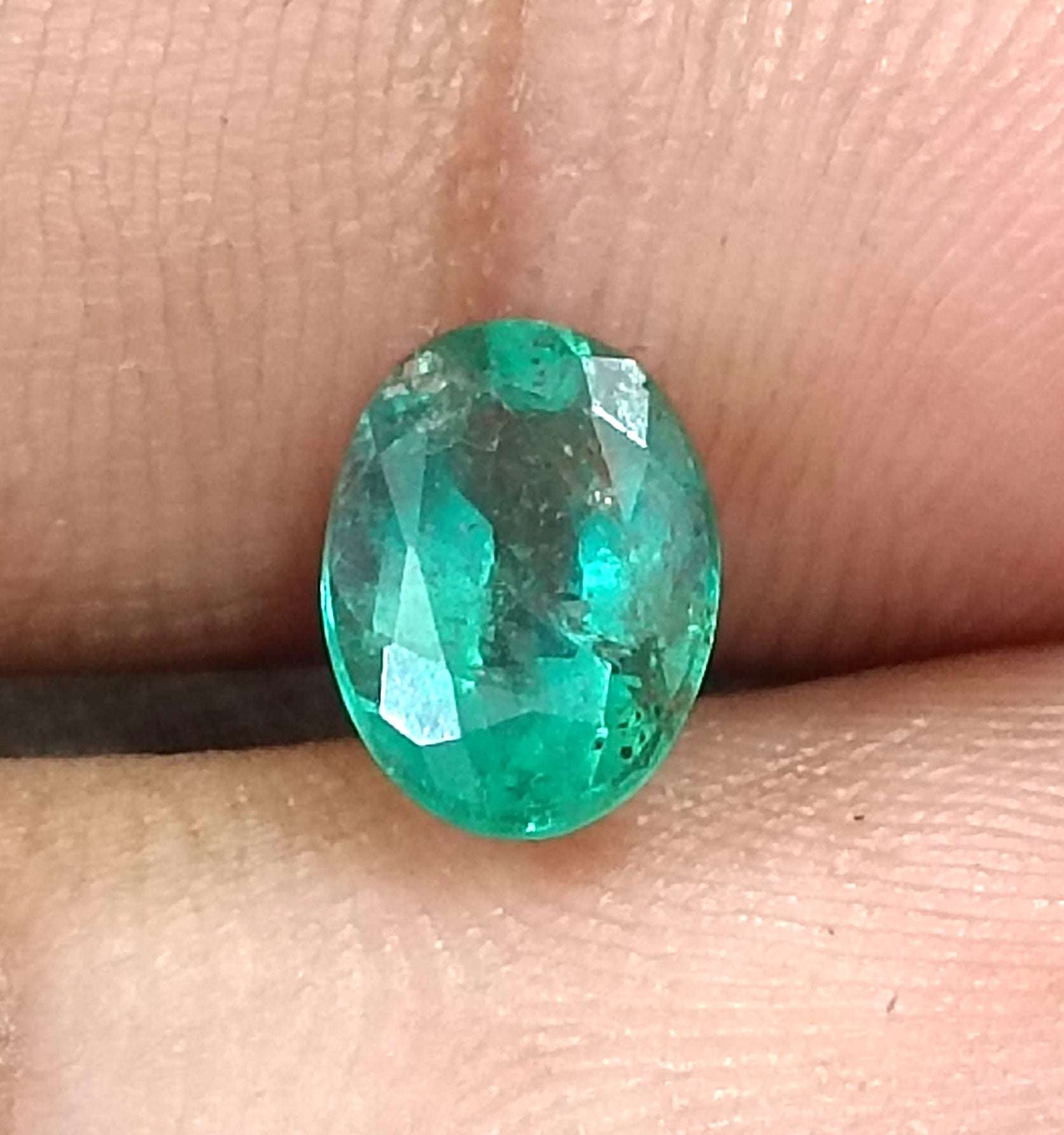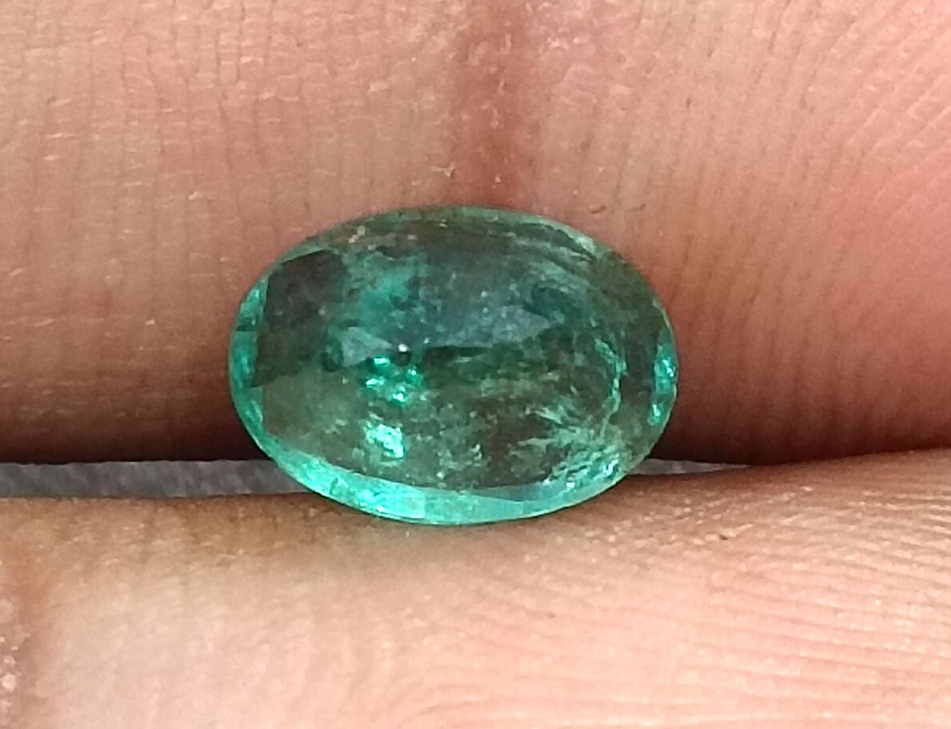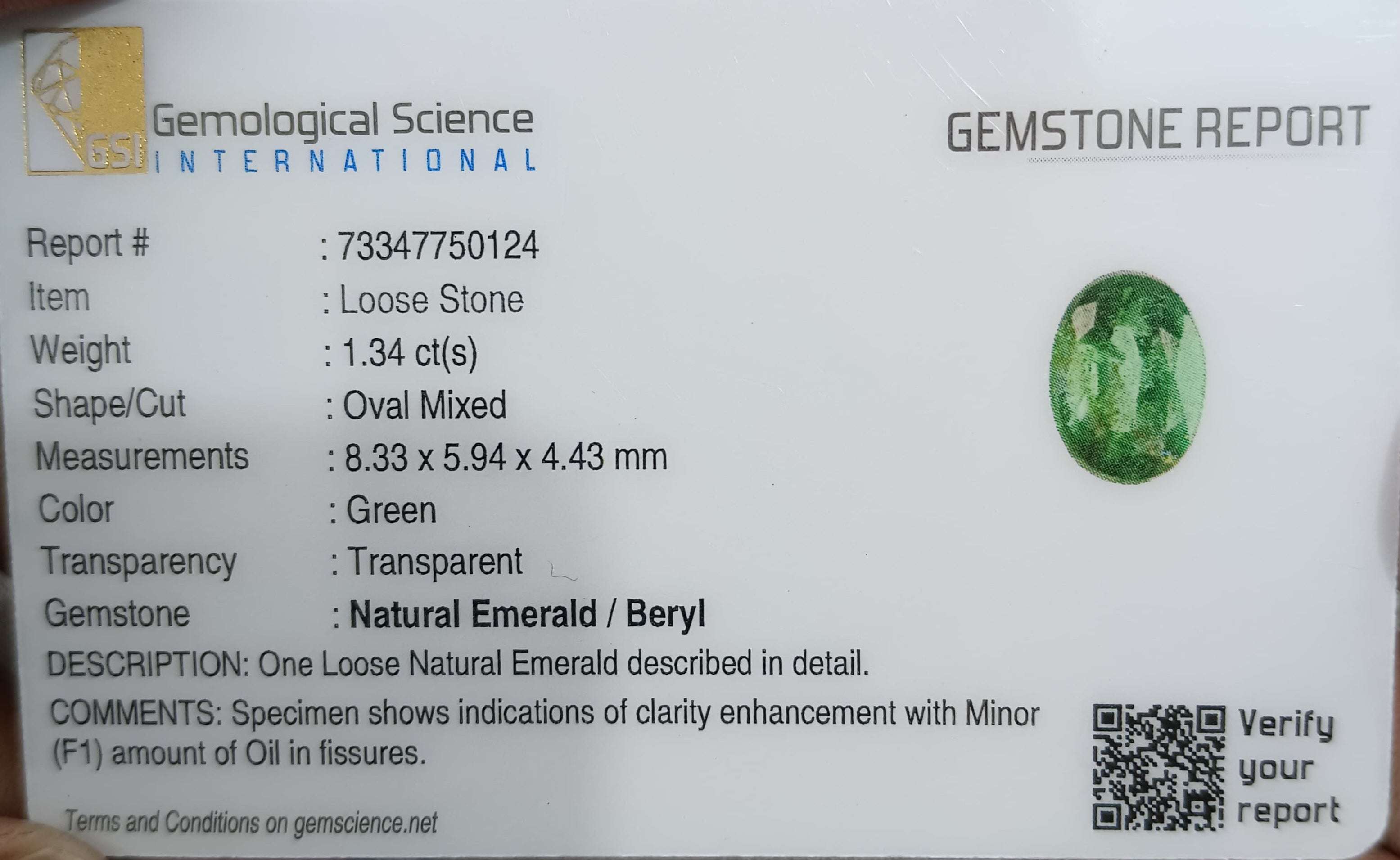 1.34 carats GSI certified Deep green Zambian emerald. Oval cut Minor oiled loose gemstone. Color: Deep green Cut -...