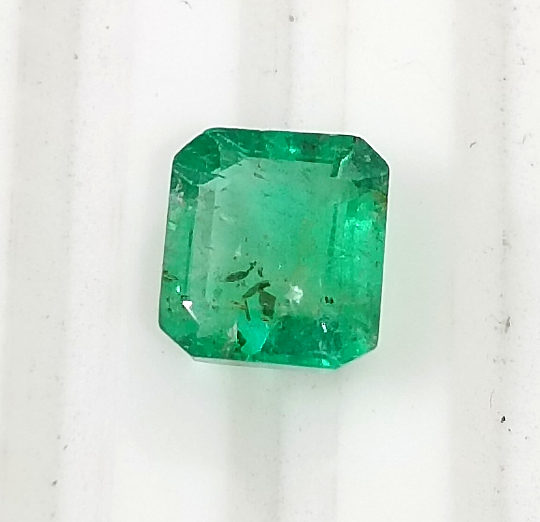 1.51 carats GSI certified medium green Zambian emerald. Emerald cut minor oiled loose gemstone. Color: medium green Cut -...