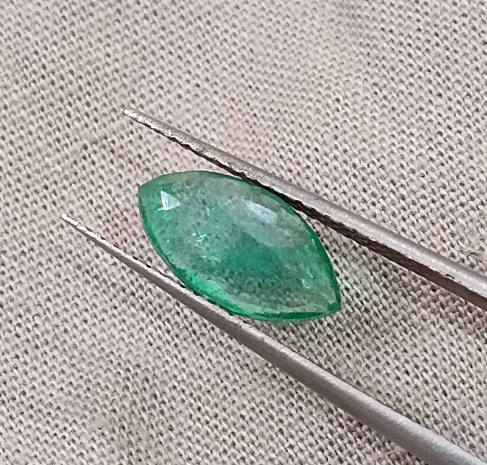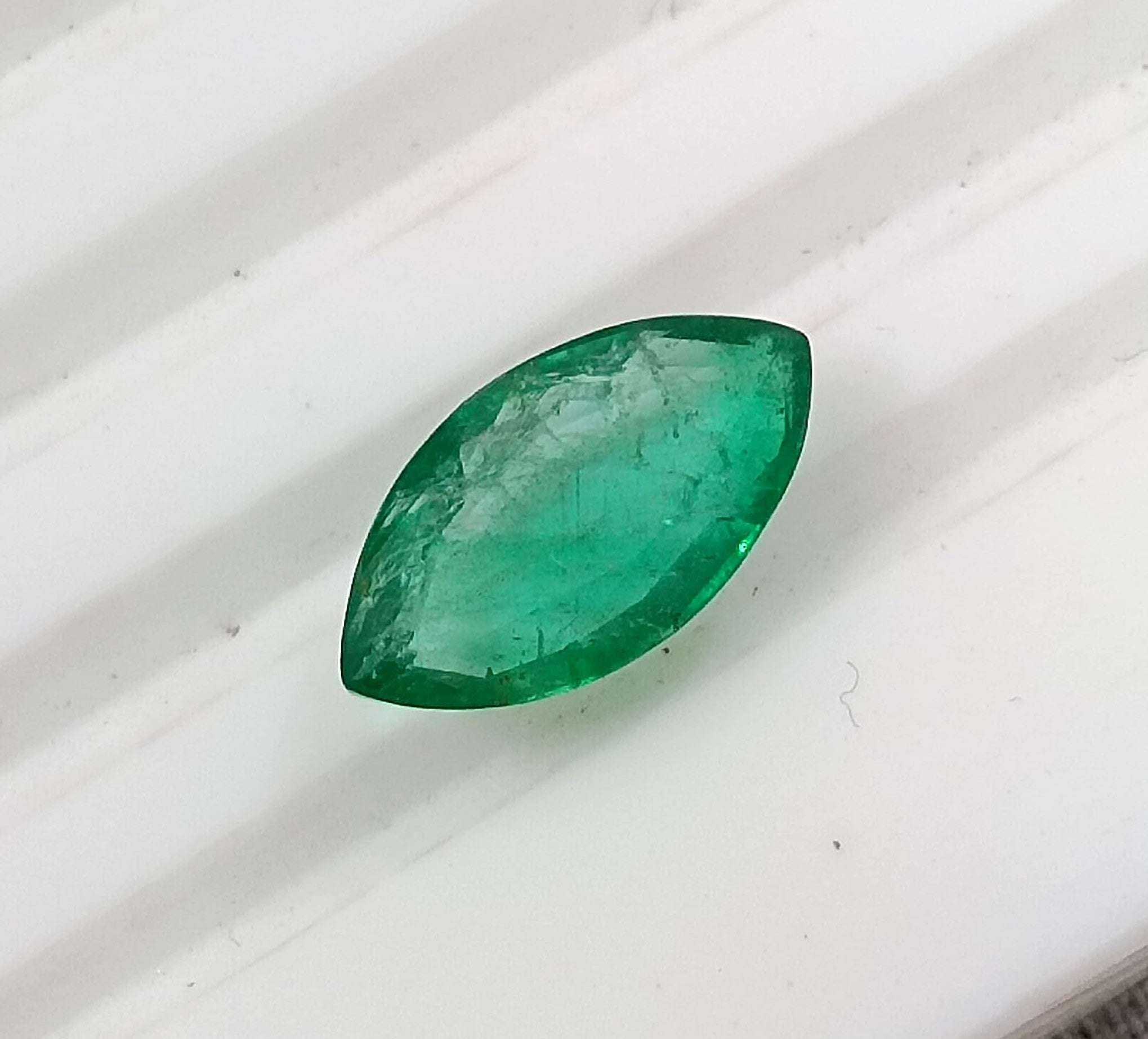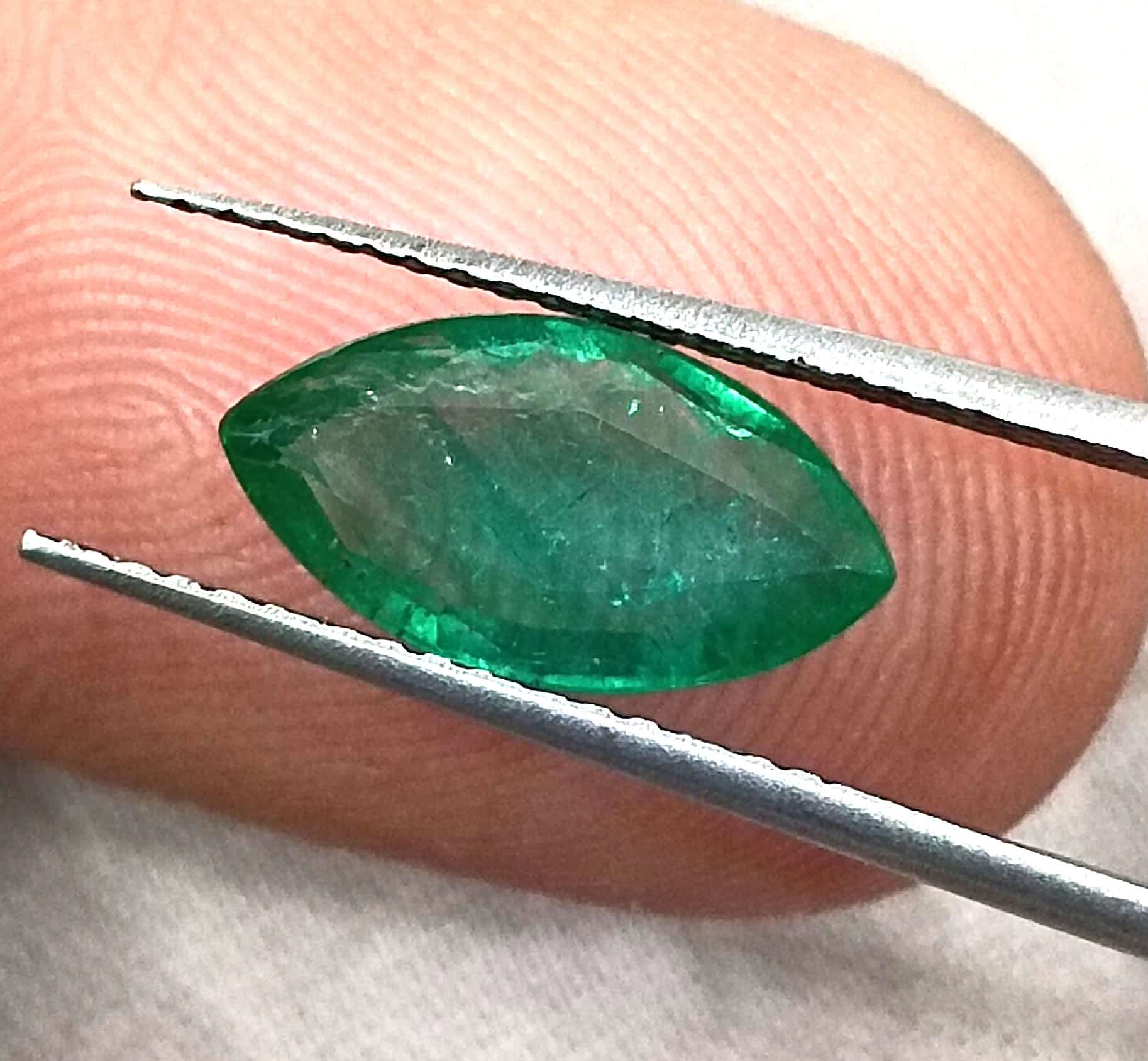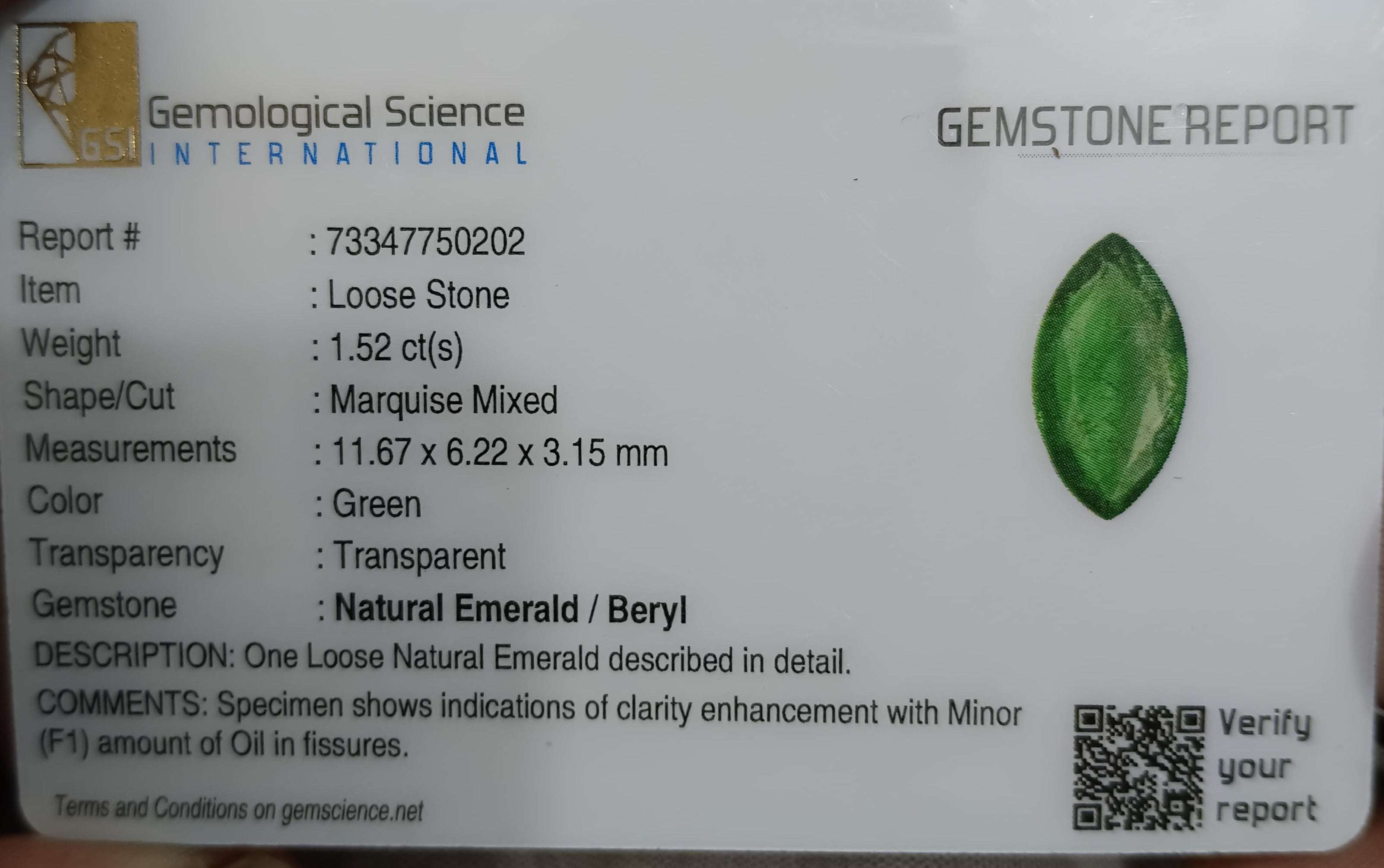 1.52 carats GSI certified medium leaf green Panjshir emerald. Marquise cut minor oiled loose gemstone. Color: Medium leaf green...