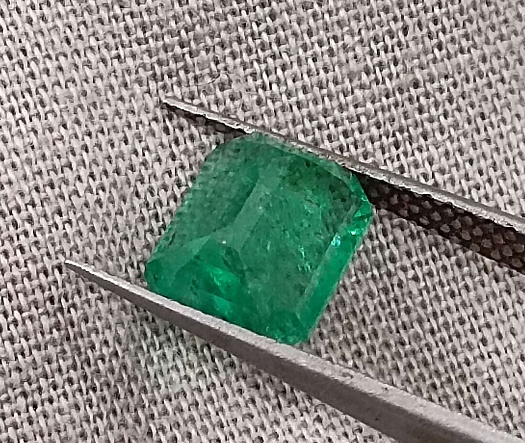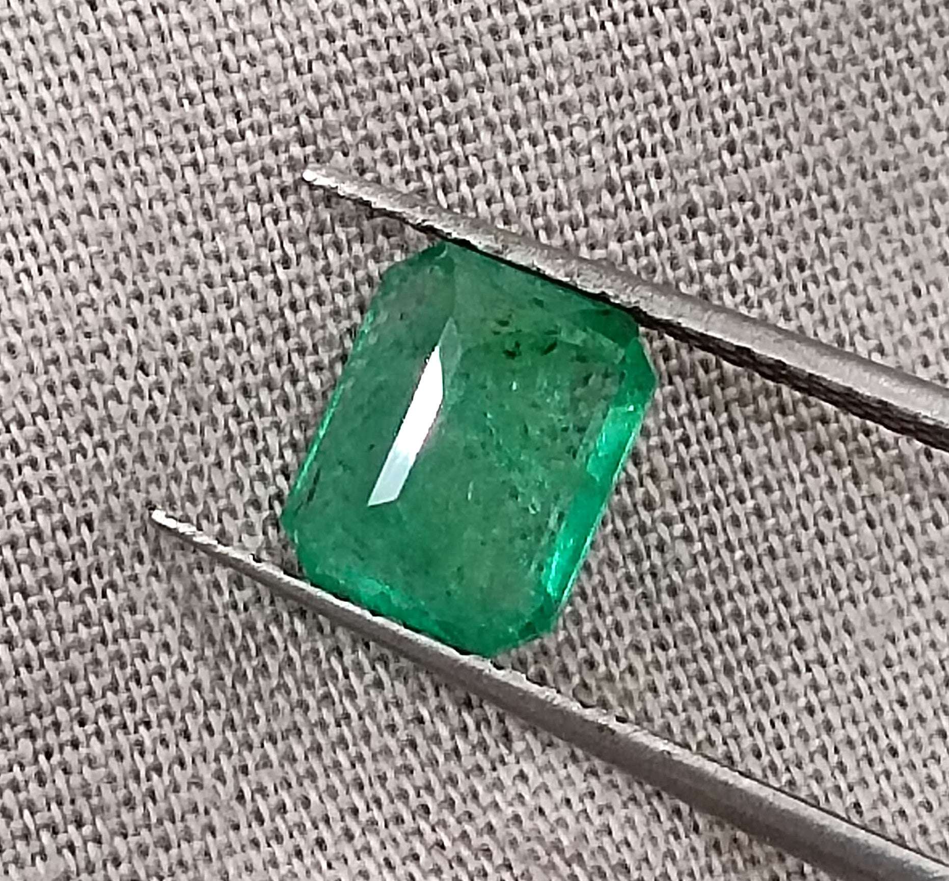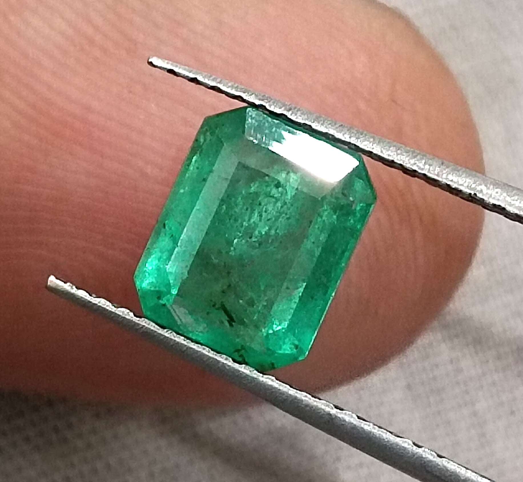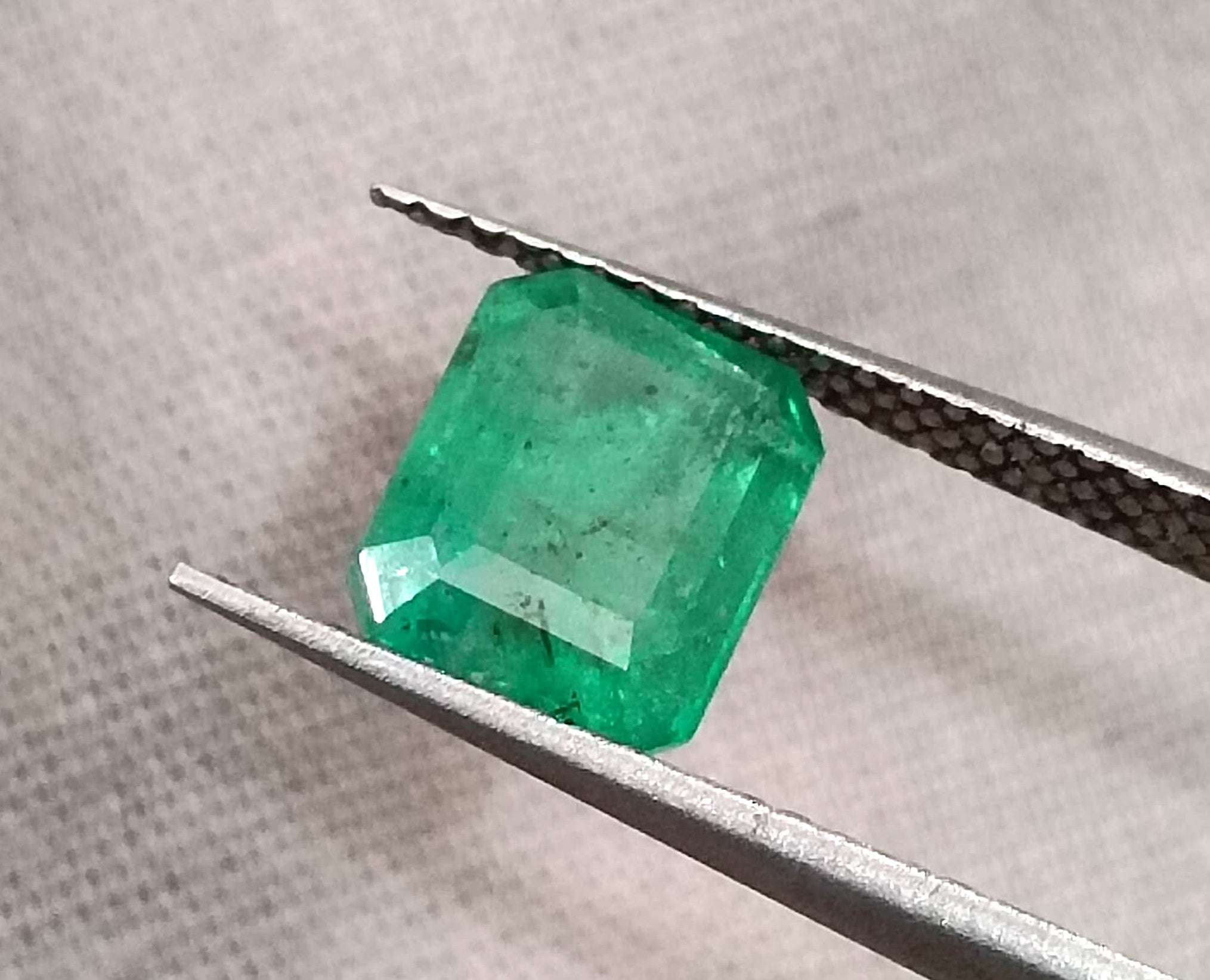 1.62 carats GSI certified medium green Zambian emerald. Minor oiled loose gemstone. Color: Medium green Cut - Emerald cut...