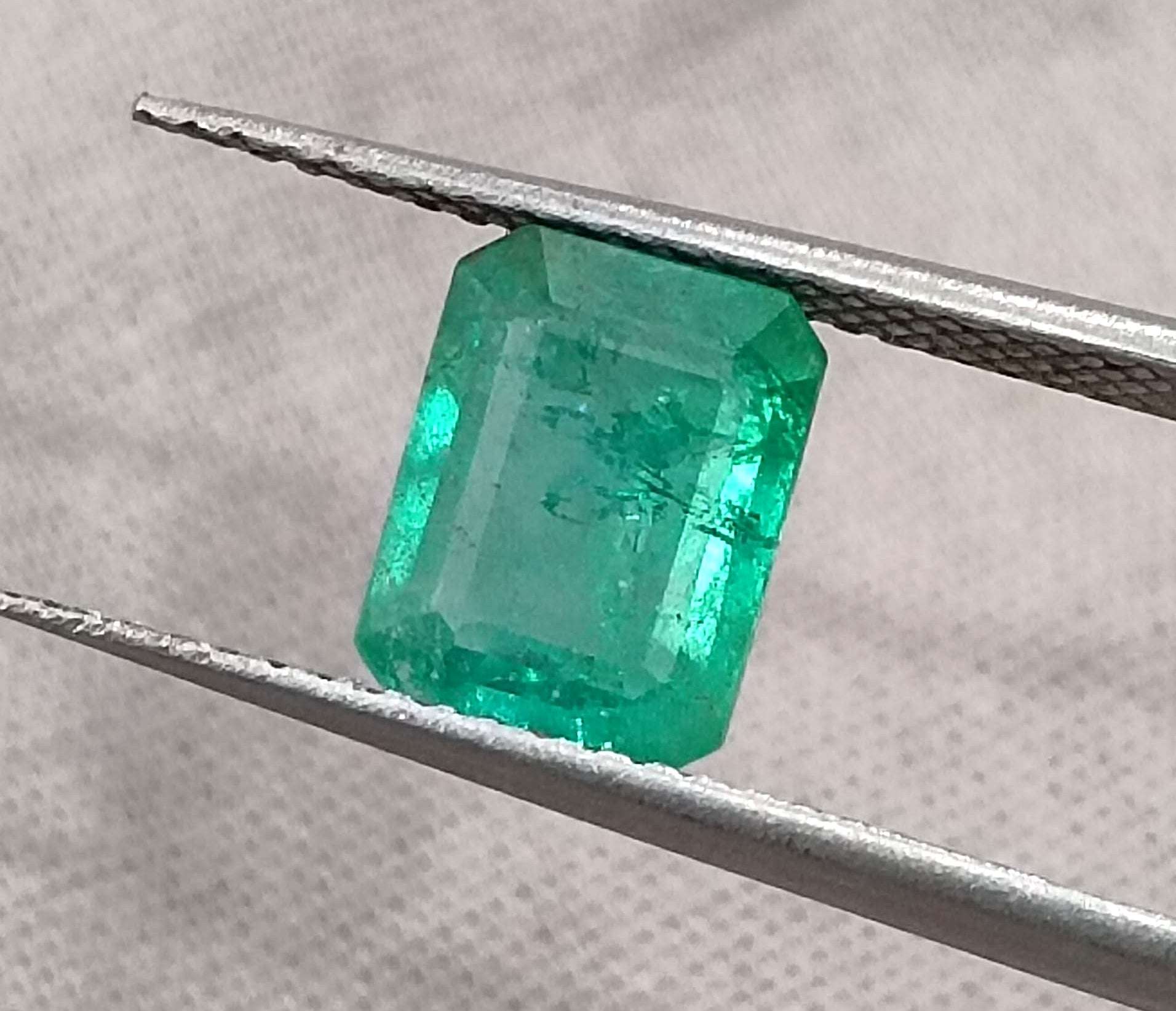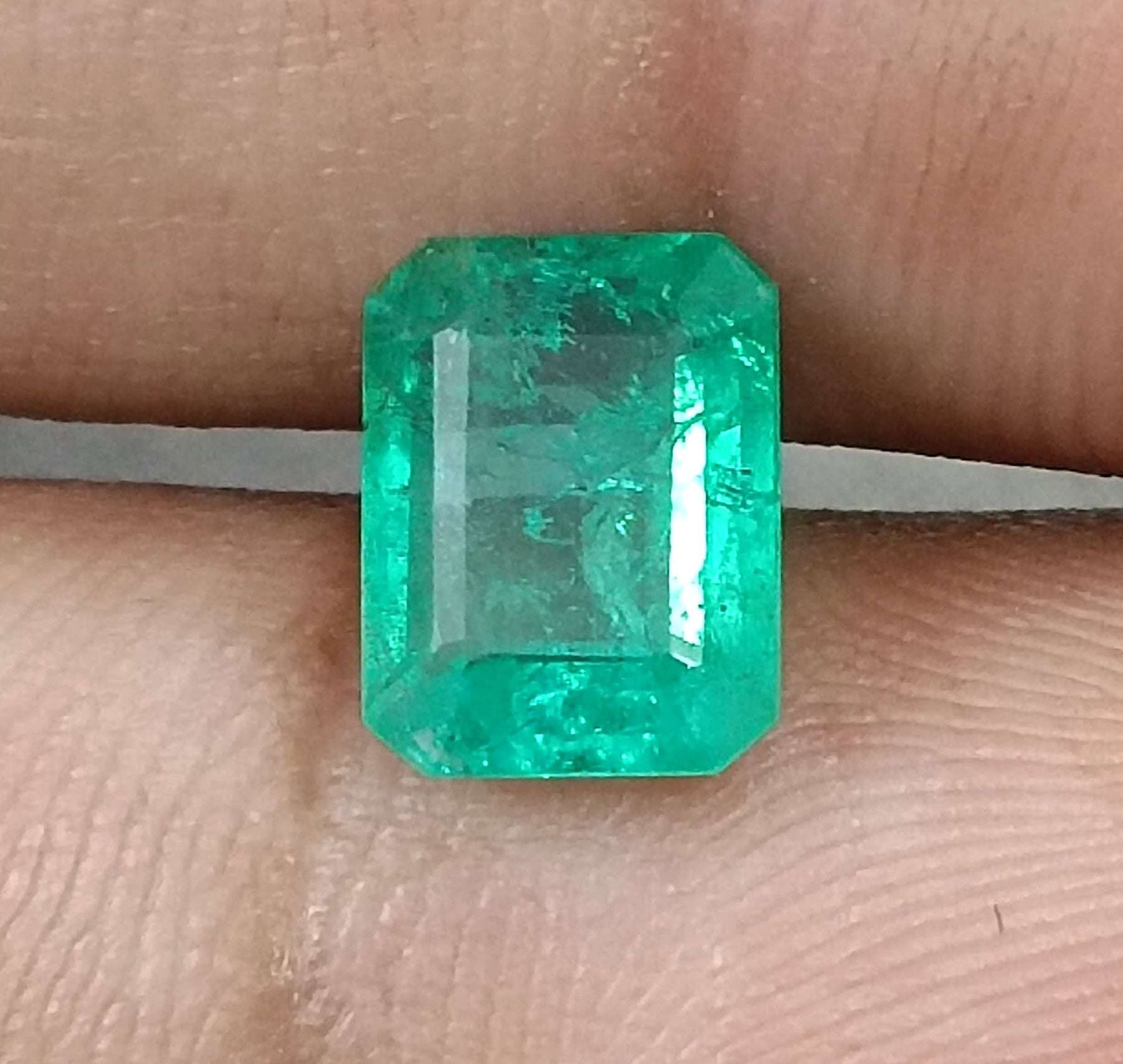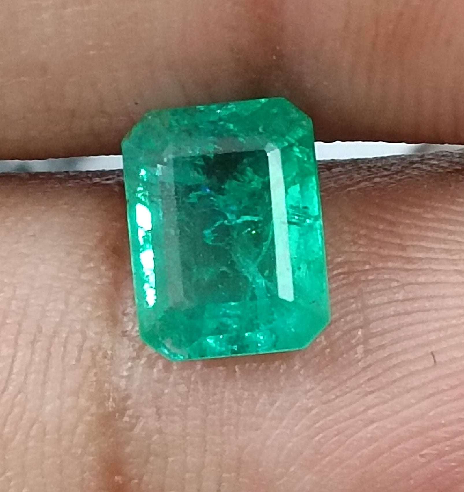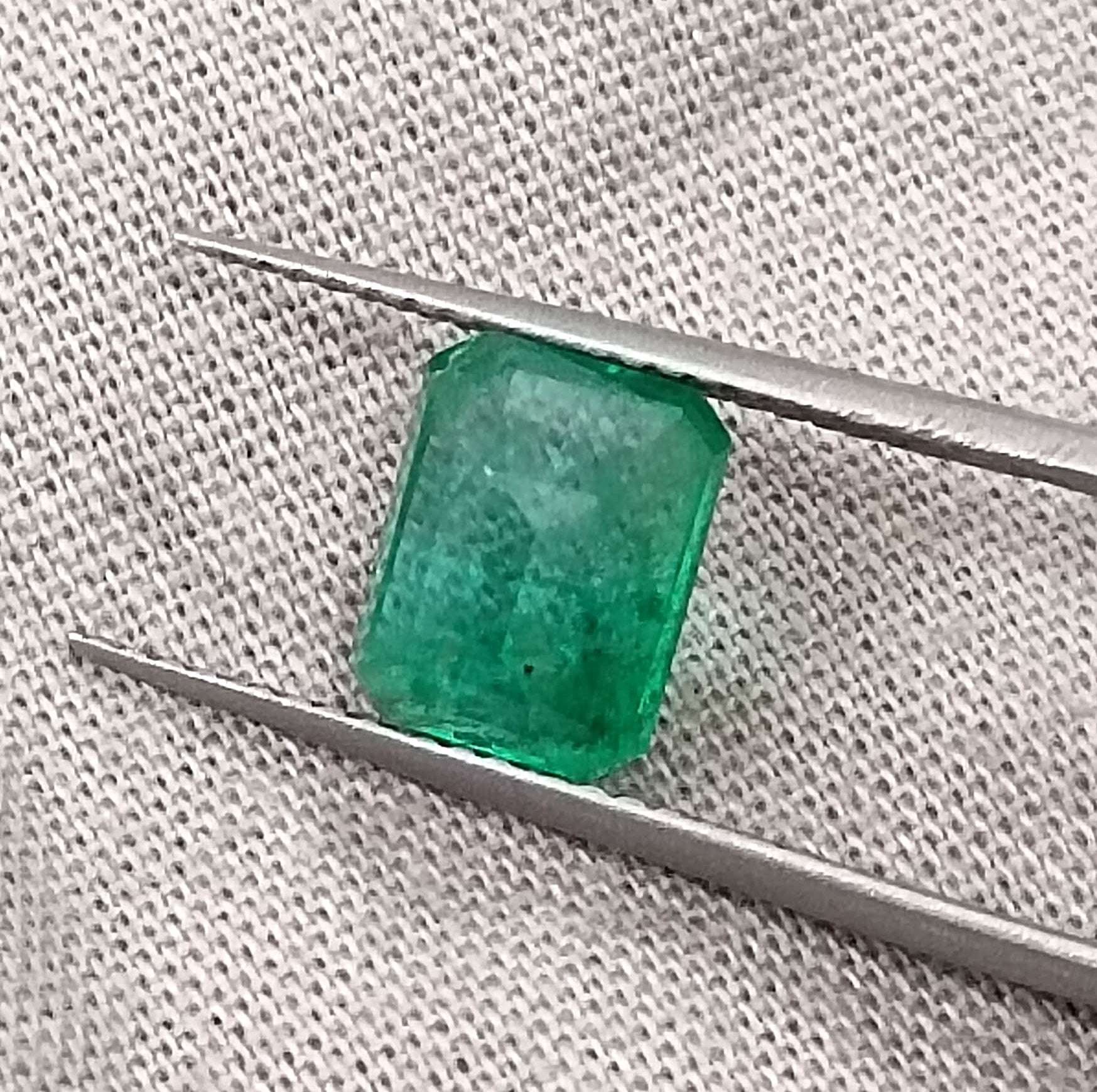 1.76 carats GSI certified medium light green Zambian emerald. Minor oiled loose gemstone. Color: Medium light green Cut -...