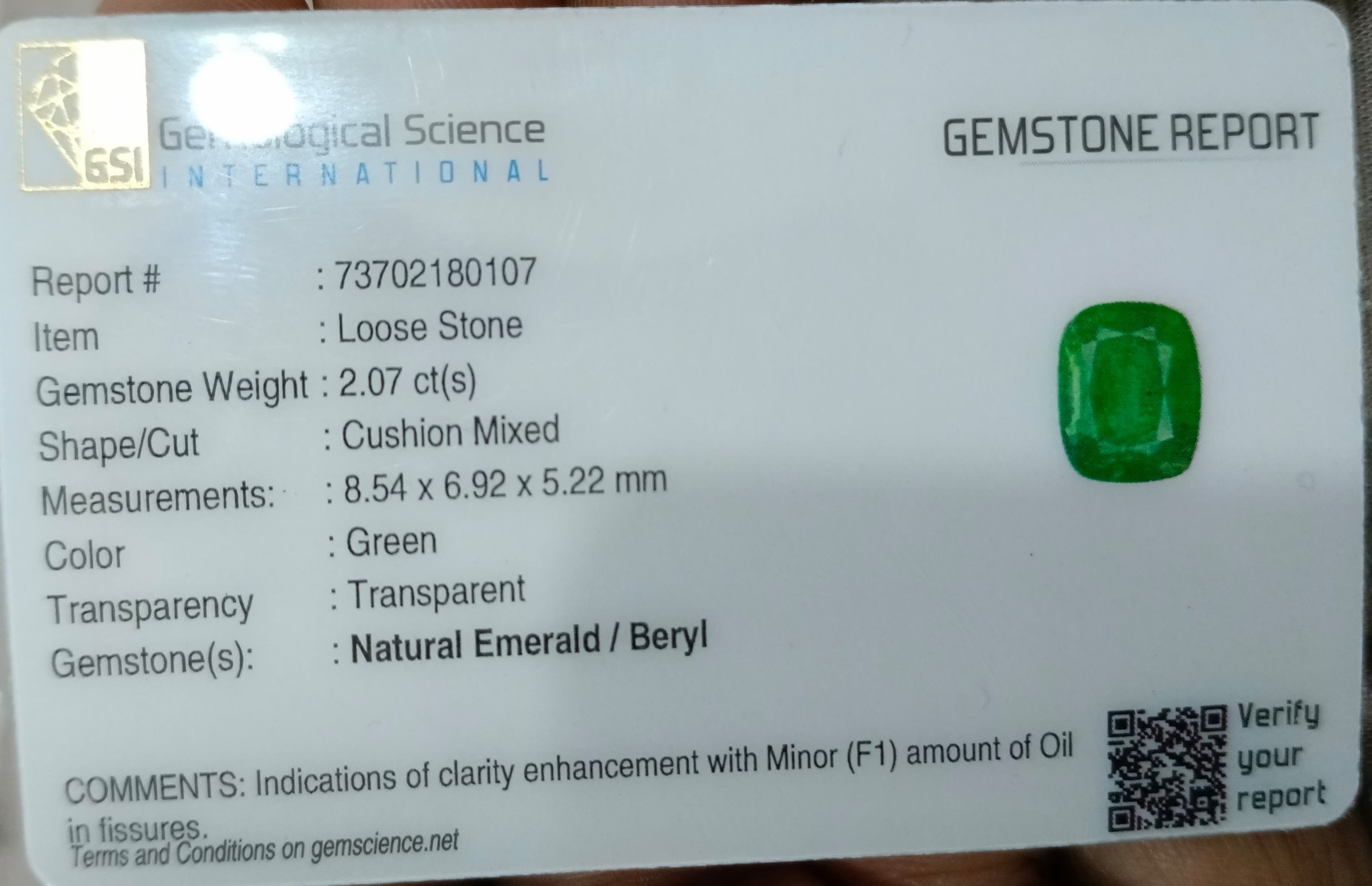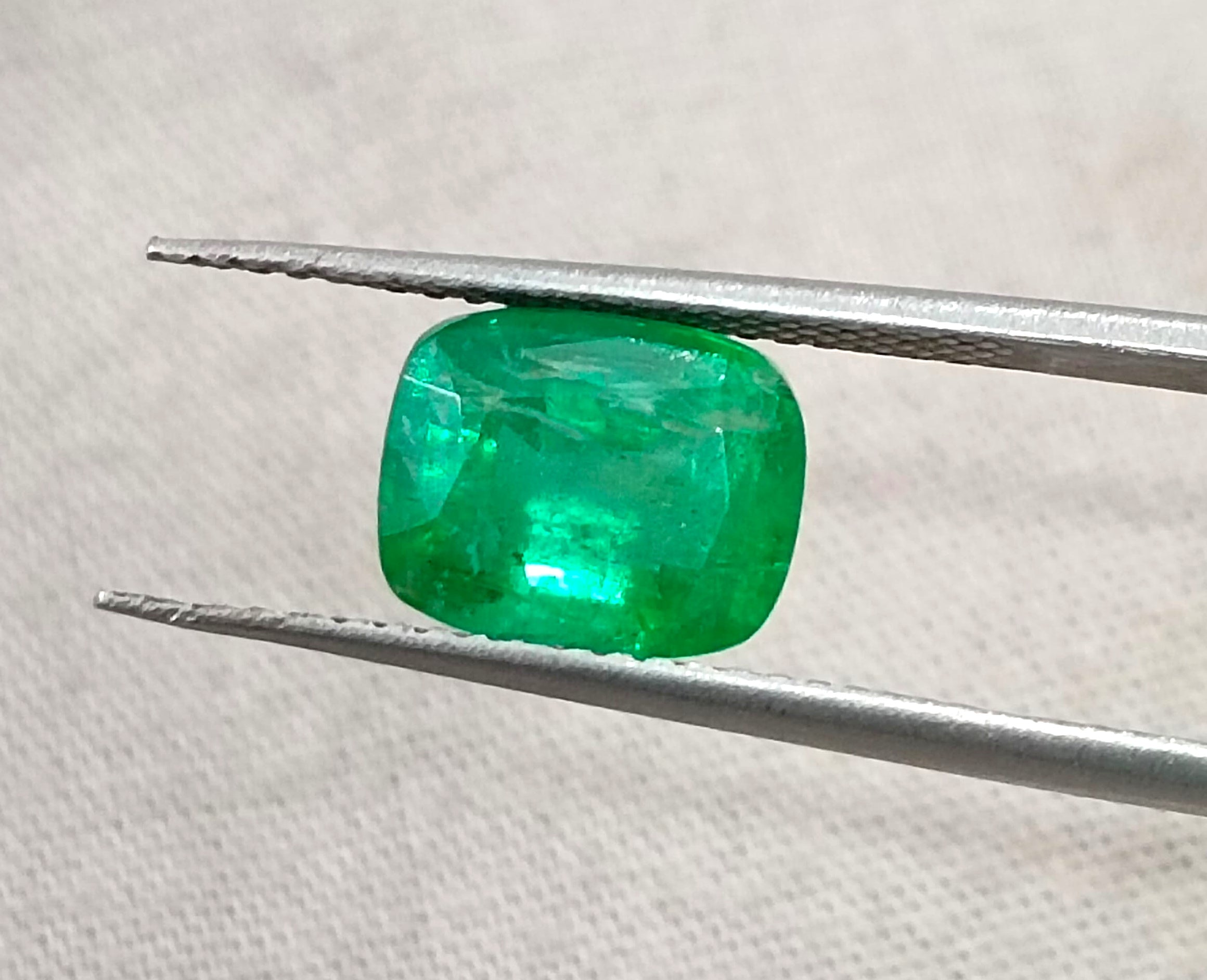 Panjshir Emerald 2.07ct Vivid Medium Deep Green Certified Natural Cushion Cut Loose Gemstone