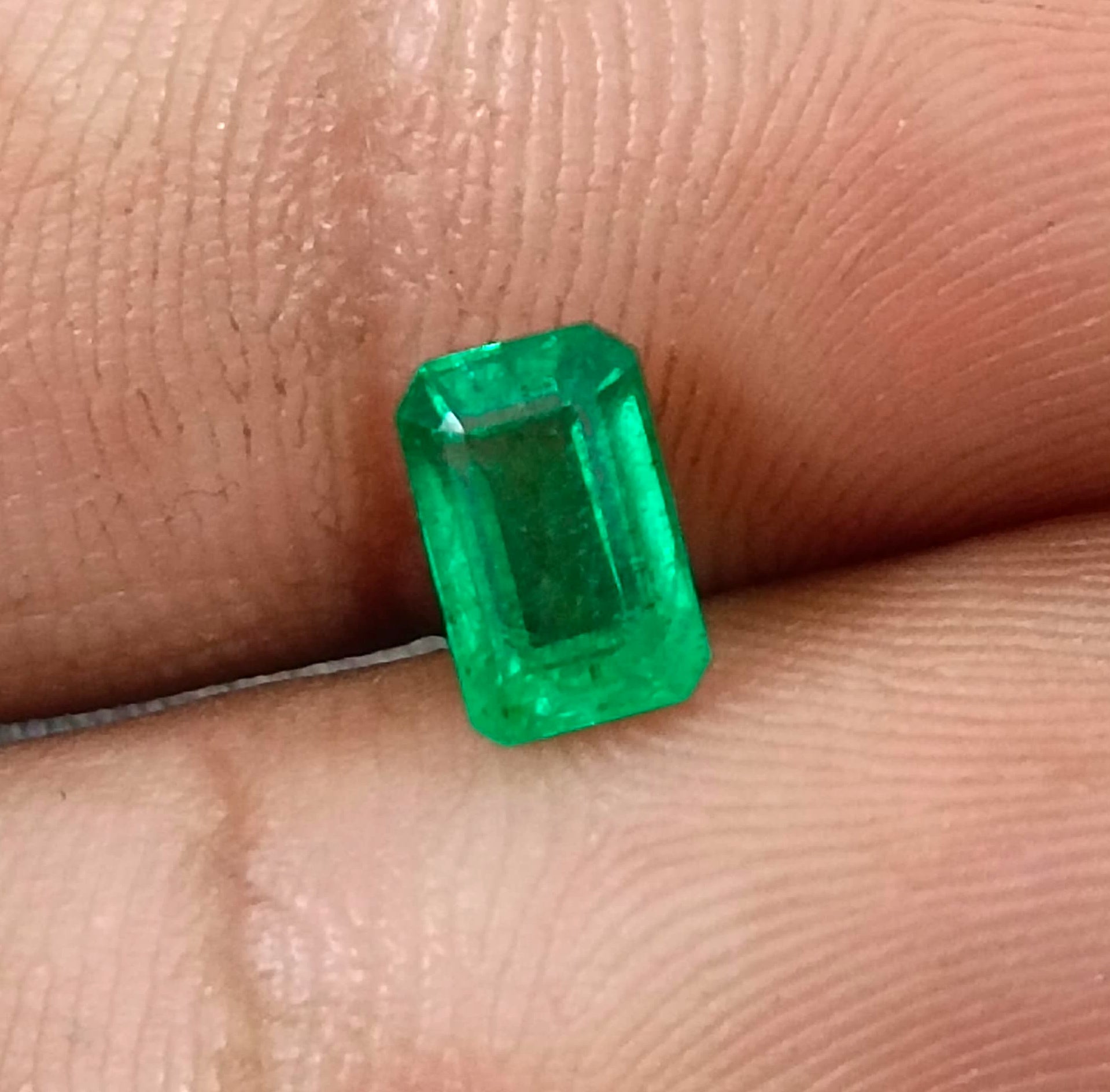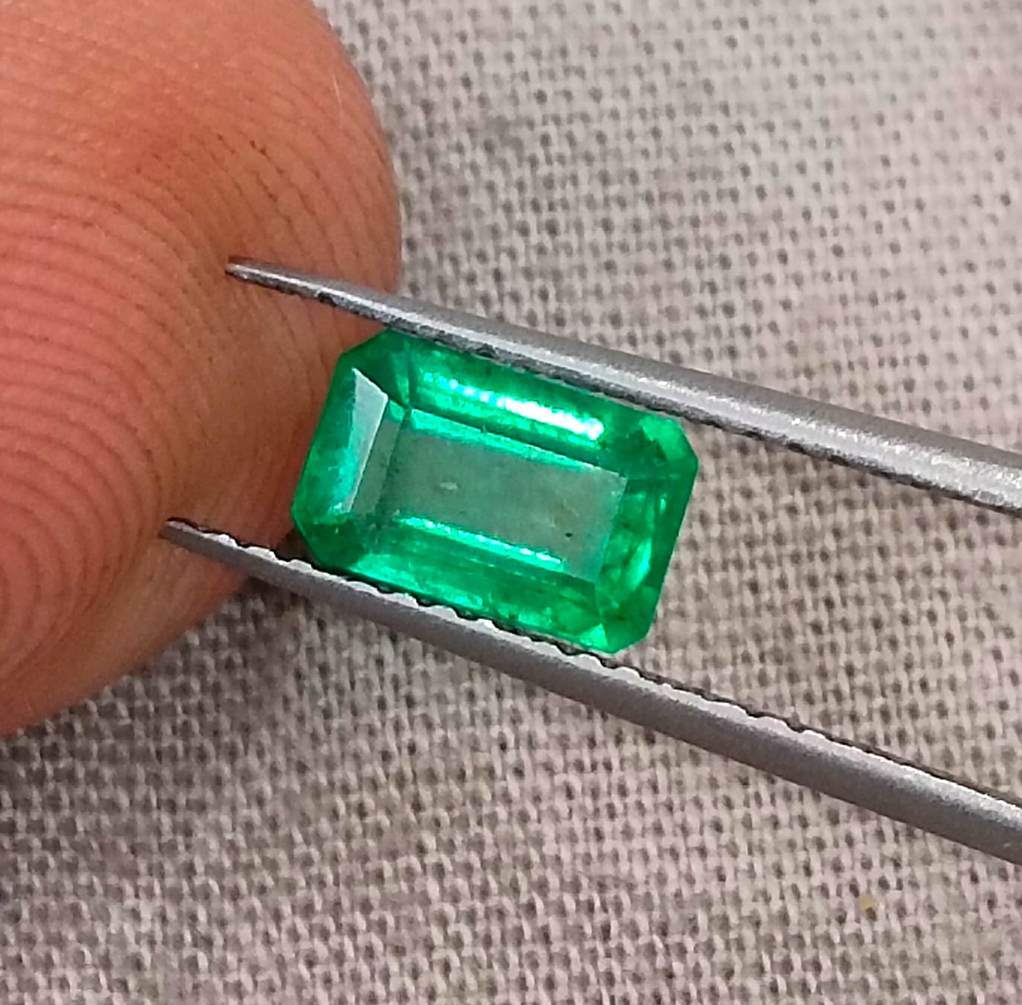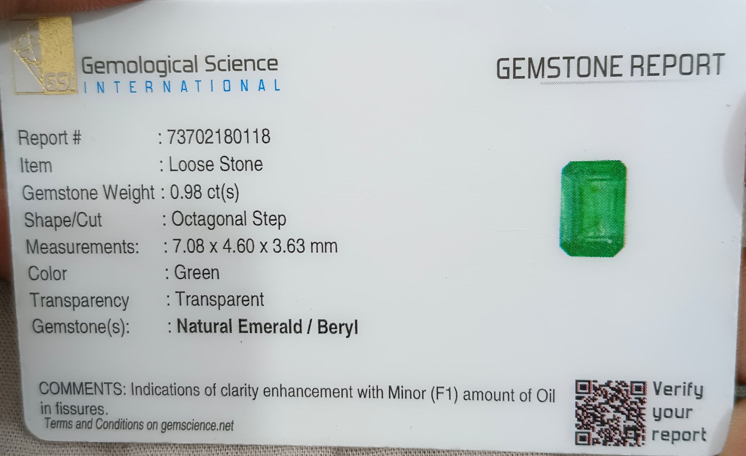 0.98 carats GSI certified vivid green Zambian emerald. Minor oiled loose gemstone. Color: Vivid green Cut - Emerald cut...