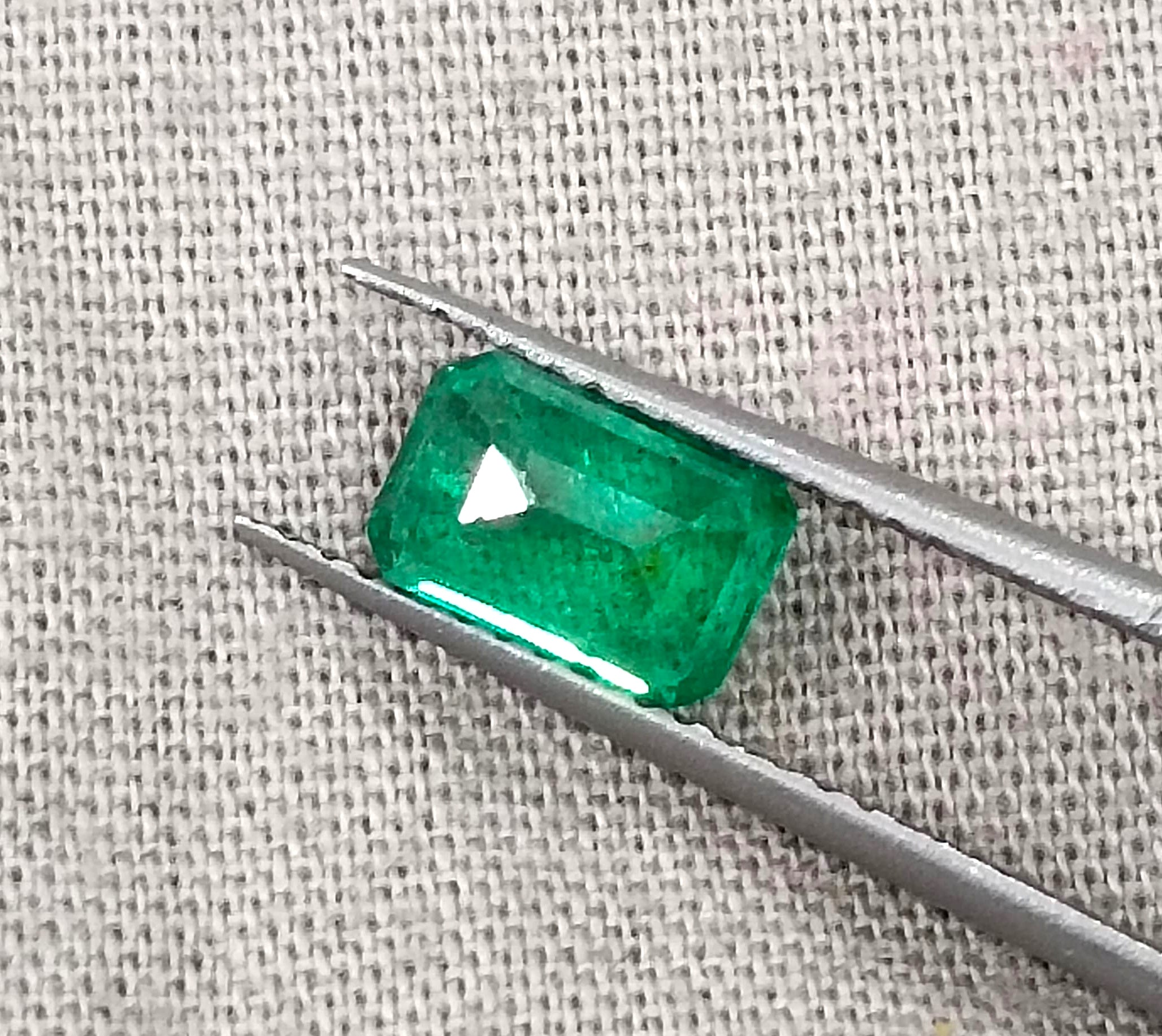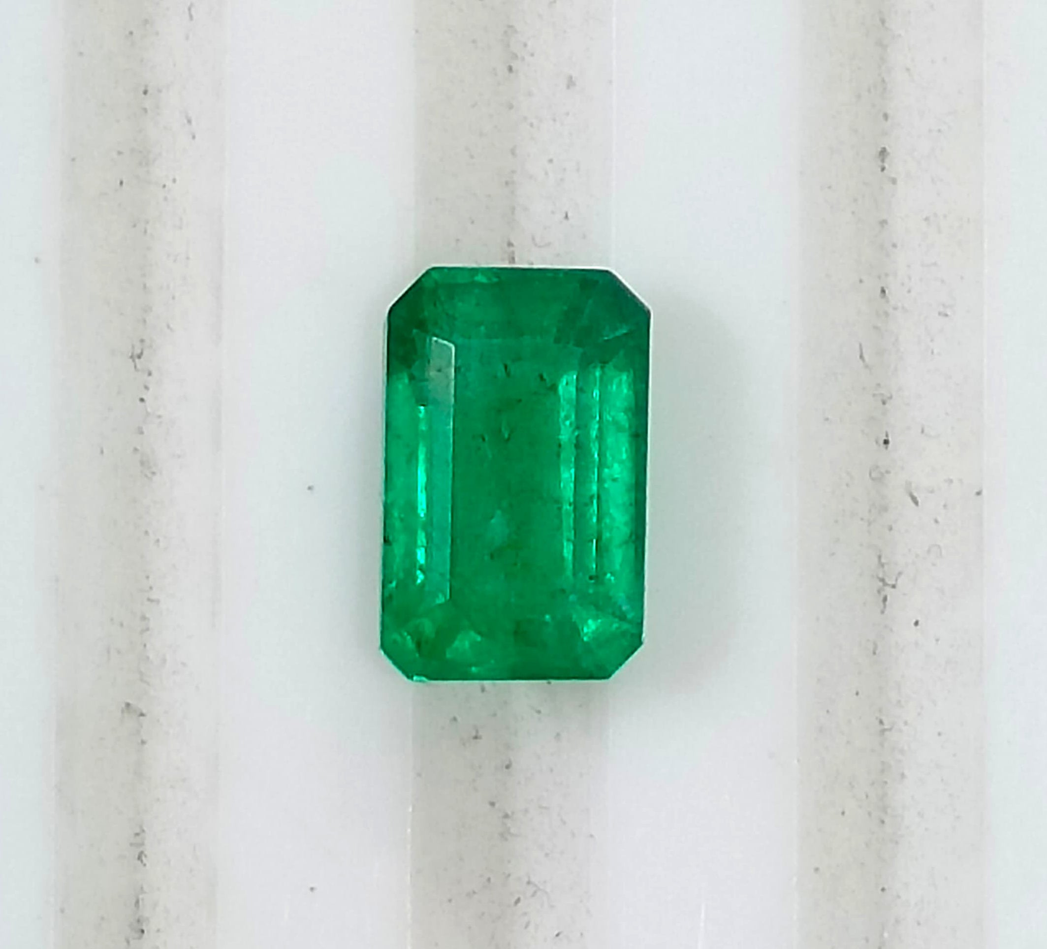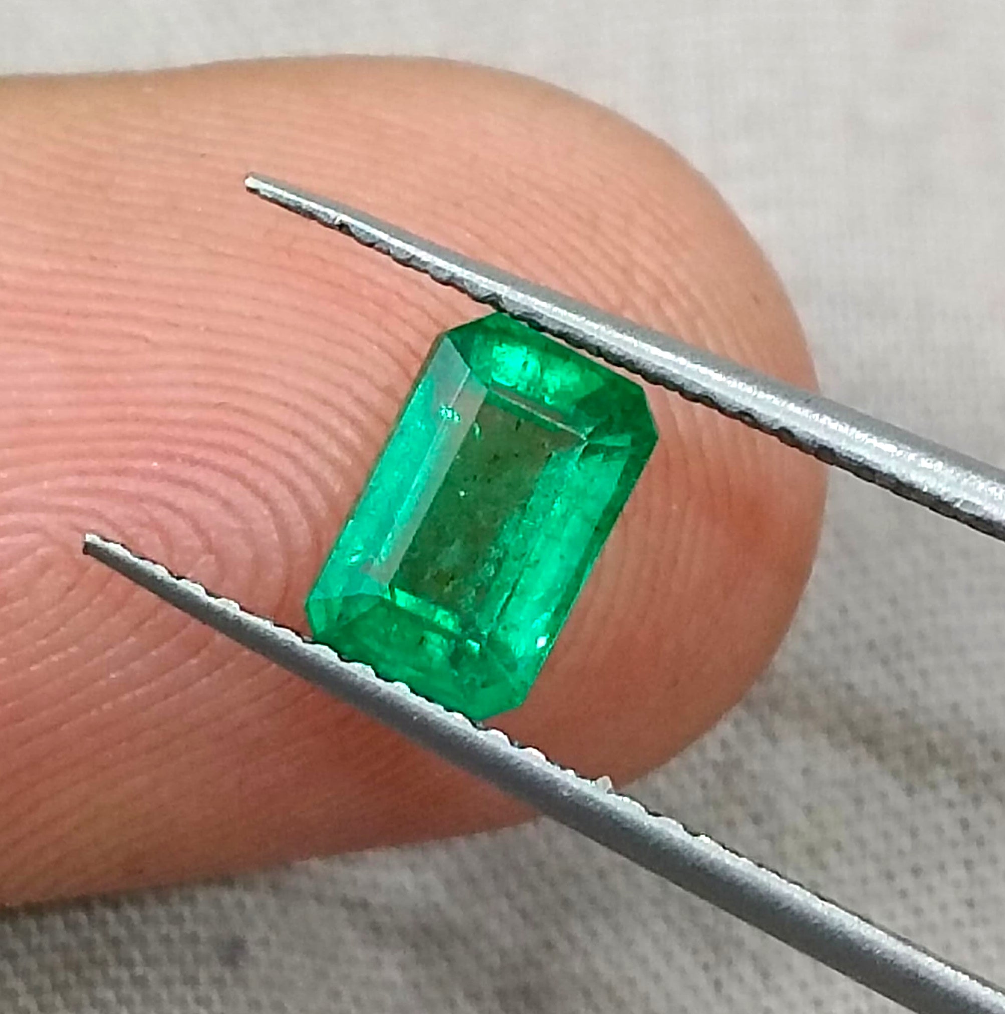 0.98 carats GSI certified vivid green Zambian emerald. Minor oiled loose gemstone. Color: Vivid green Cut - Emerald cut...