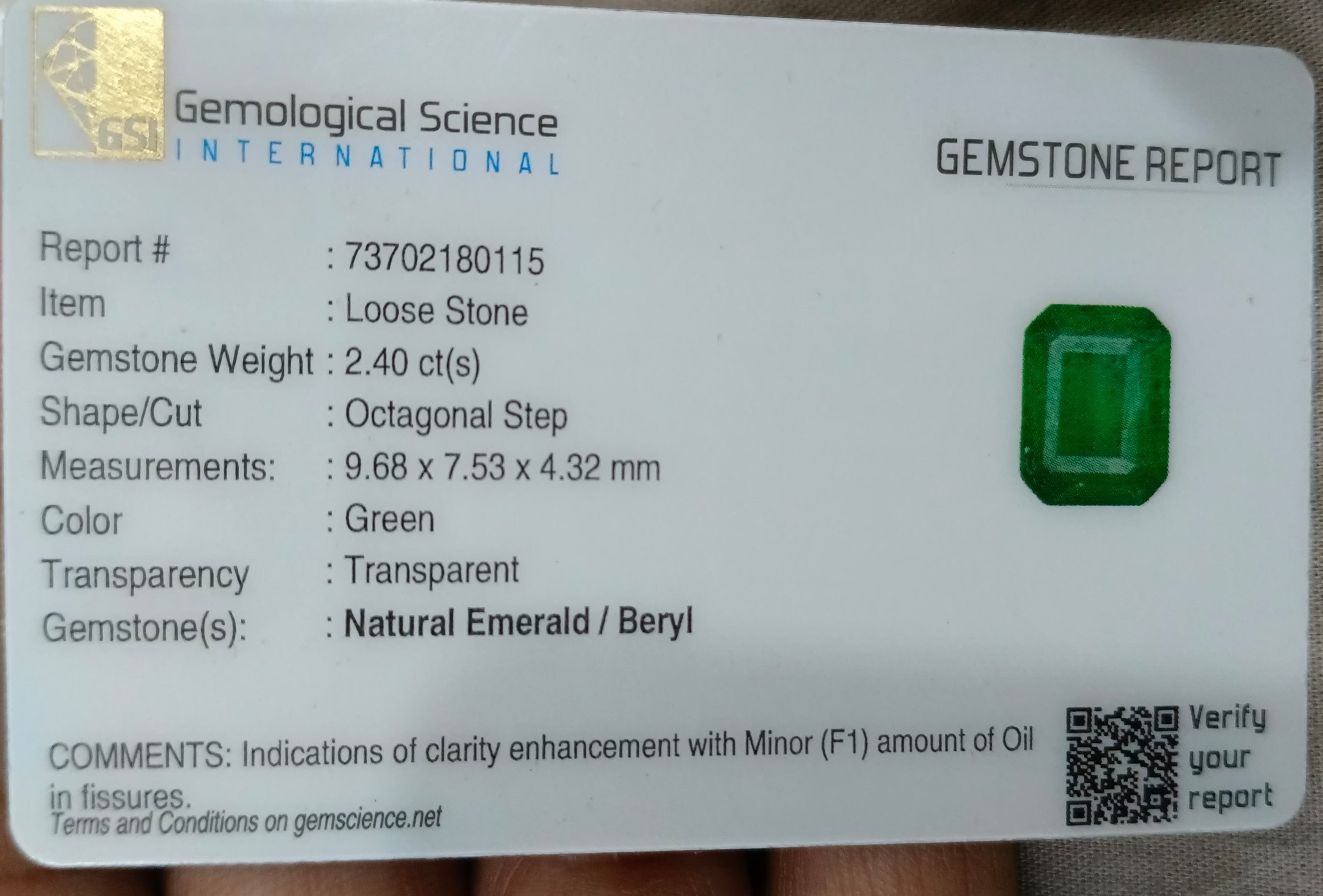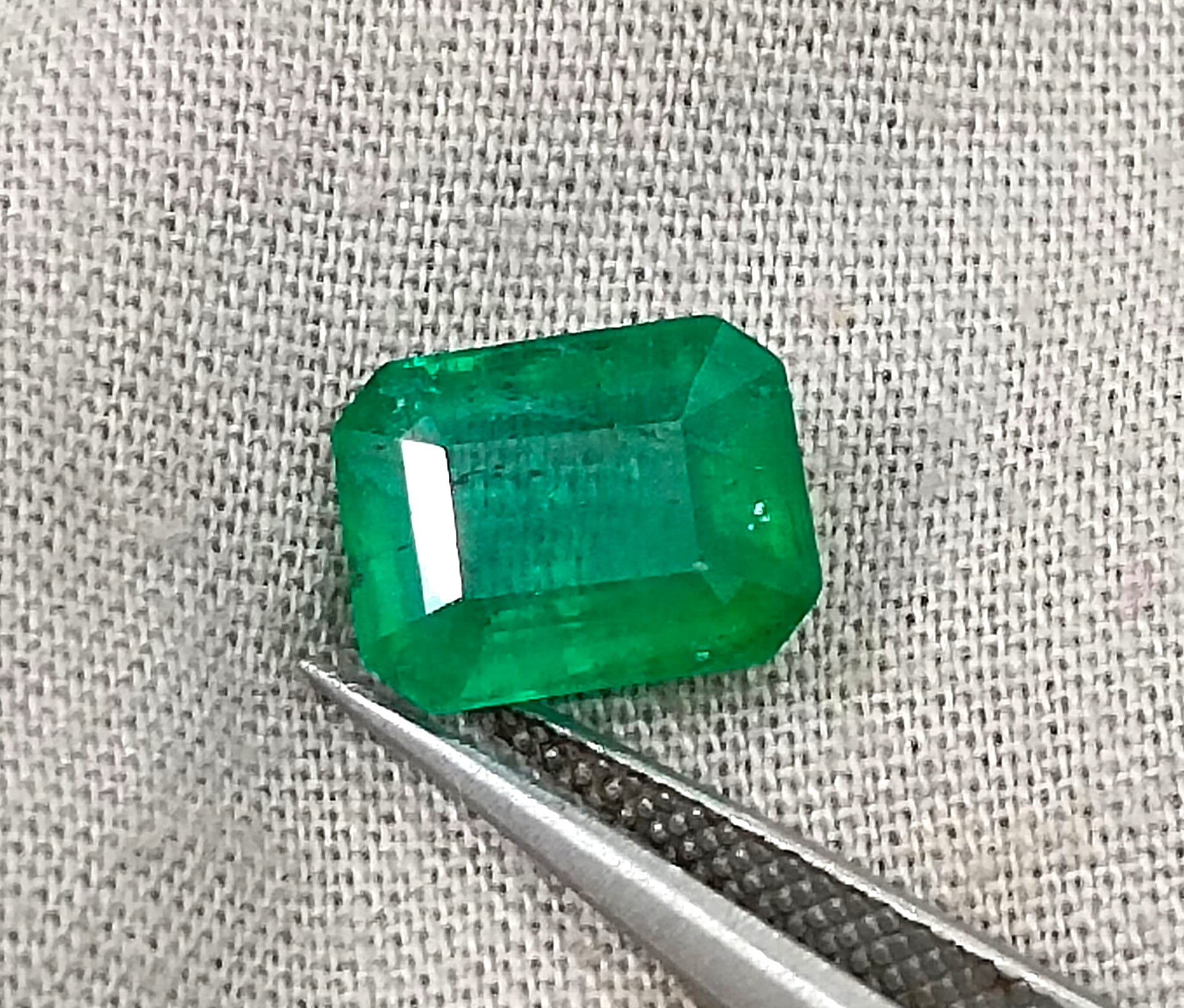 2.40 carats GSI certified alpine green Zambian emerald. Color: Alpine green, perfect color saturation Cut - Emerald cut Lustre...