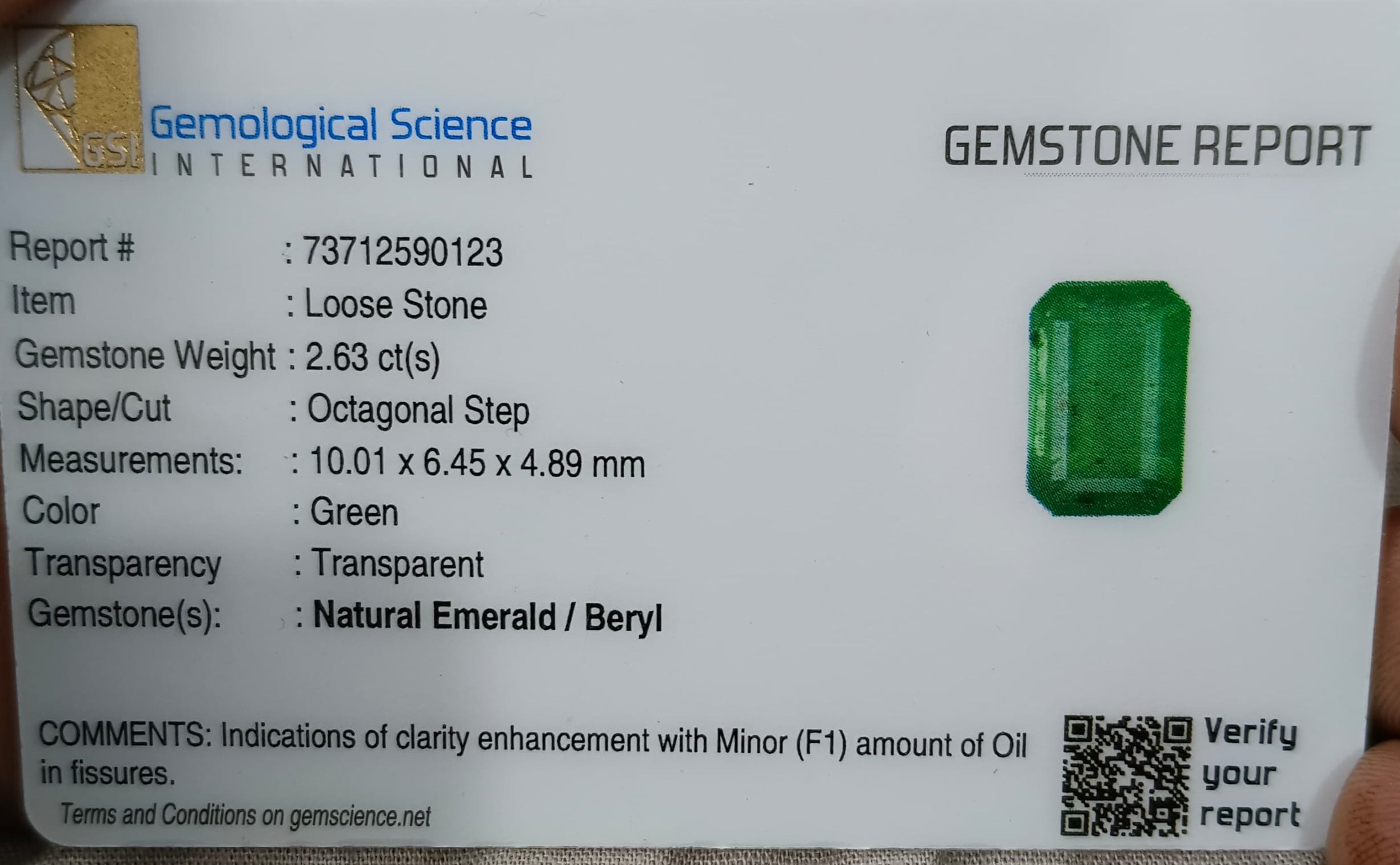 2.63 carats GSI certified neon green Zambian emerald. We ship duty free to USA via USPS. Color: Medium Neon green...