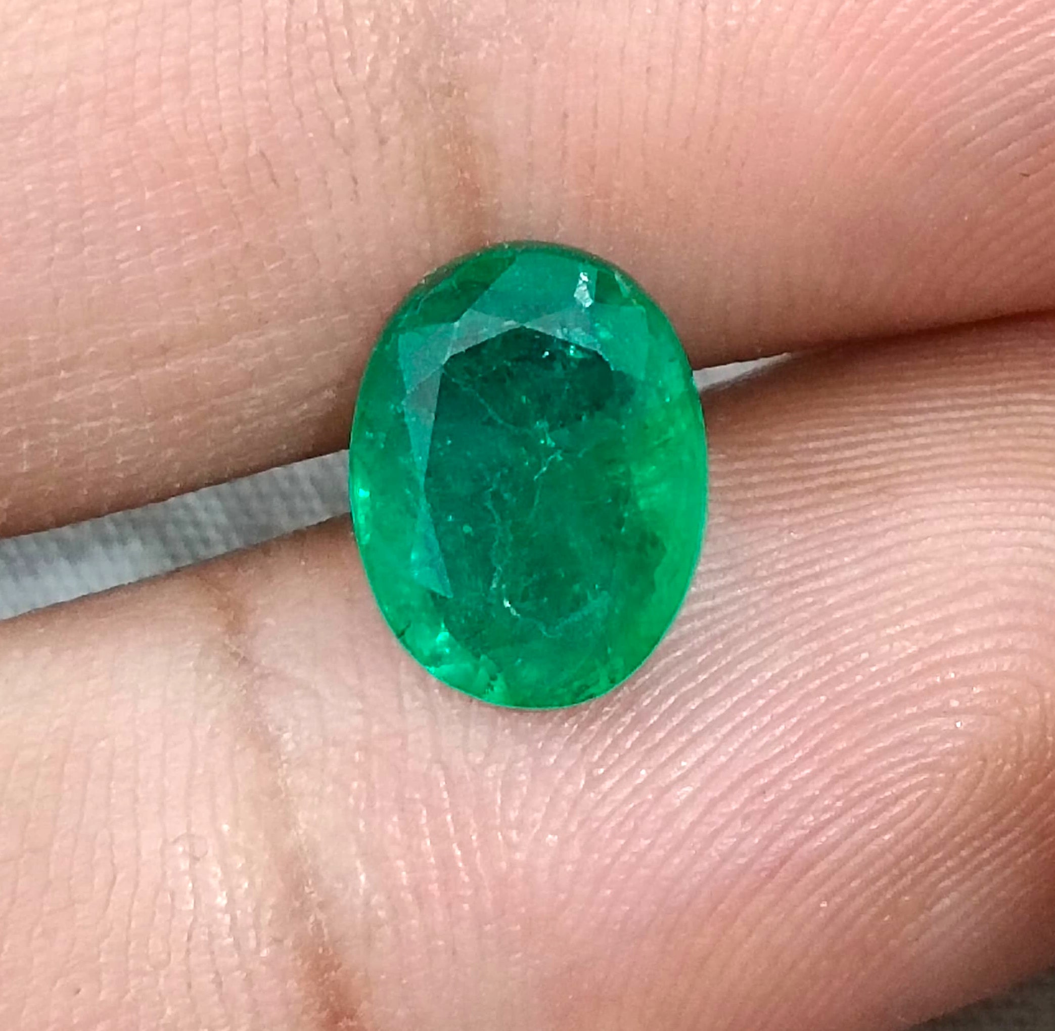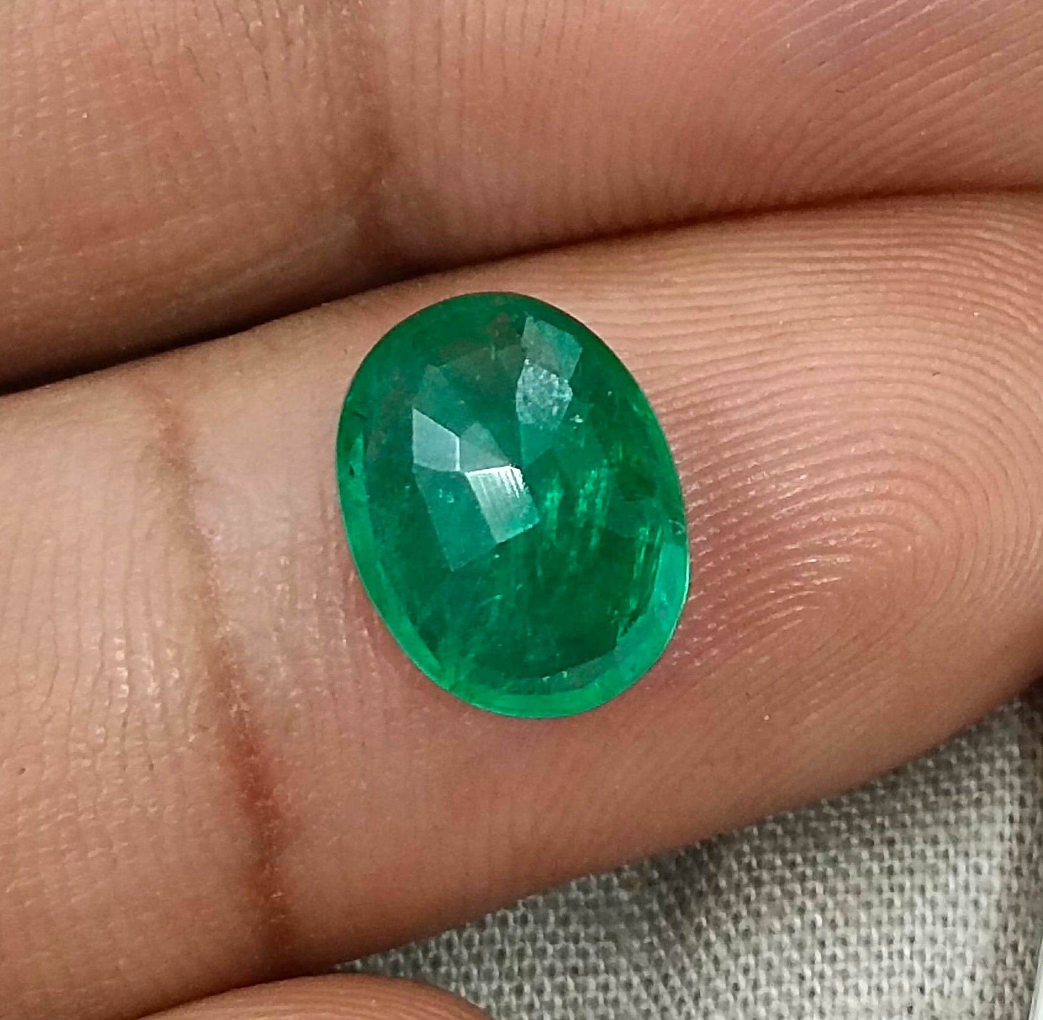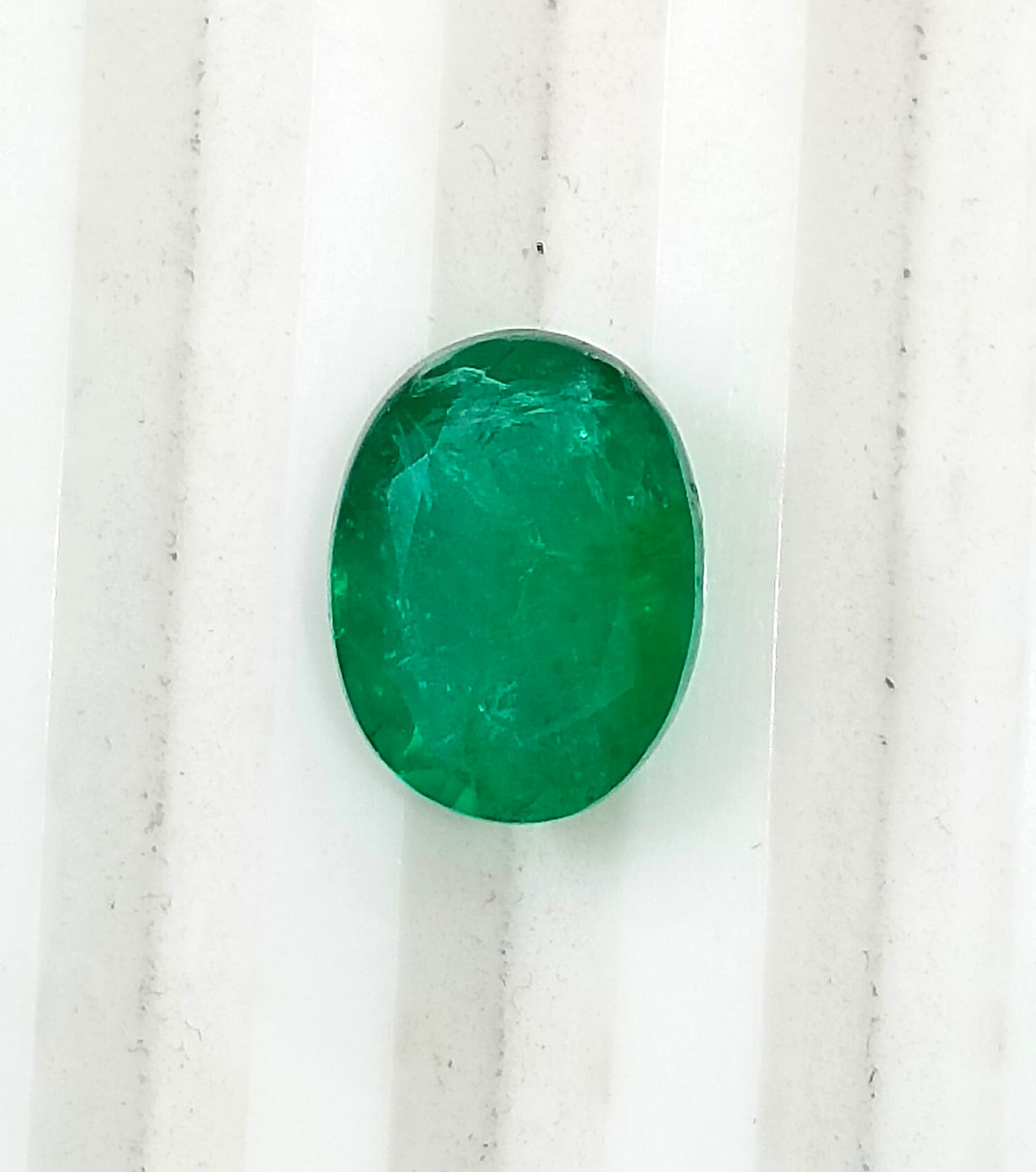 3.05 carats GSI certified medium deep green Zambian emerald. Color: Medium deep green, proper color saturation. Cut - Oval...
