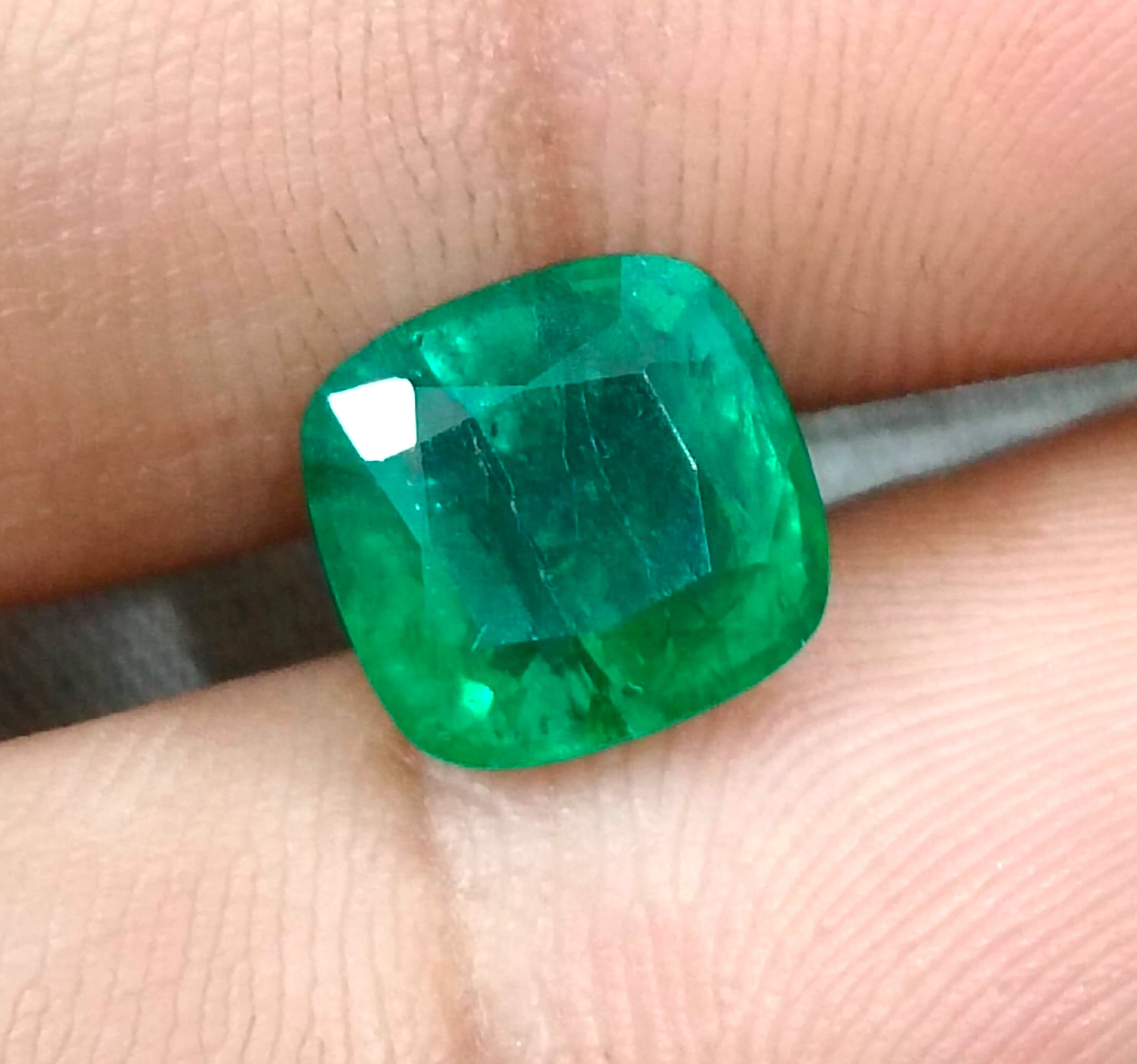 Zambian Emerald 3.46ct Vivid Green Certified Natural Cushion Cut Gemstone